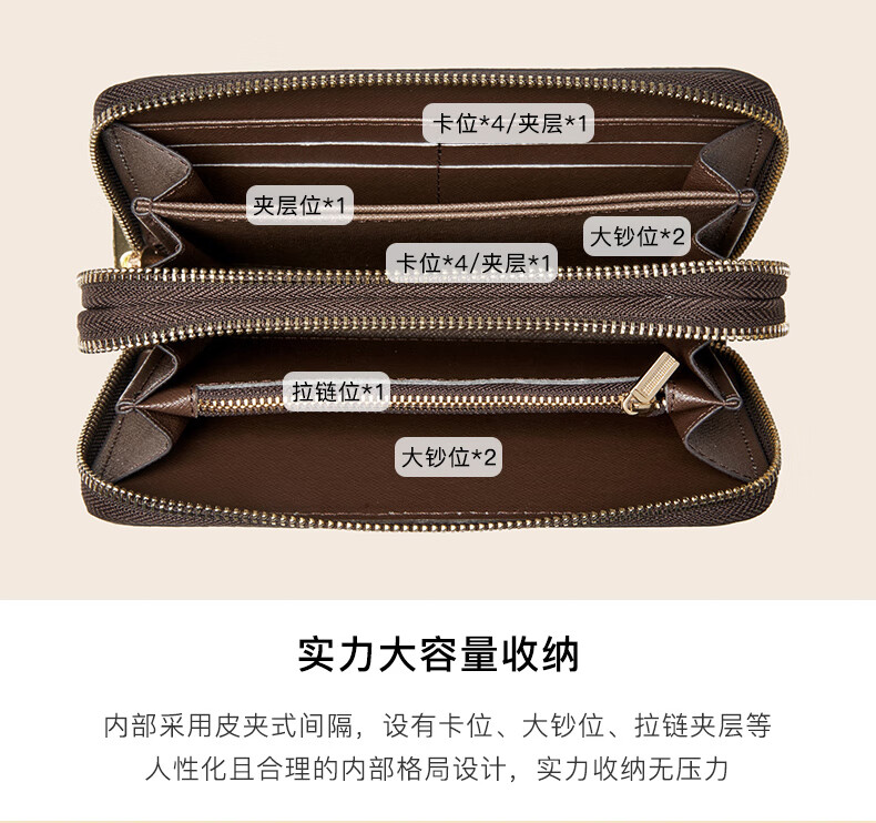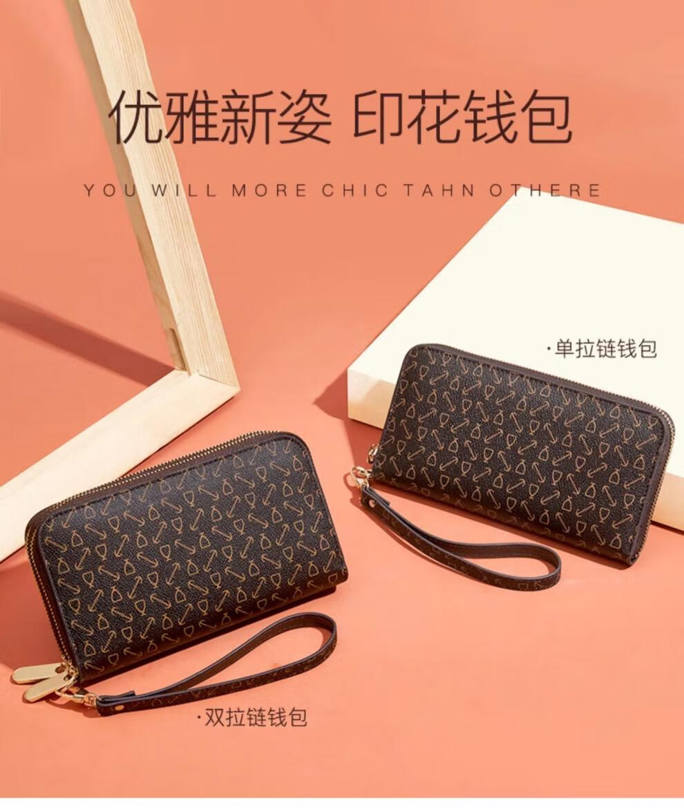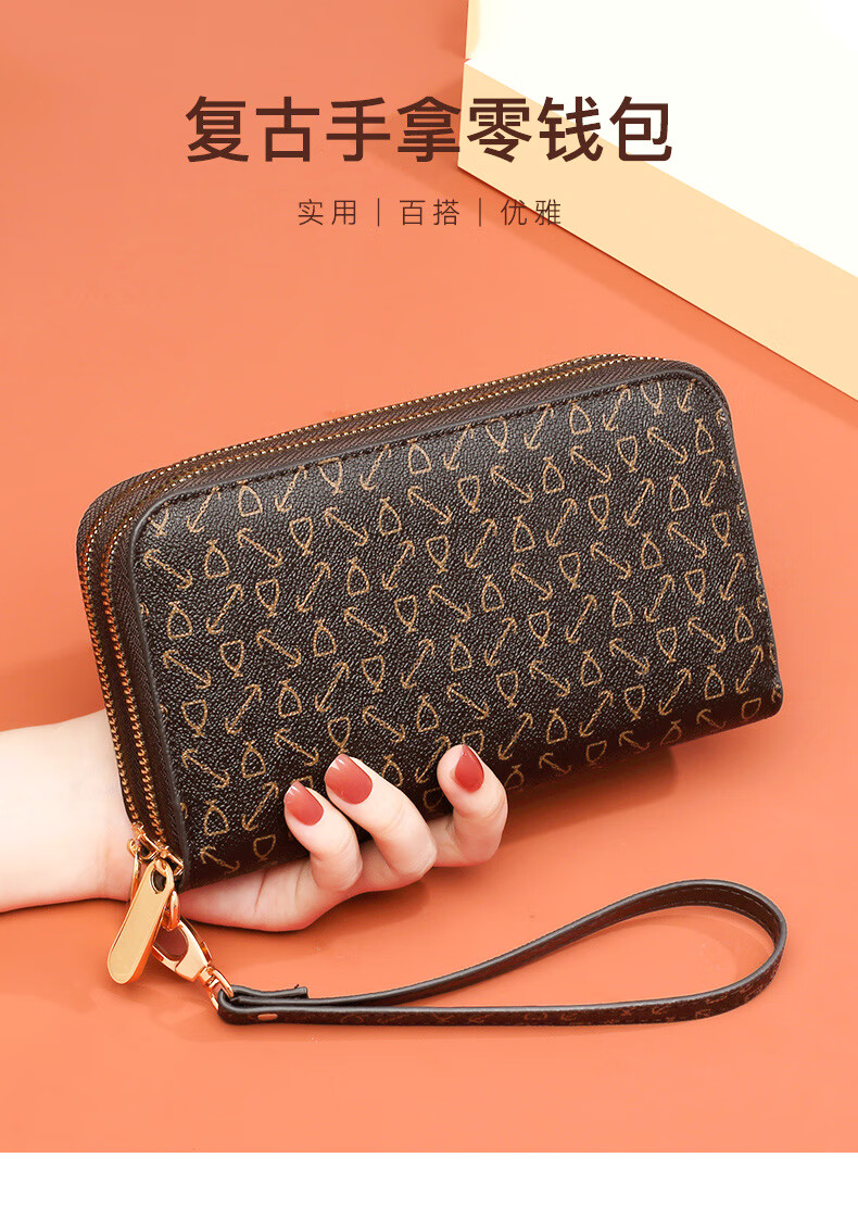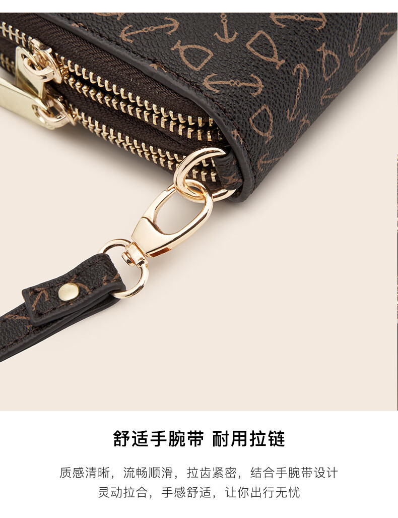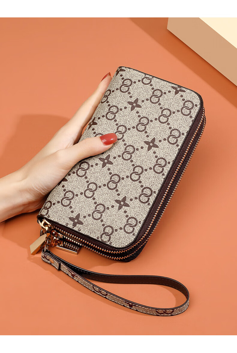 Kangaroo (KANGAROO) Wallet Women's Long Clutch Women's Mobile Phone Bag 2025 New Large Capacity Fashion Wallet Wallet Arrow Pattern Brown-Single Zipper