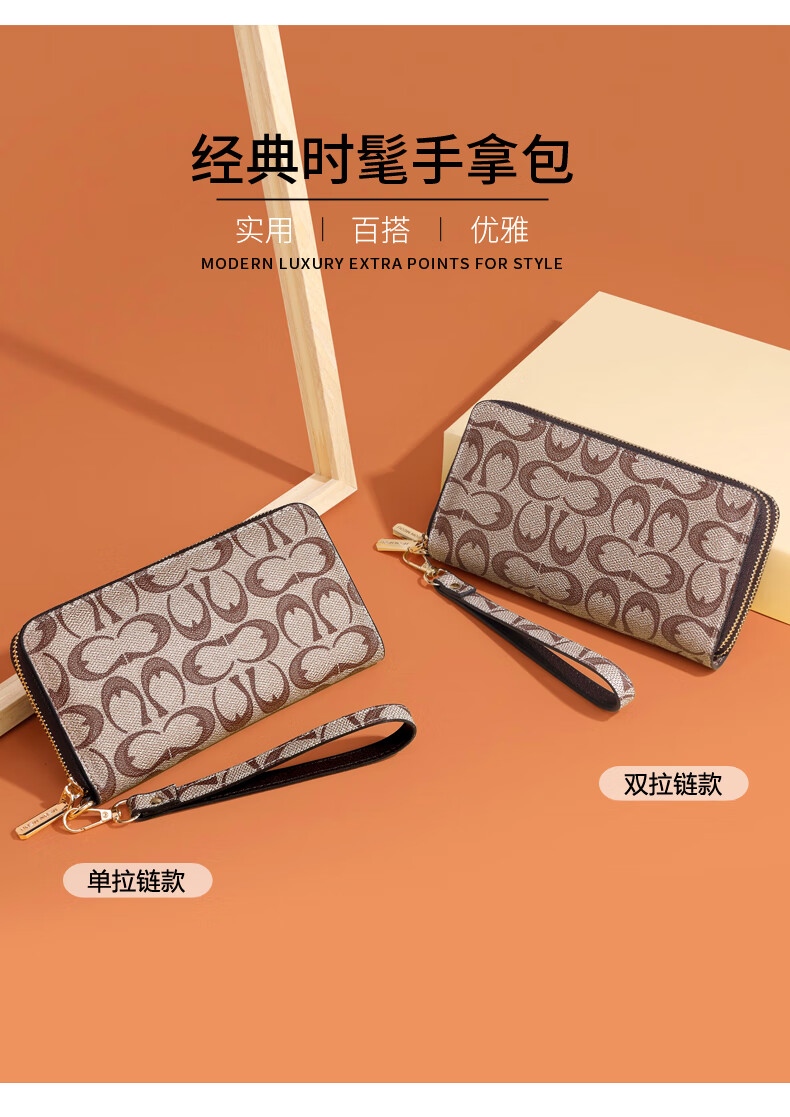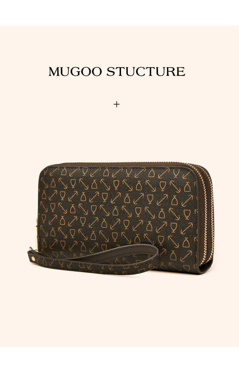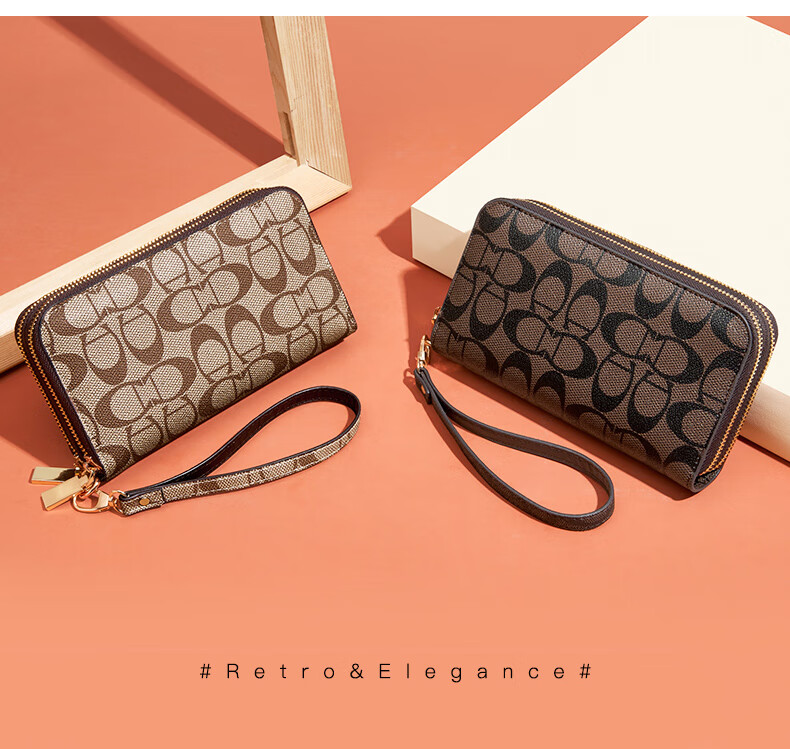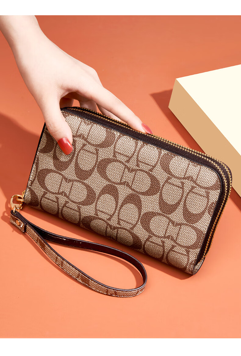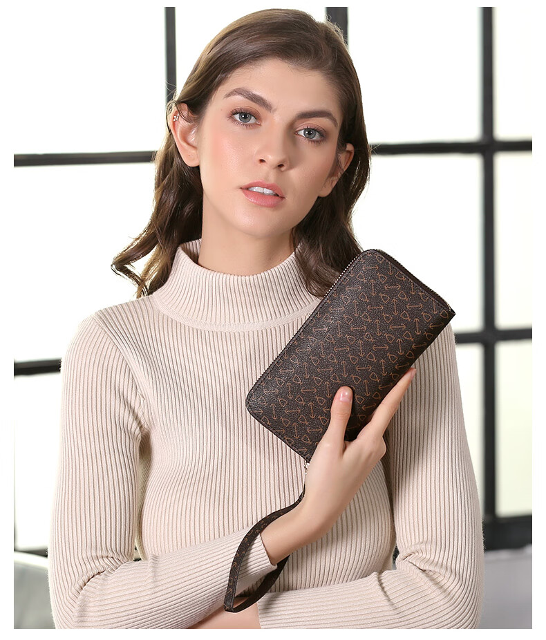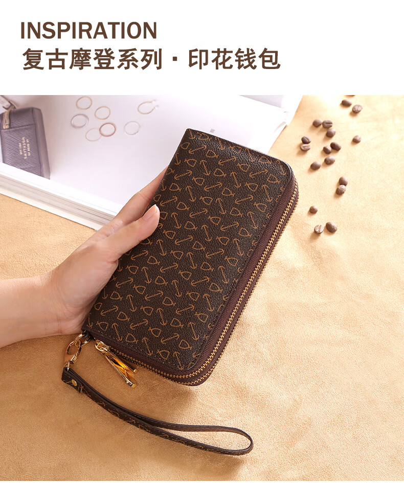 Kangaroo (KANGAROO) Wallet Women's Long Clutch Women's Mobile Phone Bag 2025 New Large Capacity Fashion Wallet Wallet Arrow Pattern Brown-Single Zipper
