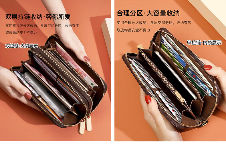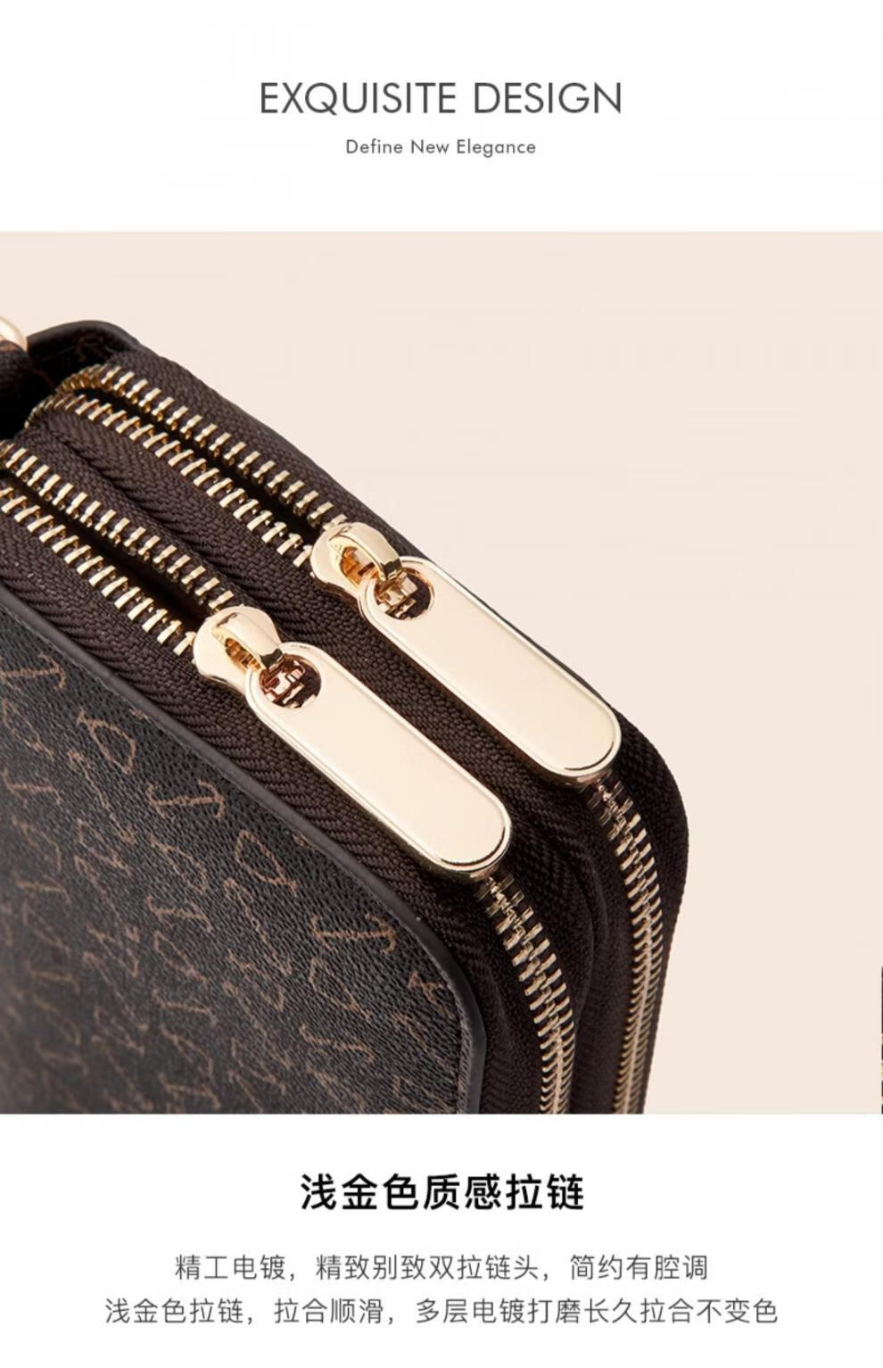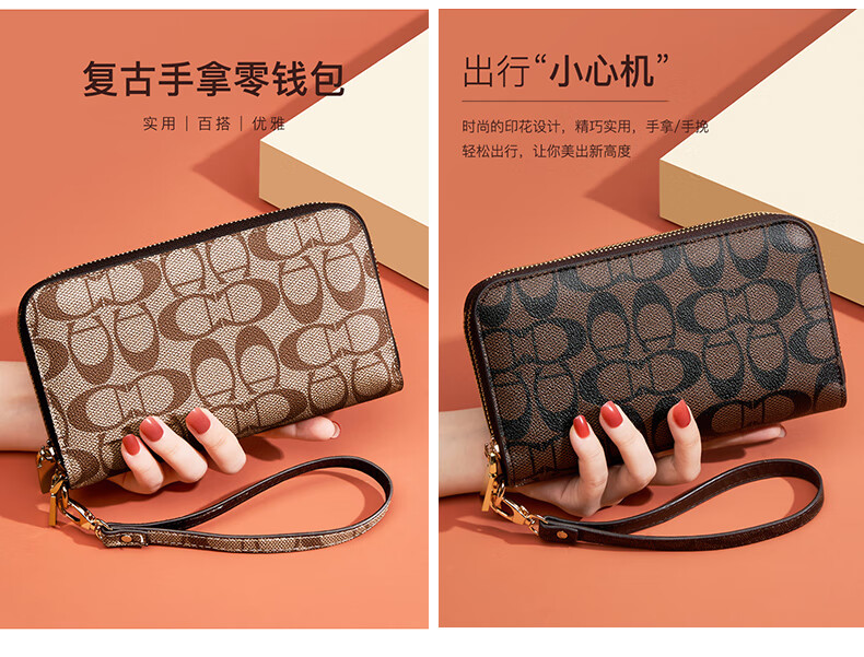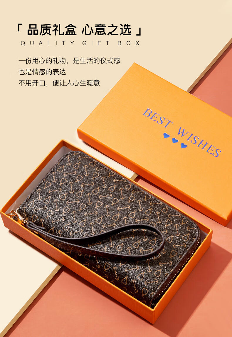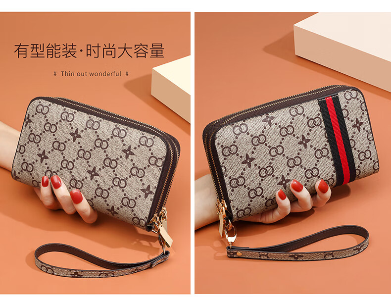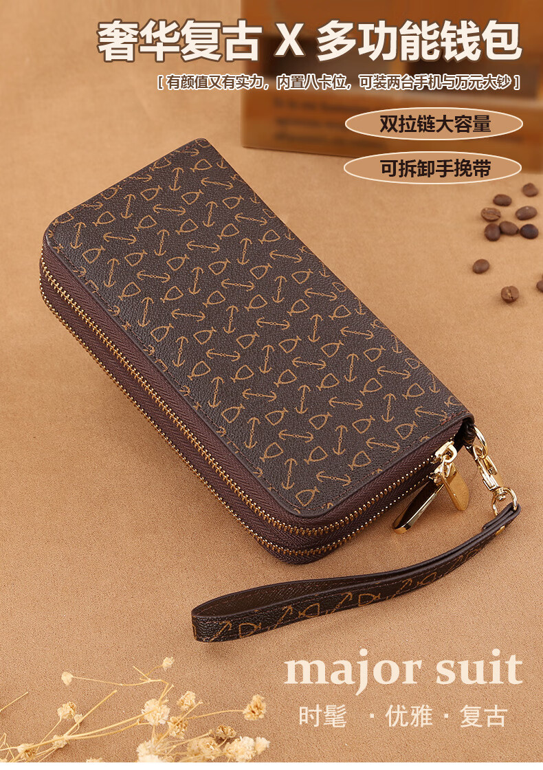 Kangaroo (KANGAROO) Wallet Women's Long Clutch Women's Mobile Phone Bag 2025 New Large Capacity Fashion Wallet Wallet Arrow Pattern Brown-Single Zipper