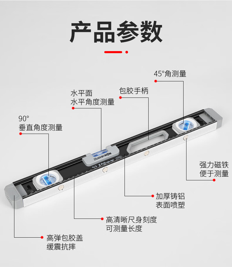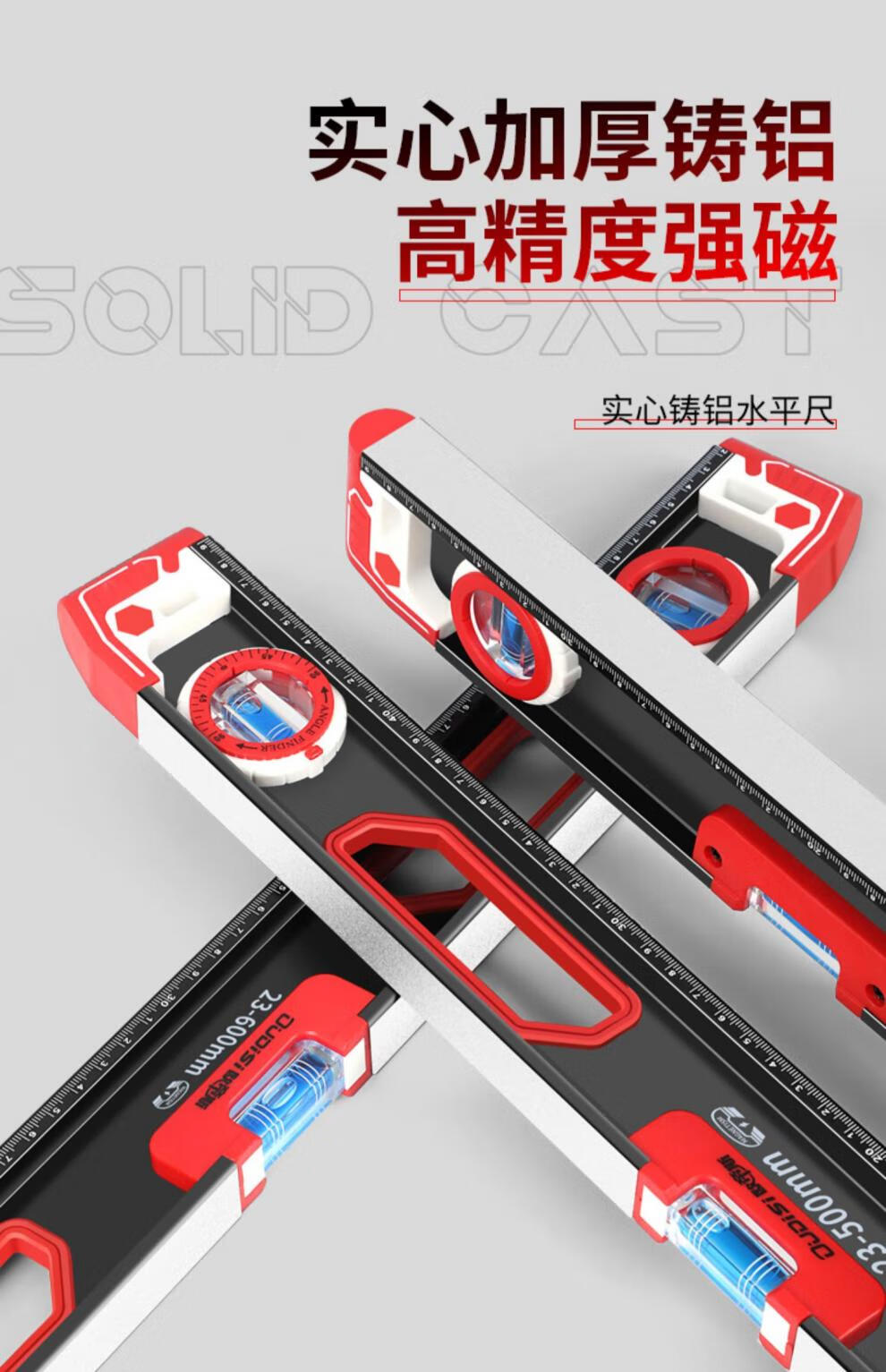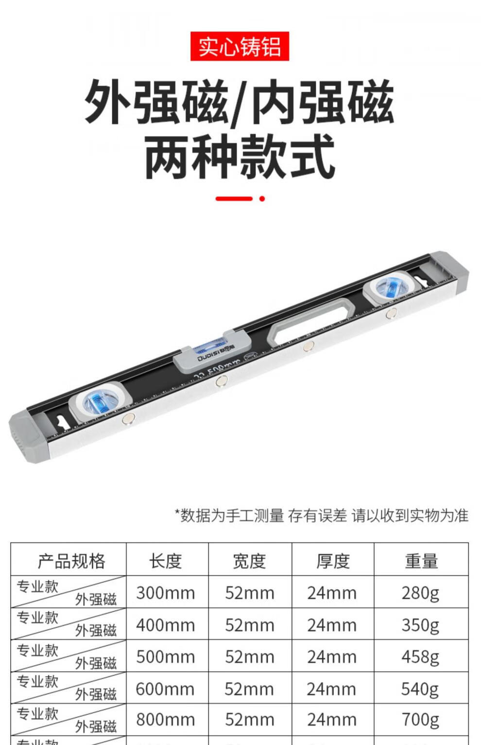 Otis level high-precision solid cast aluminum heavy-duty aluminum alloy fan small precision level level German anti-fall with strong magnet industrial grade solid cast aluminum level 800mm