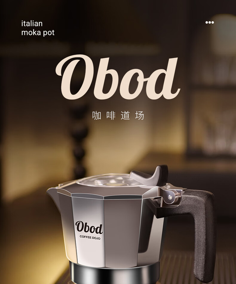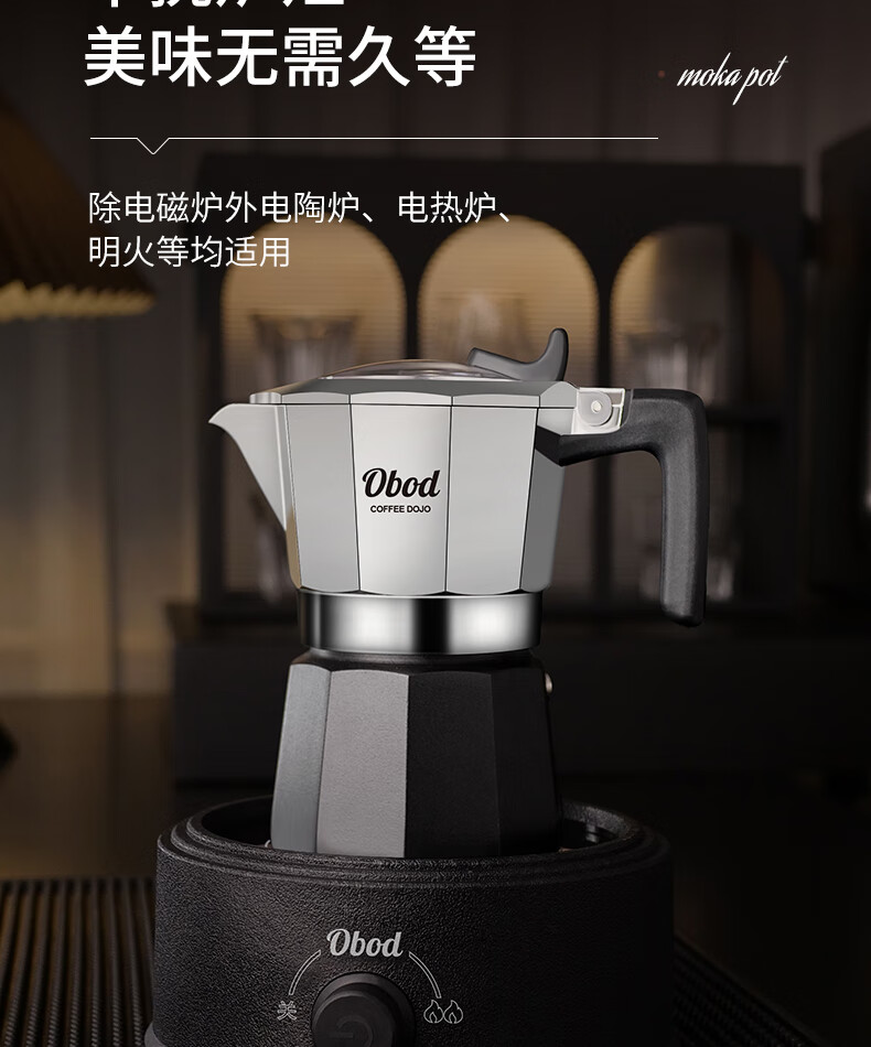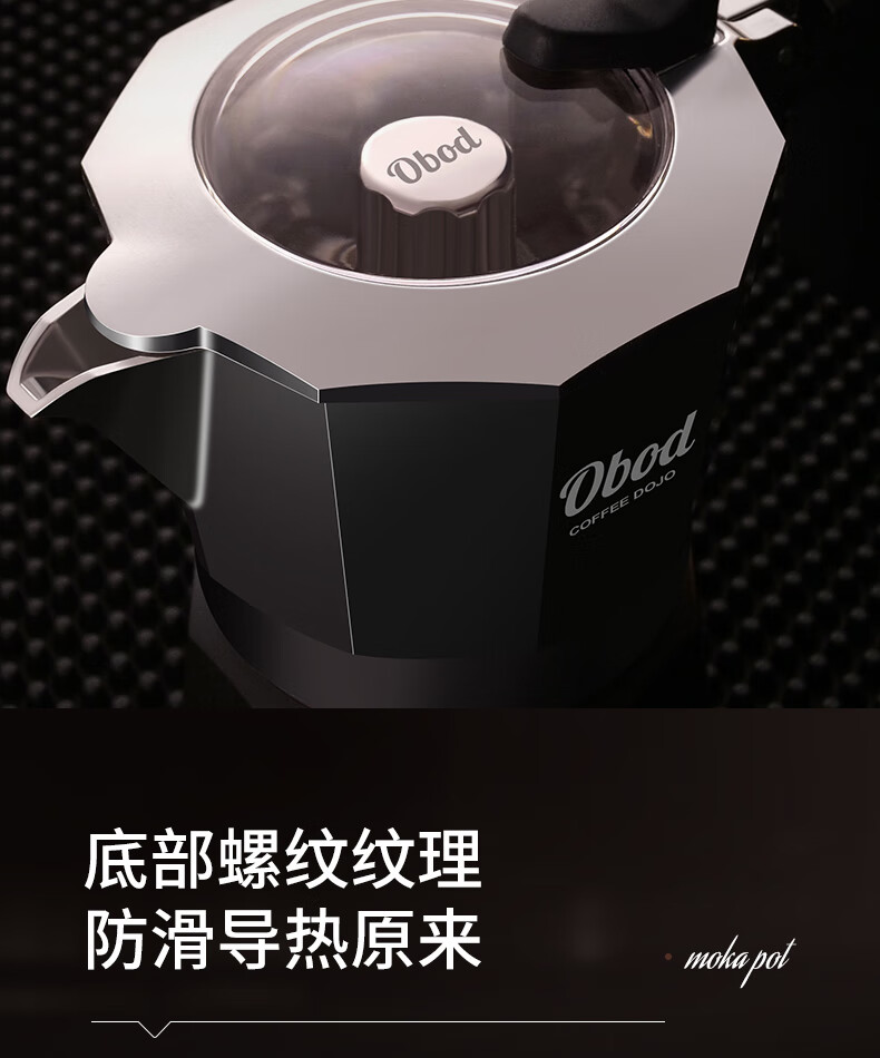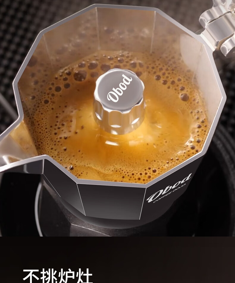 Obod fourth generation supercharged double valve Moka pot home coffee machine coffee pot set espresso extraction pot fourth generation double valve Black Knight