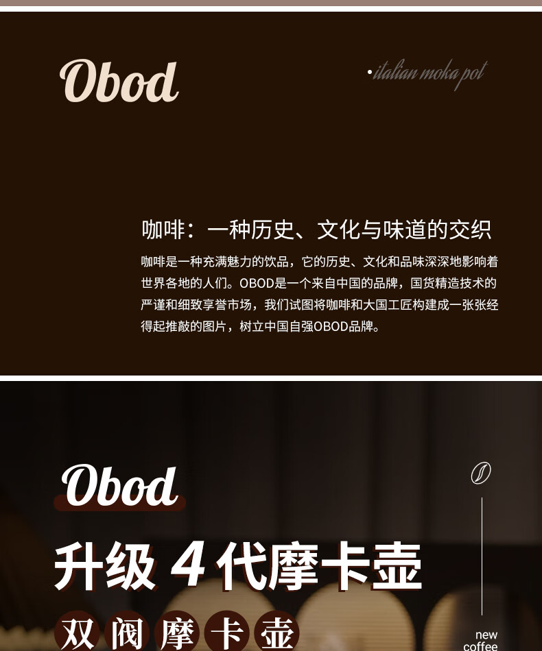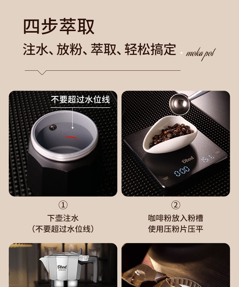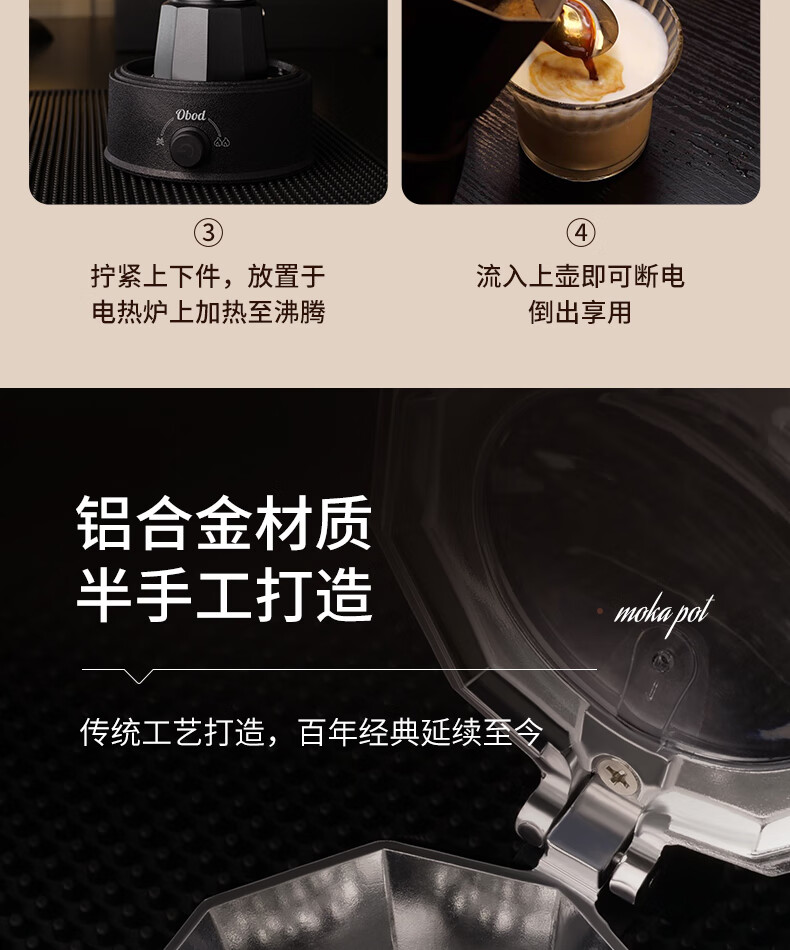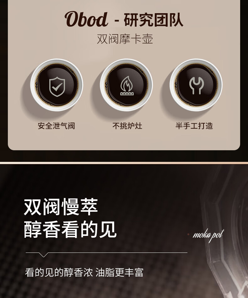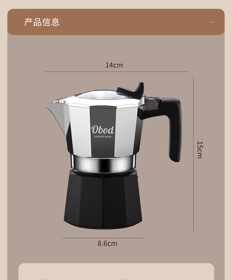 Obod fourth generation supercharged double valve Moka pot home coffee machine coffee pot set espresso extraction pot fourth generation double valve Black Knight
