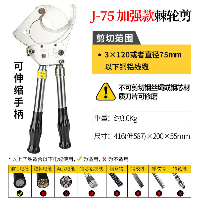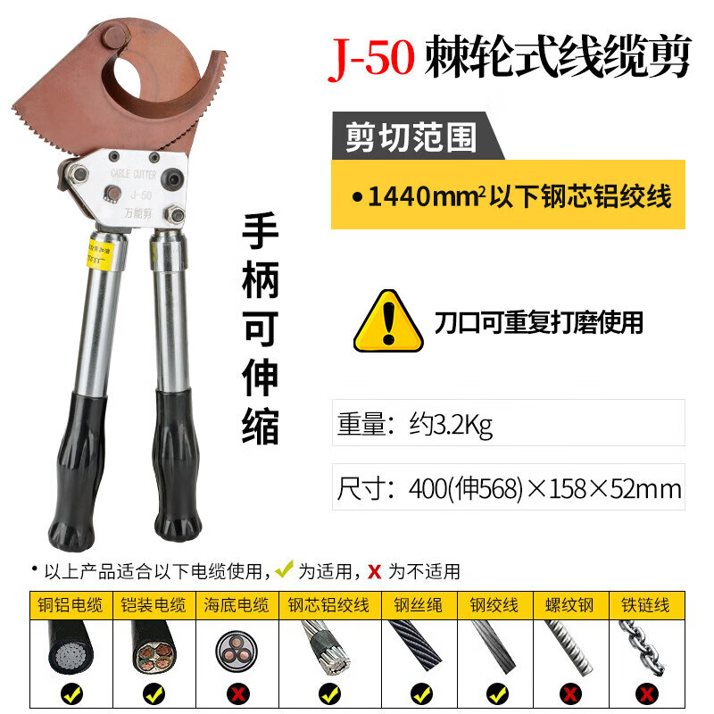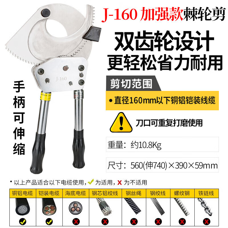 Shantou Lincun Cable Scissors Ratchet Scissors Gear Type Bolt Cutters Electrician Wire Steel Strand Cutting Wire Cutting Cable J13 Ratchet Cable Scissors Steel Strands Below 120