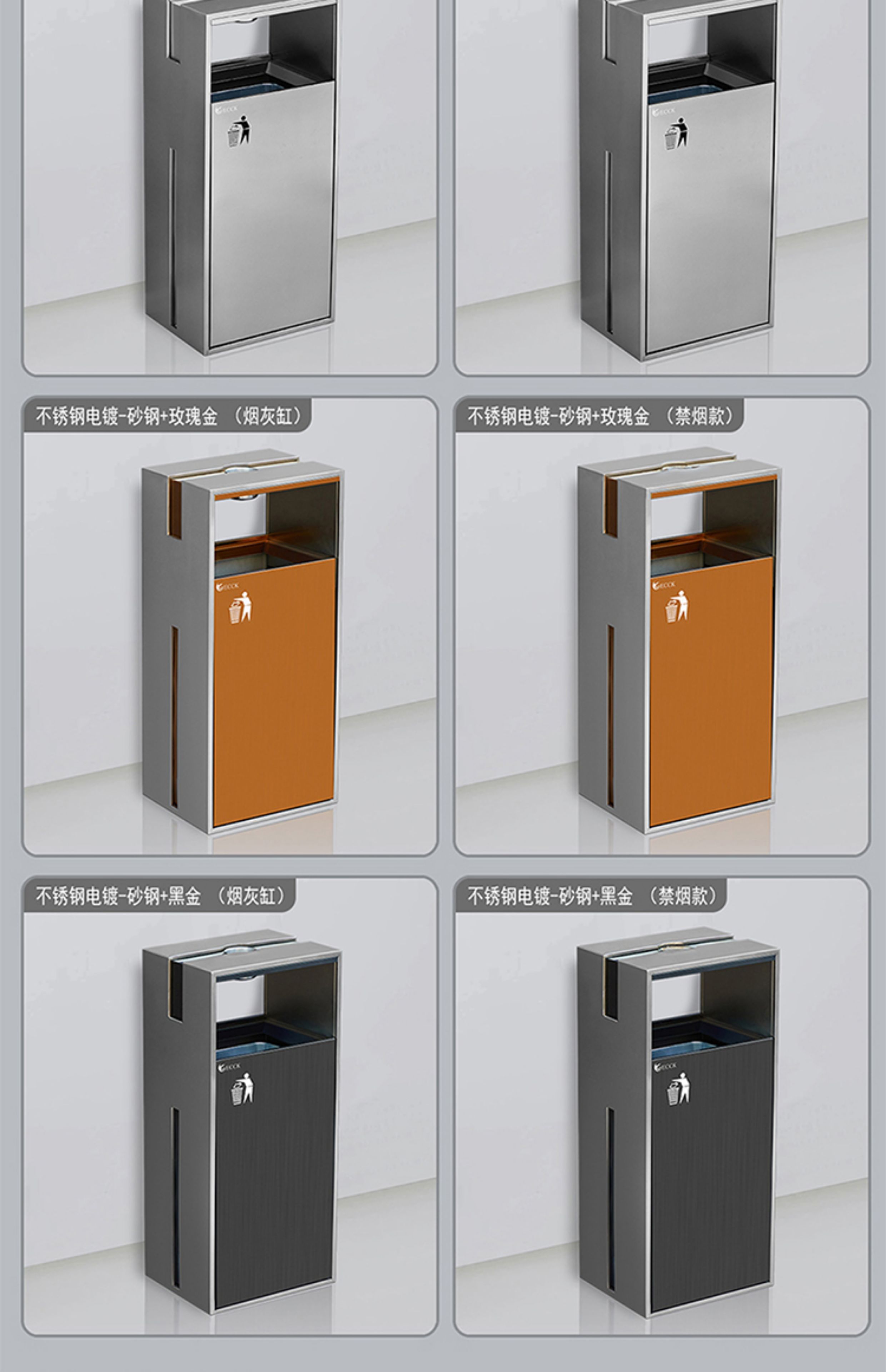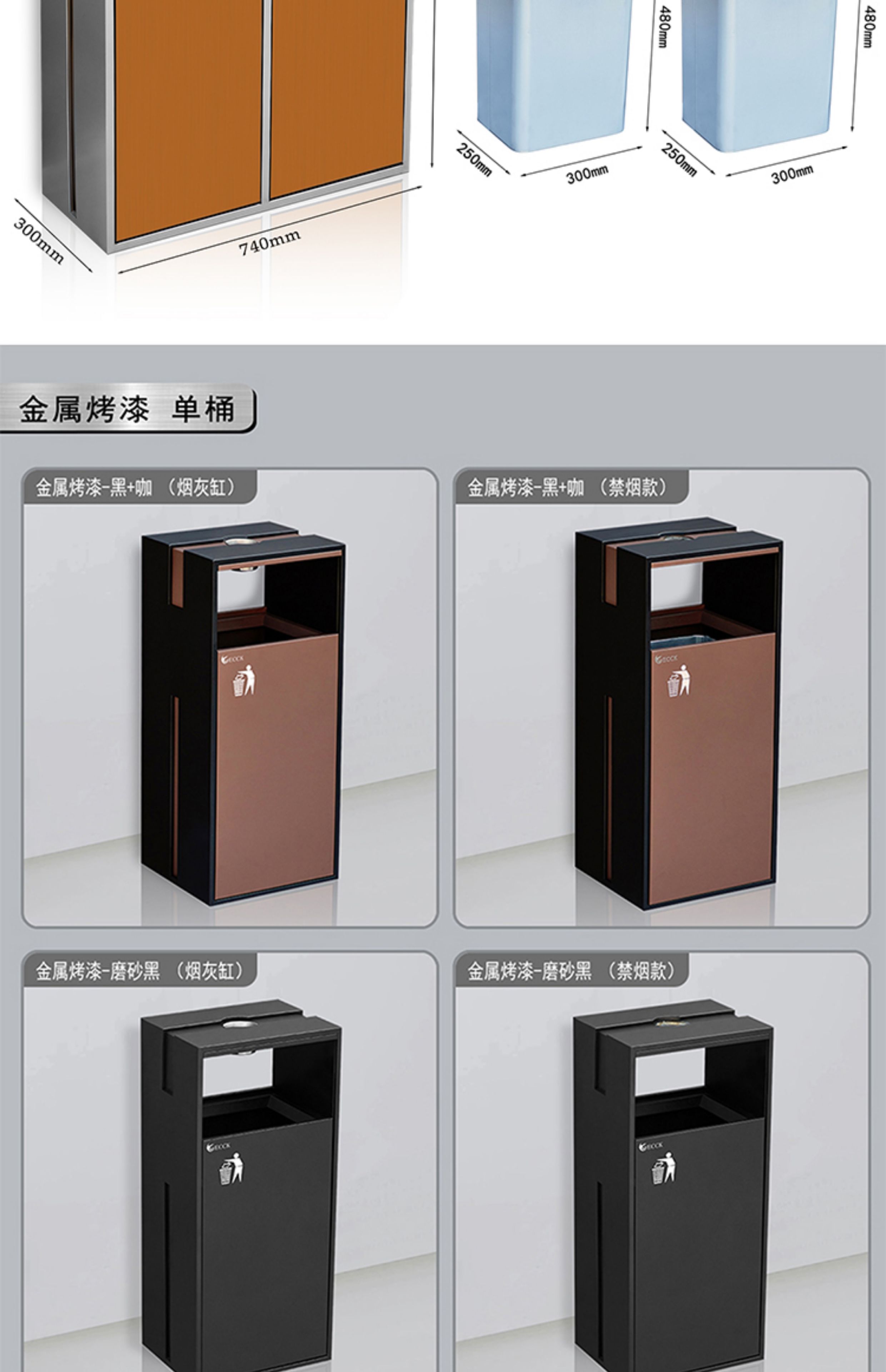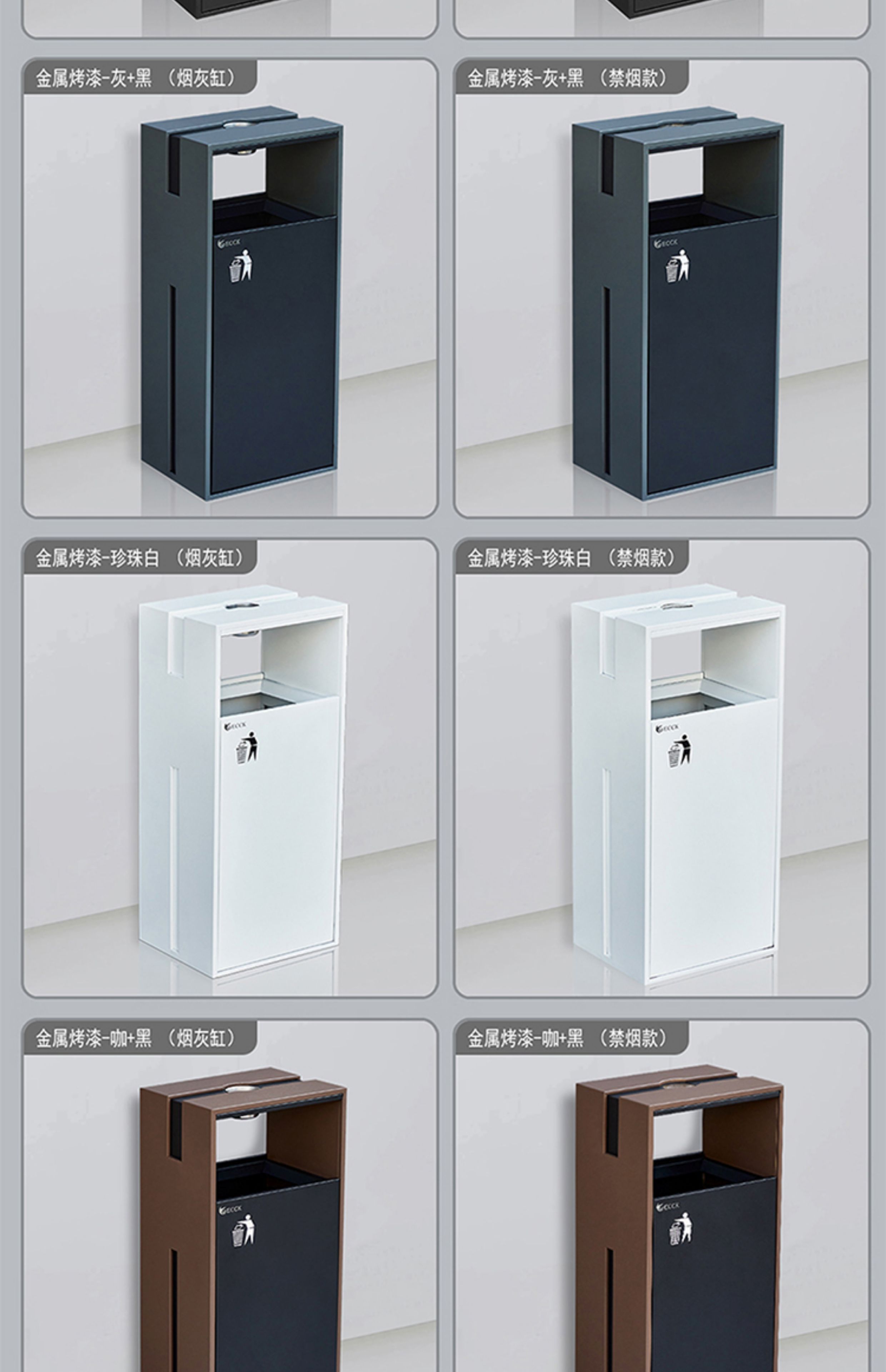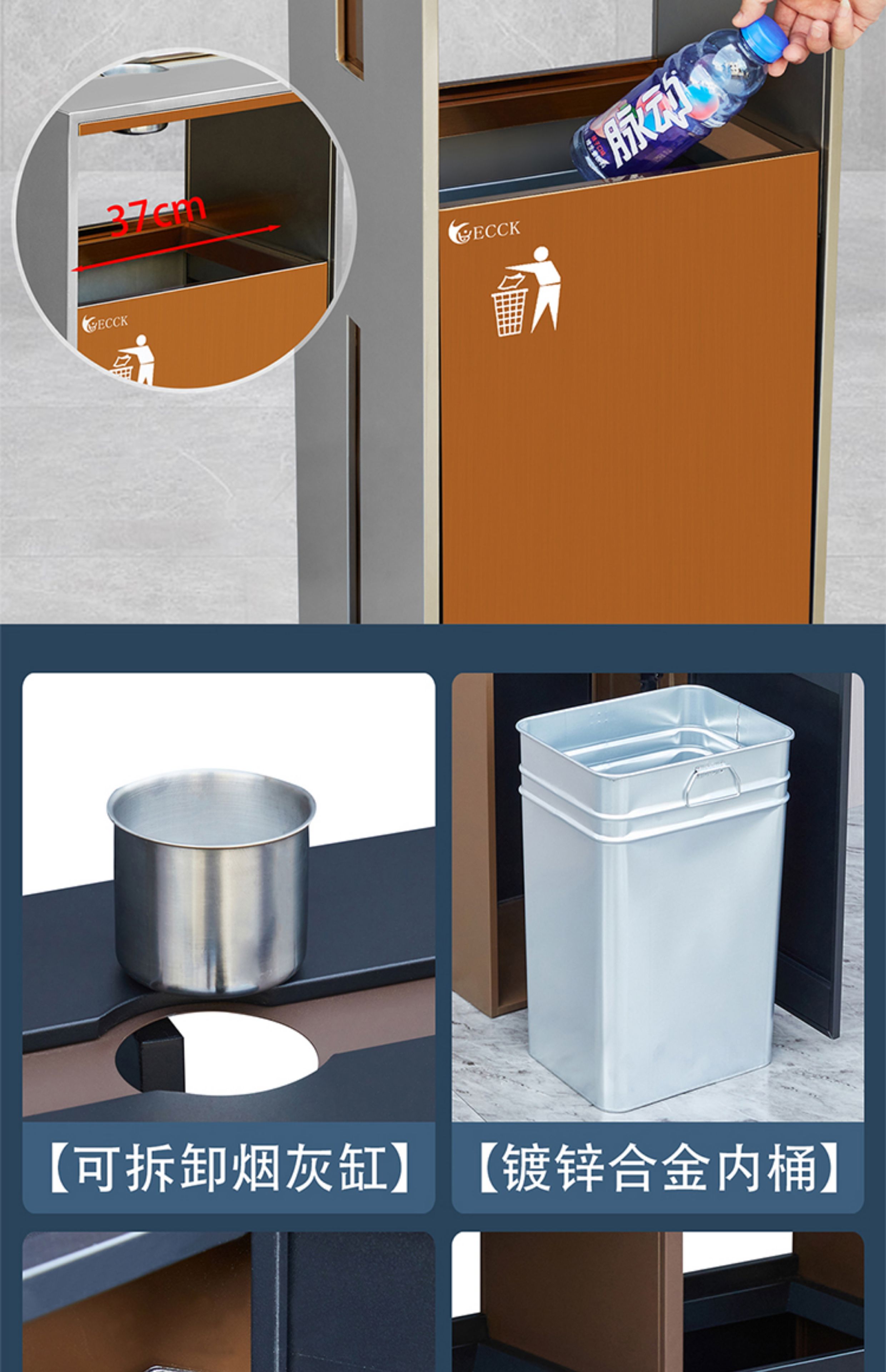 Commercial ECCK hotel lobby sanitary bucket vertical with ashtray stainless steel trash can outdoor sorting peel box metal paint - black + coffee (ashtray)