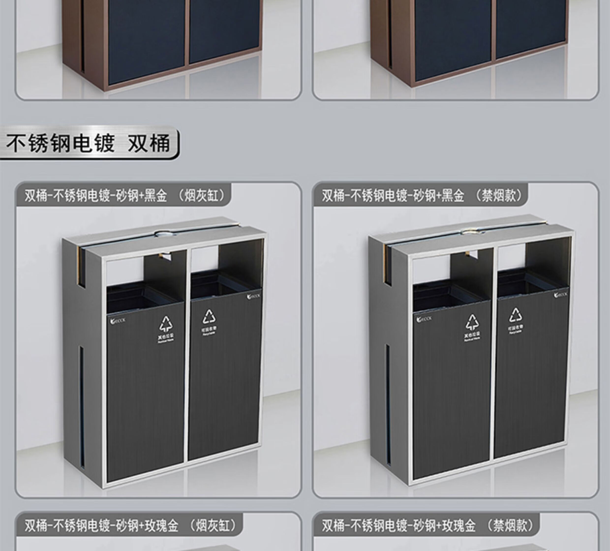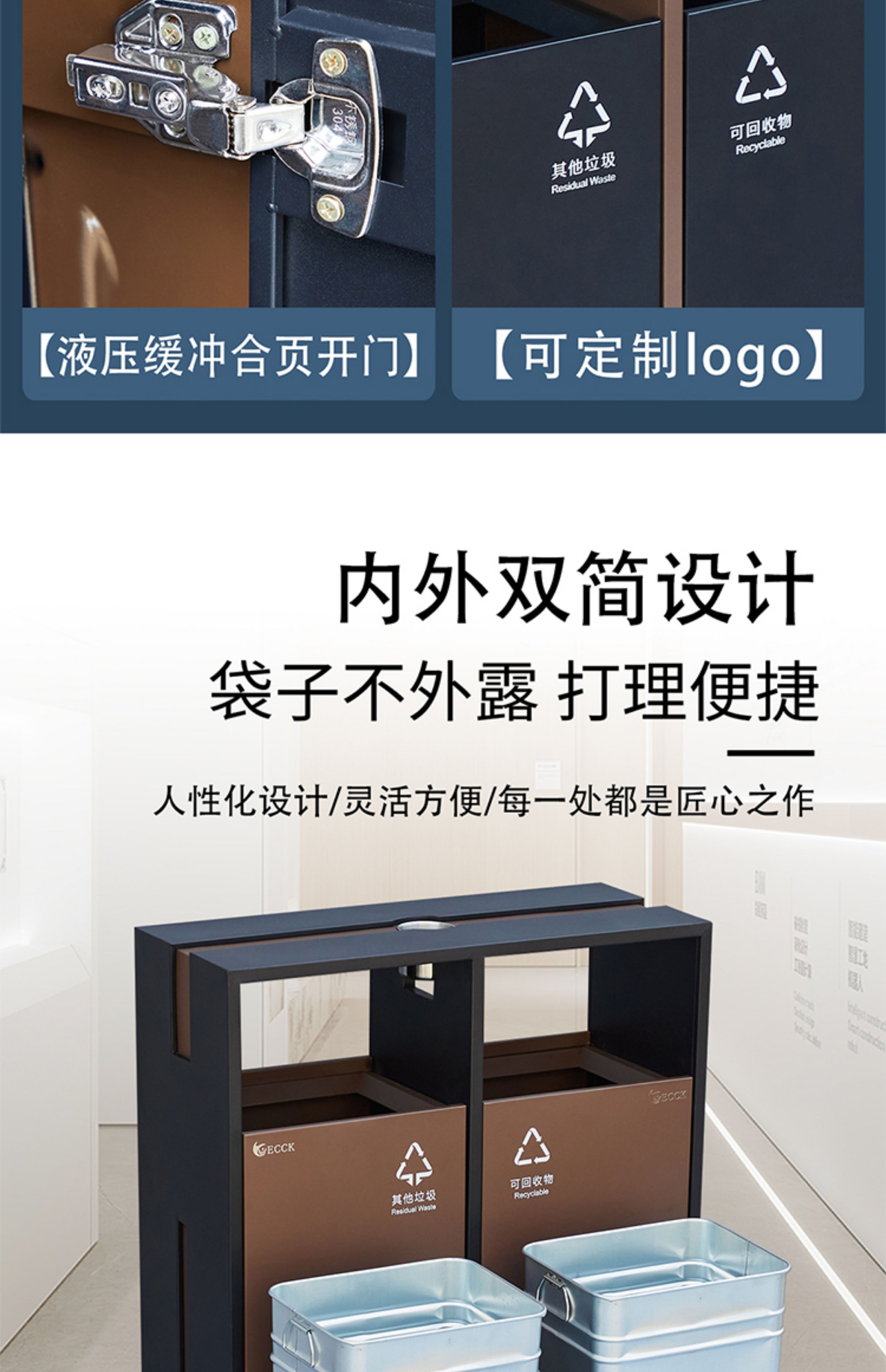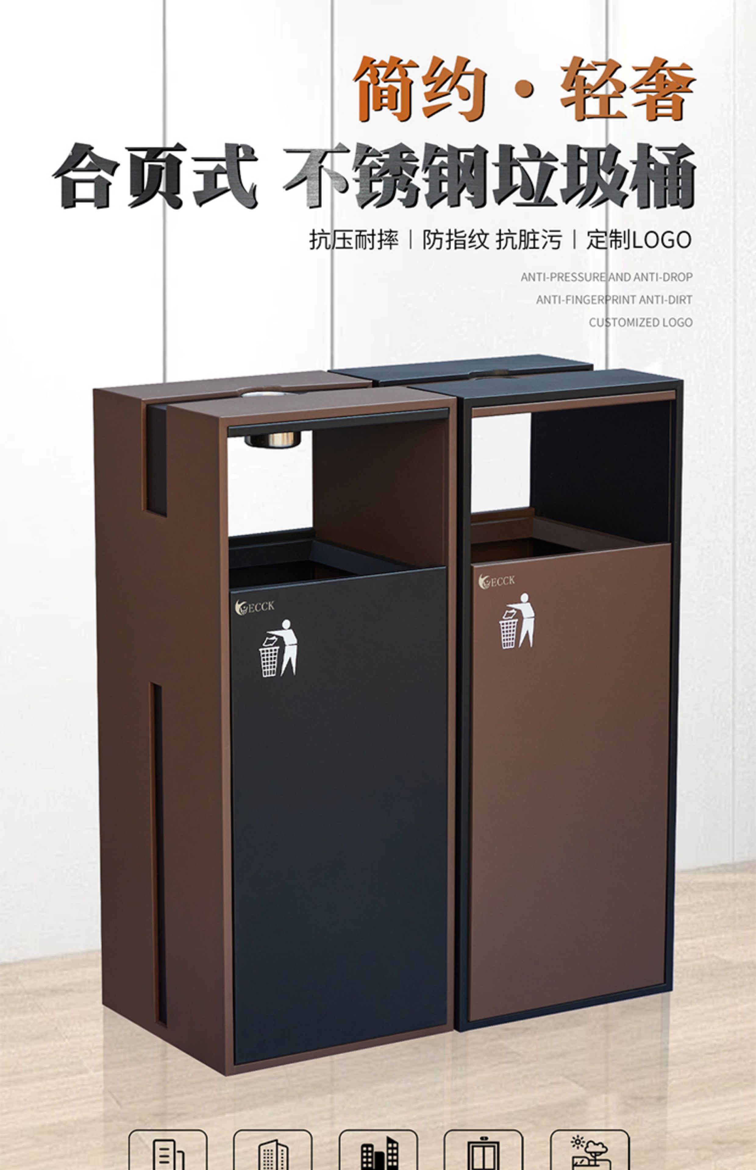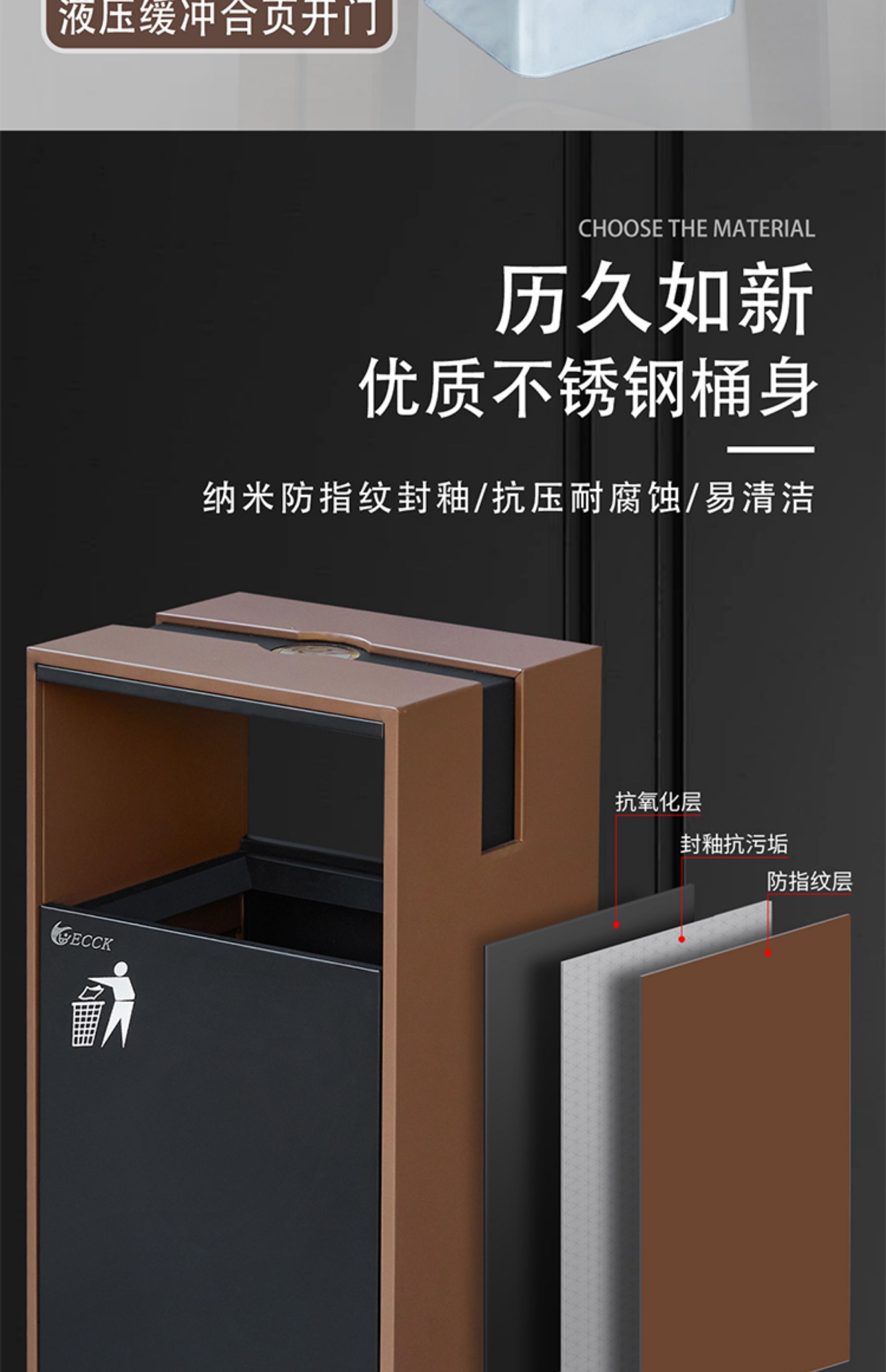 Commercial ECCK hotel lobby sanitary bucket vertical with ashtray stainless steel trash can outdoor sorting peel box metal paint - black + coffee (ashtray)