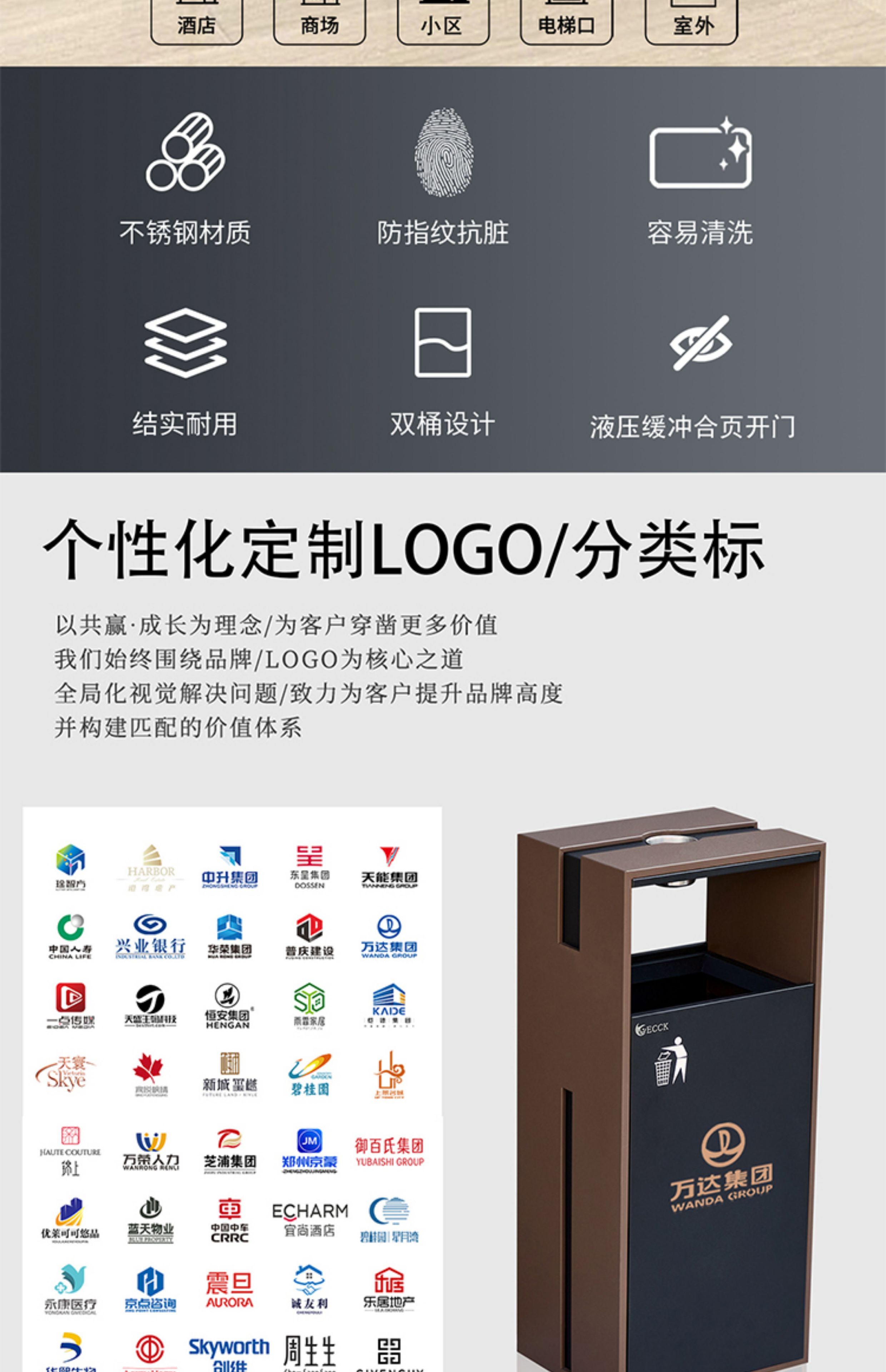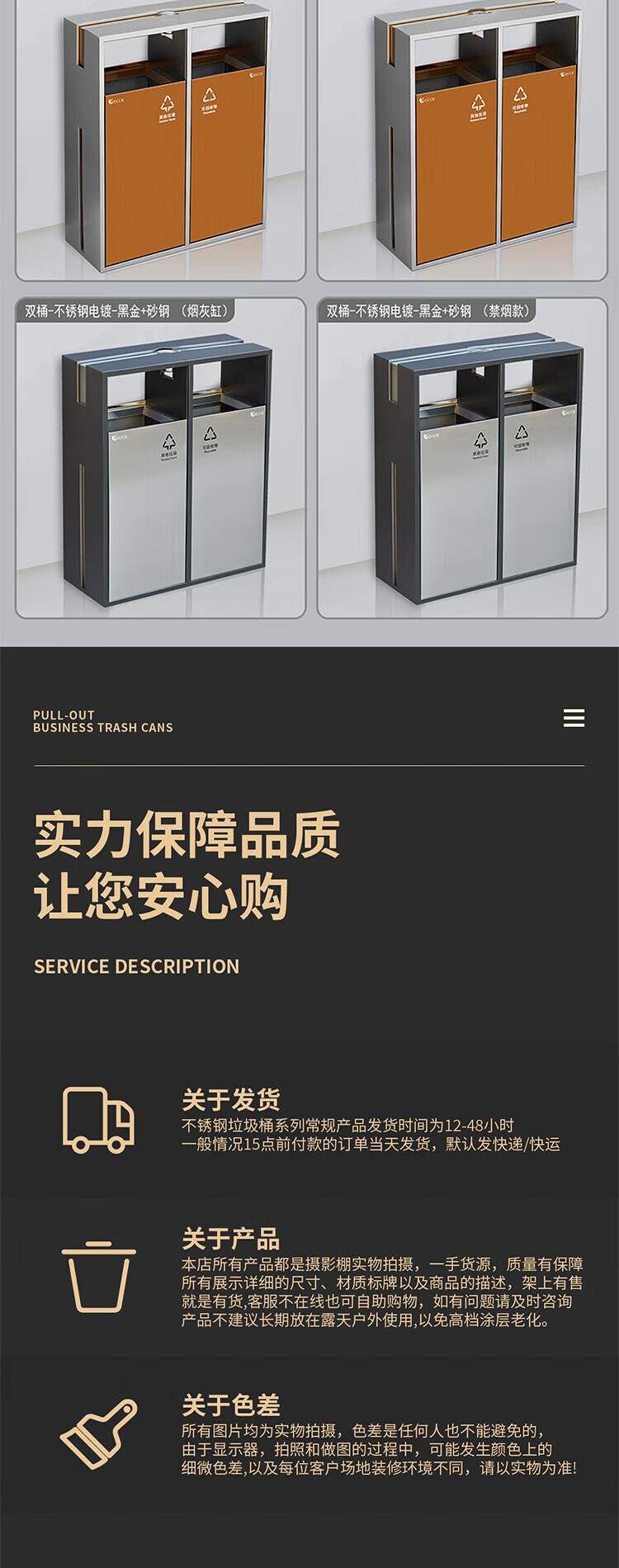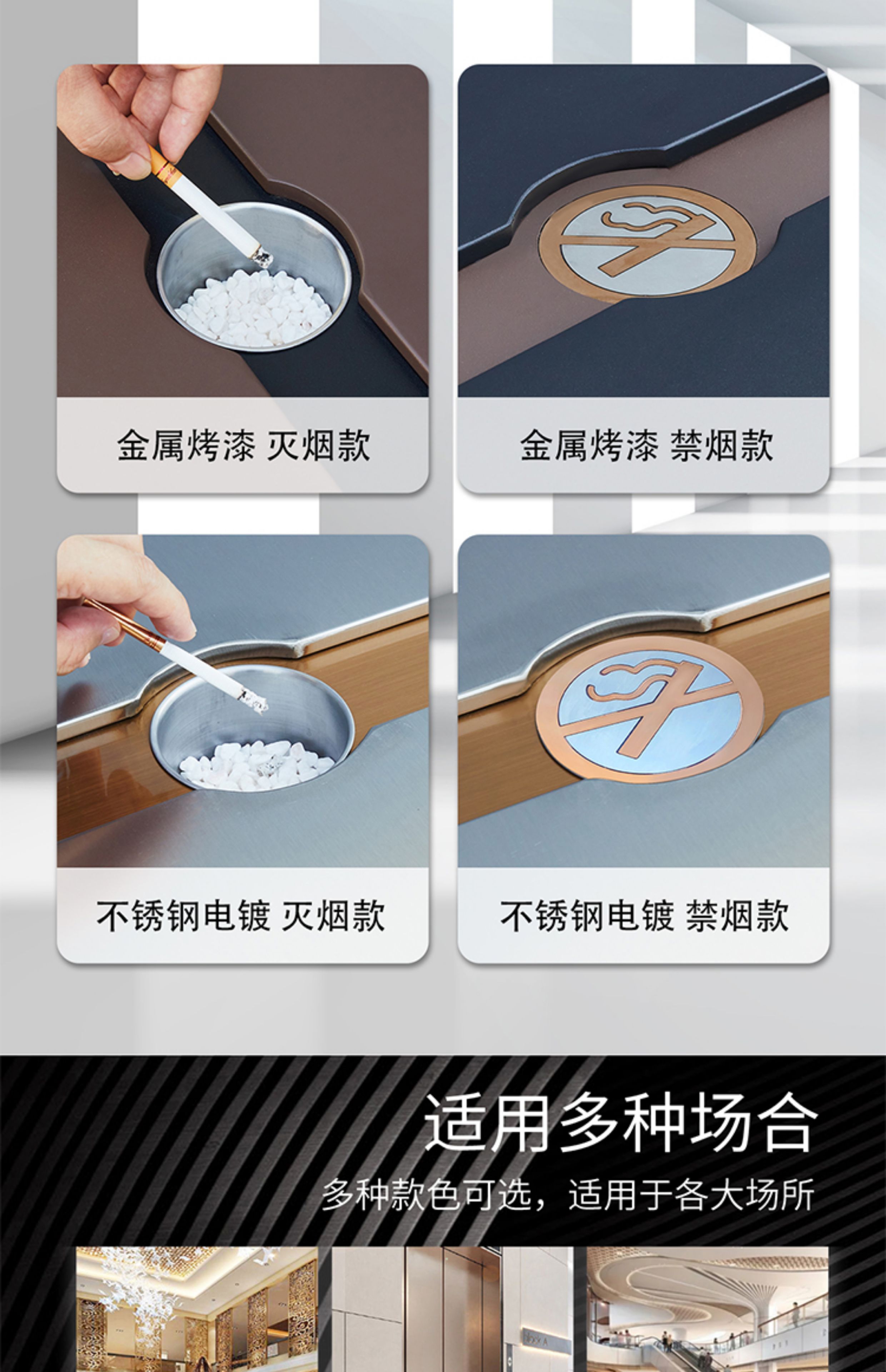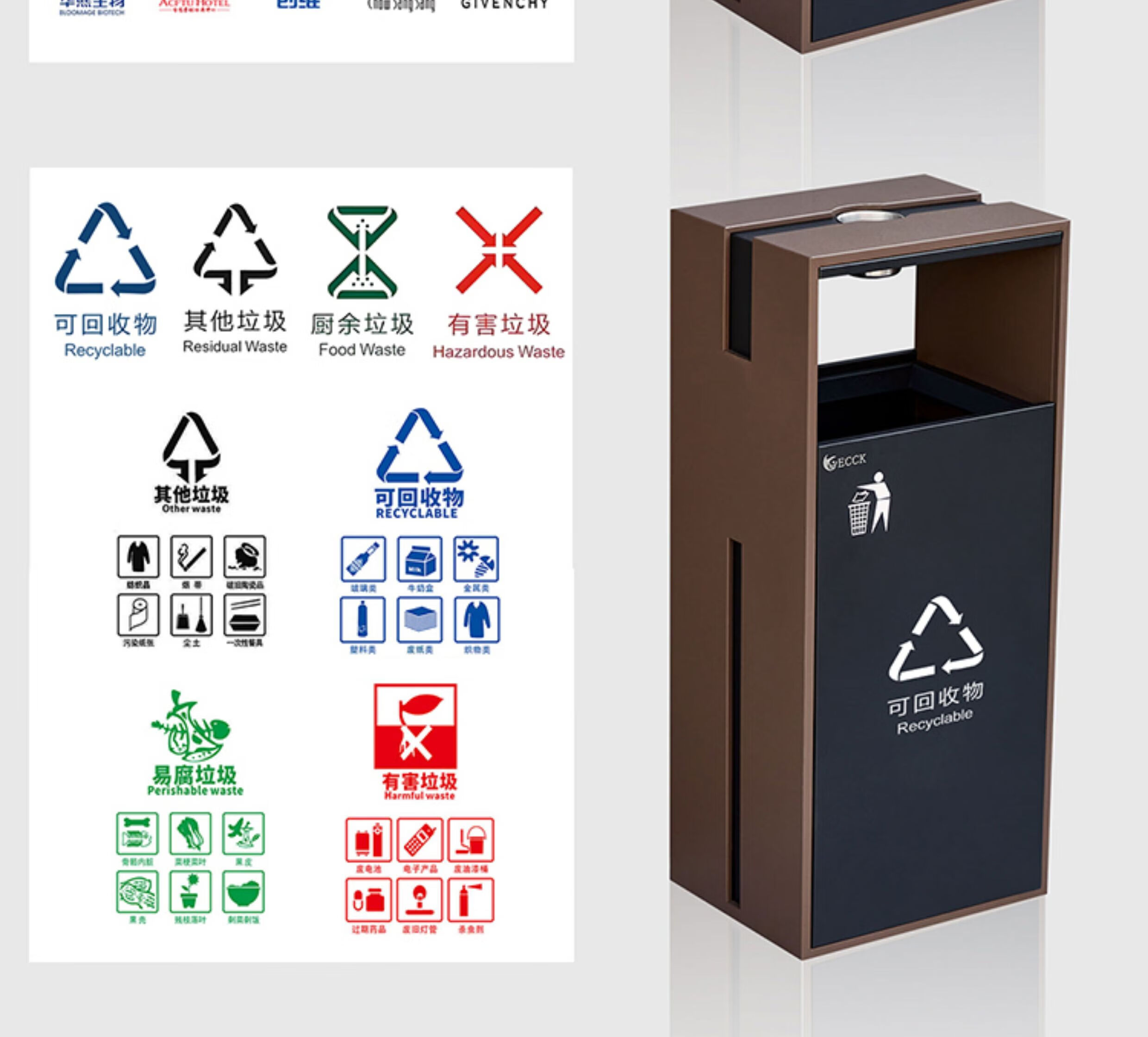 Commercial ECCK hotel lobby sanitary bucket vertical with ashtray stainless steel trash can outdoor sorting peel box metal paint - black + coffee (ashtray)