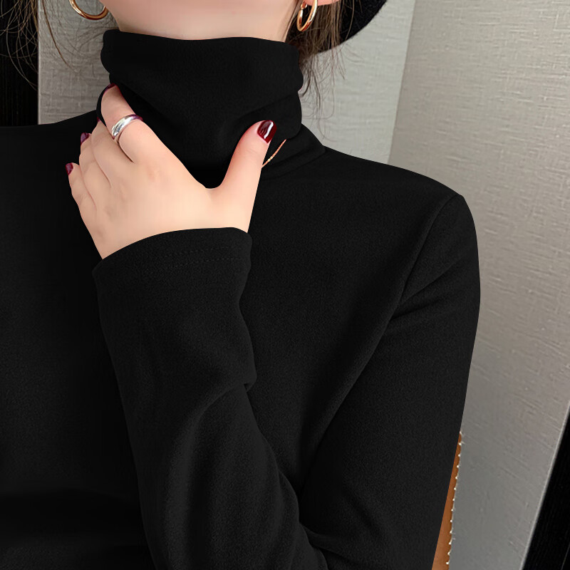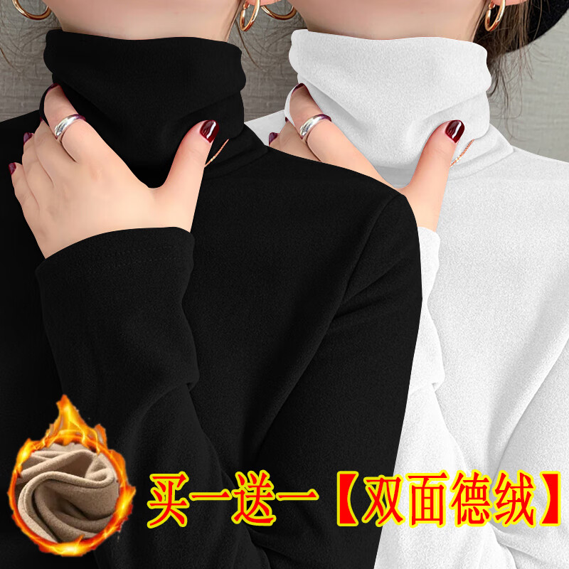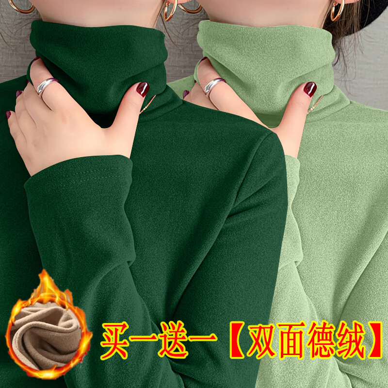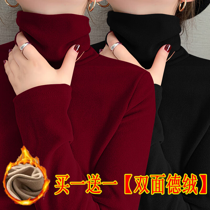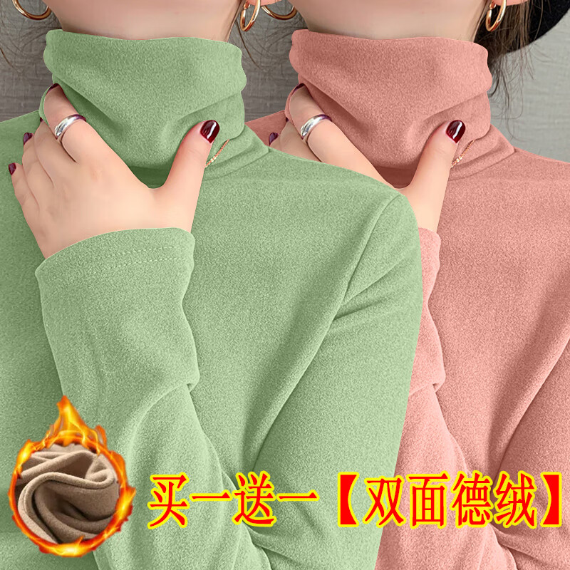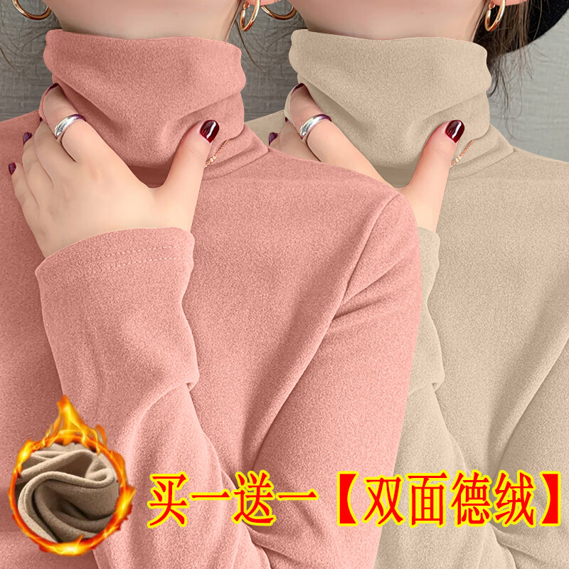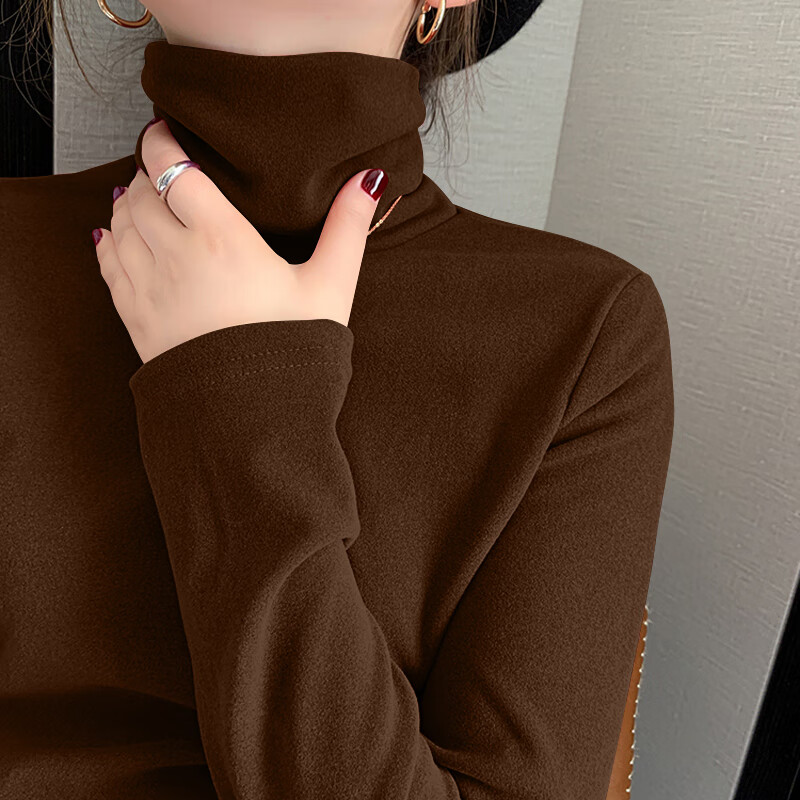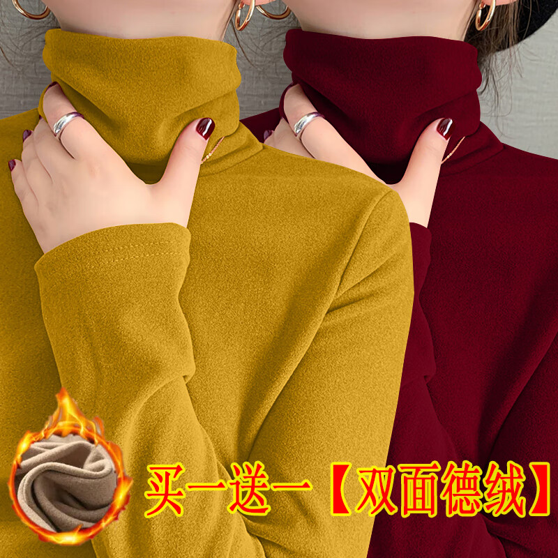 Modal double-sided German velvet turtleneck bottoming shirt for women, autumn and winter new style, thickened velvet, large size outer wear, piles of warm tops, earthy yellow + dark coffee color M, suitable for 80-95 pounds