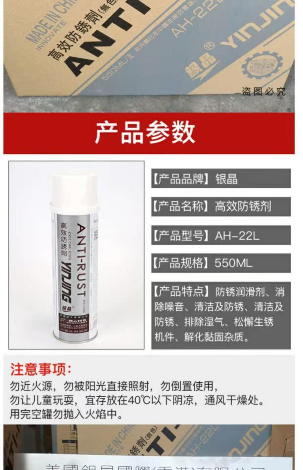 Silver crystal high-efficiency transparent rust inhibitor AH-22 L/W lubricant mold anti-rust oil rust remover 550ml AH-22L (transparent 48 pieces)