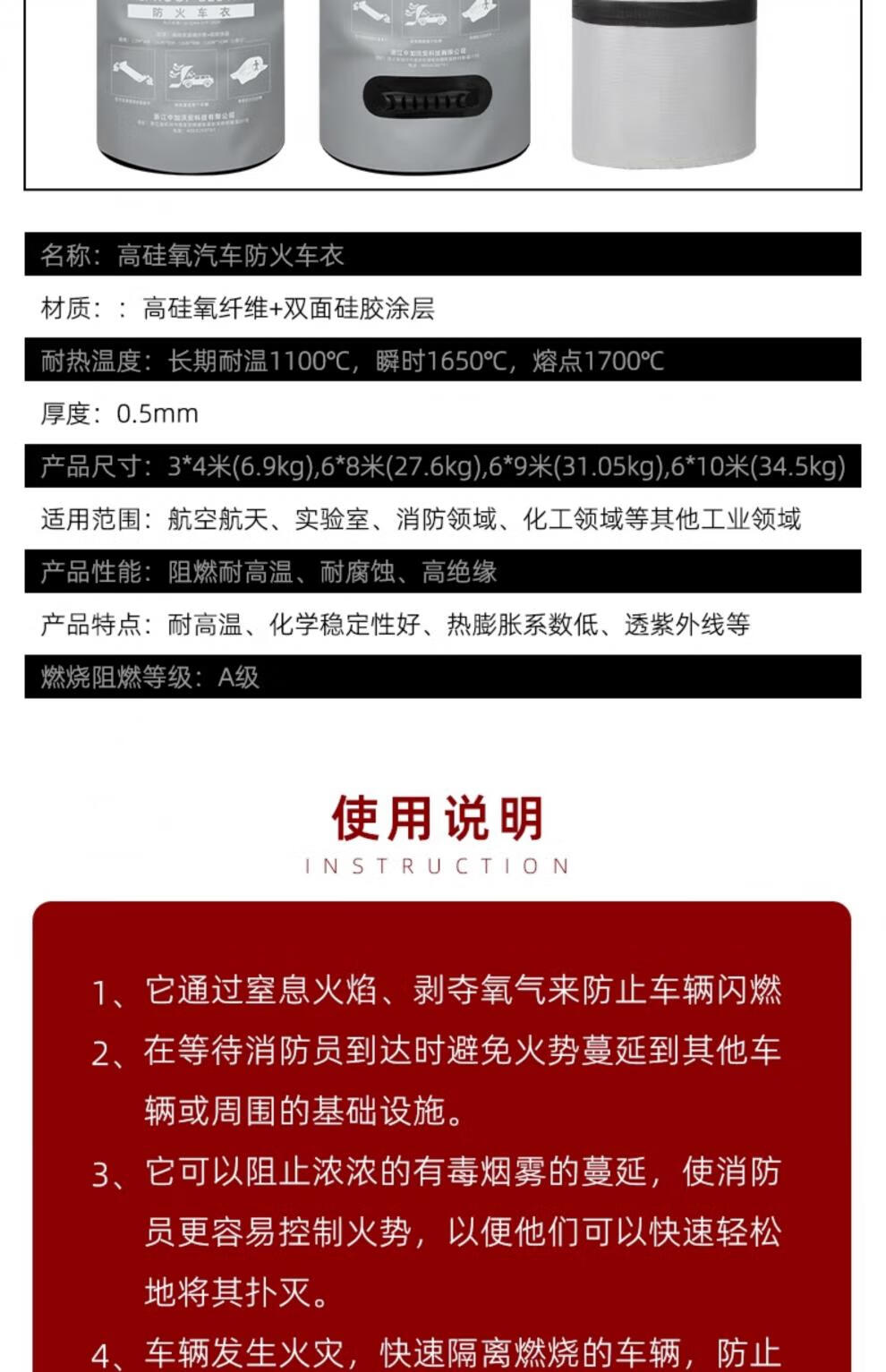 Zhongjia Woan high silica electric vehicle fire-extinguishing blanket, special for fire protection, new energy vehicle train-proof clothing, car cover, flame-retardant fire-proof blanket, high silica-new train-proof clothing 3X4 meters