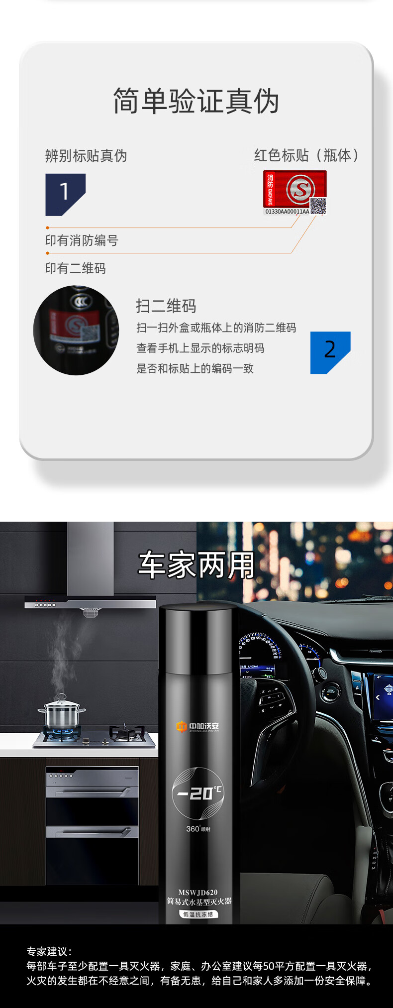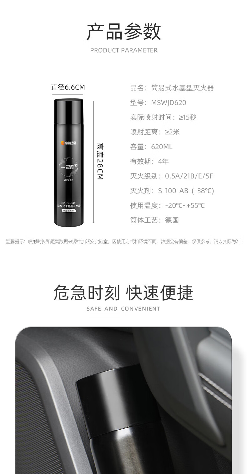 Zhongjia Woan vehicle-mounted water-based fire extinguisher private car three-piece set vehicle fire certification small car special set portable vehicle-mounted luxury emergency escape combination_Female driver