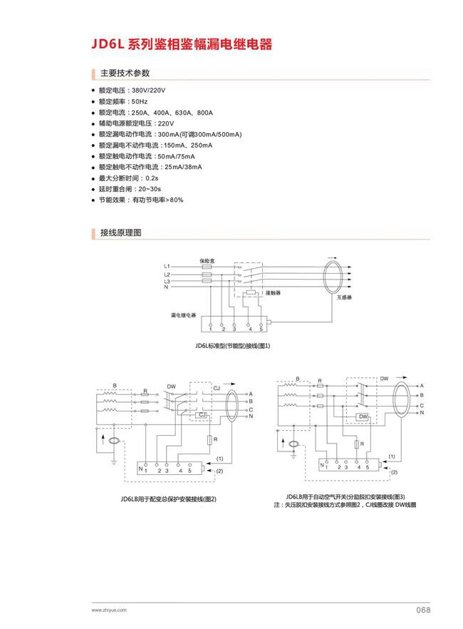 Zhiyue Group JD6L-250A-K phase detection amplitude leakage silent operation leakage relay 400A 630A JD6L-630A