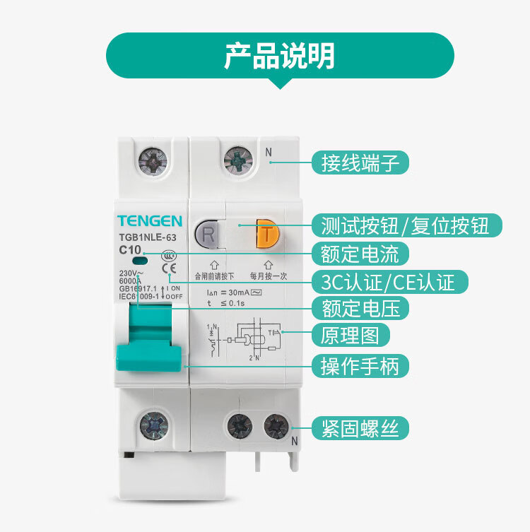 Tianzheng leakage protector TGB1NLE-63 D type 300mA circuit breaker DZ47LE power air switch 40 50A 40A 1P+N