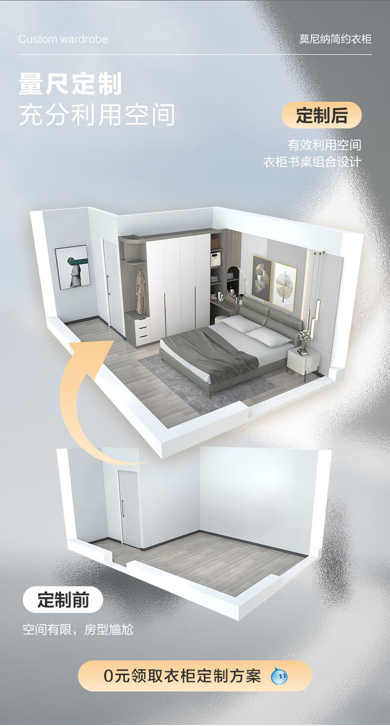 Aoyanlai customized walk-in wardrobe cloakroom home bedroom space customized wardrobe whole house customized Monina customized gold, please consult customer service for details to enjoy 1 square meter