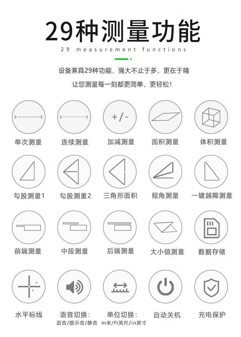 H three-in-one laser range finder with cross level multi-function high-precision handheld electronic ruler measuring instrument red light indoor 40 meters green light cross voice