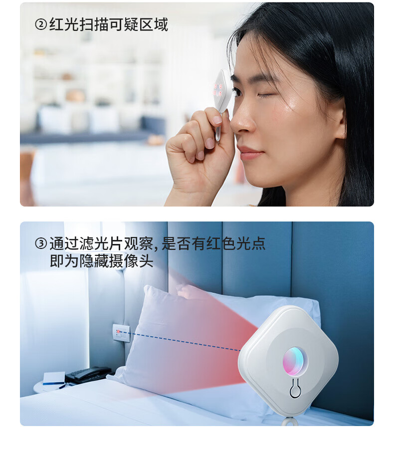 JD Logistics Hotel Anti-Peeping Artifact Camera Smart Detector Infrared Detector Anti-shooting Pearl White Acoustic and Light Infrared Scanning + Long-distance Detection
