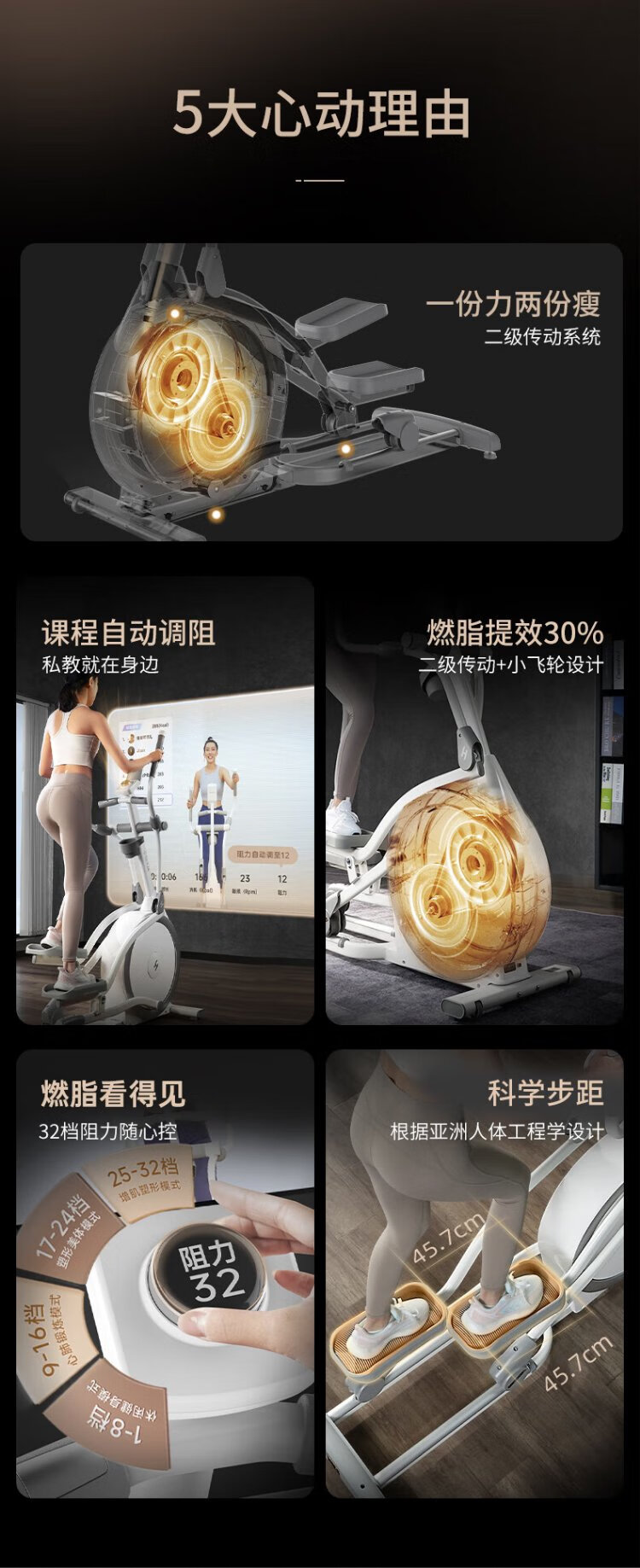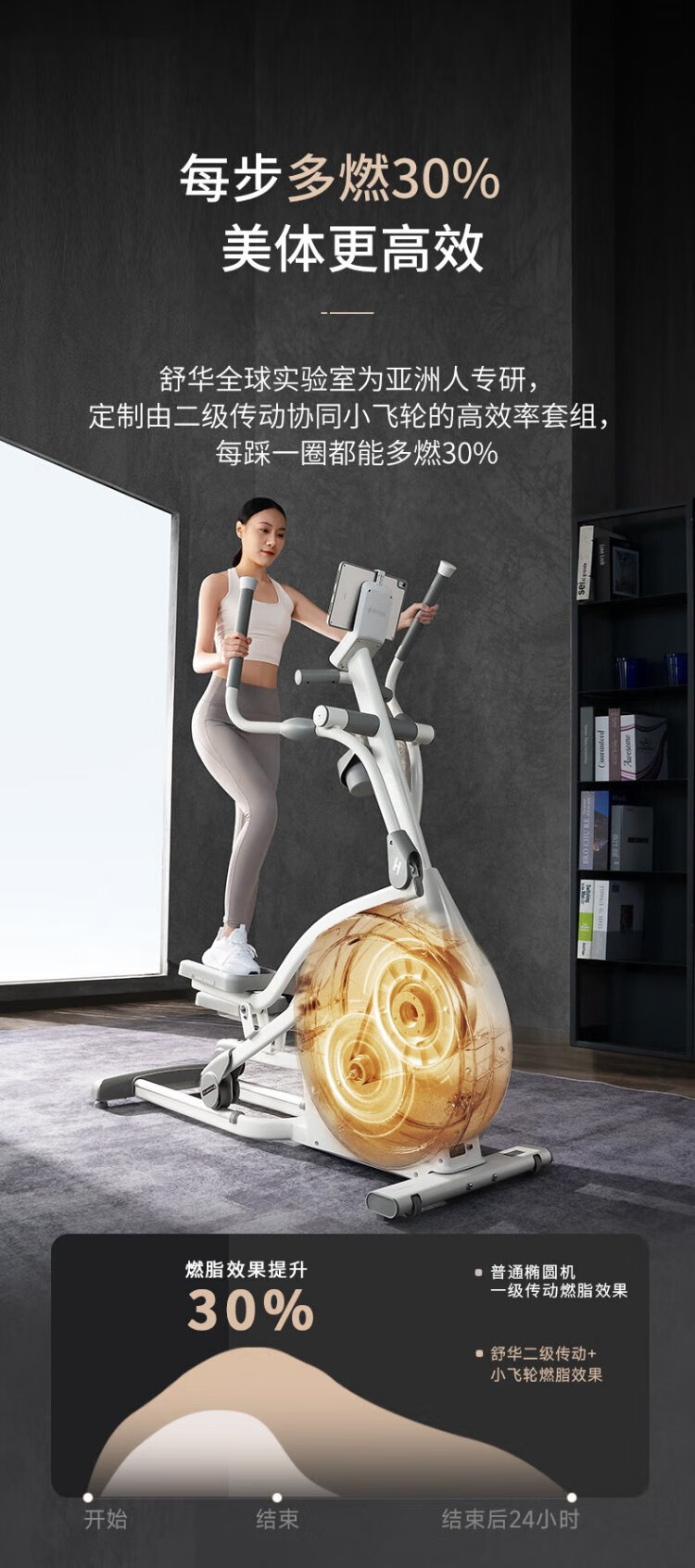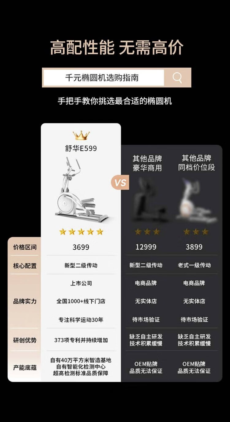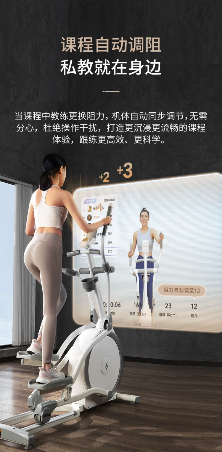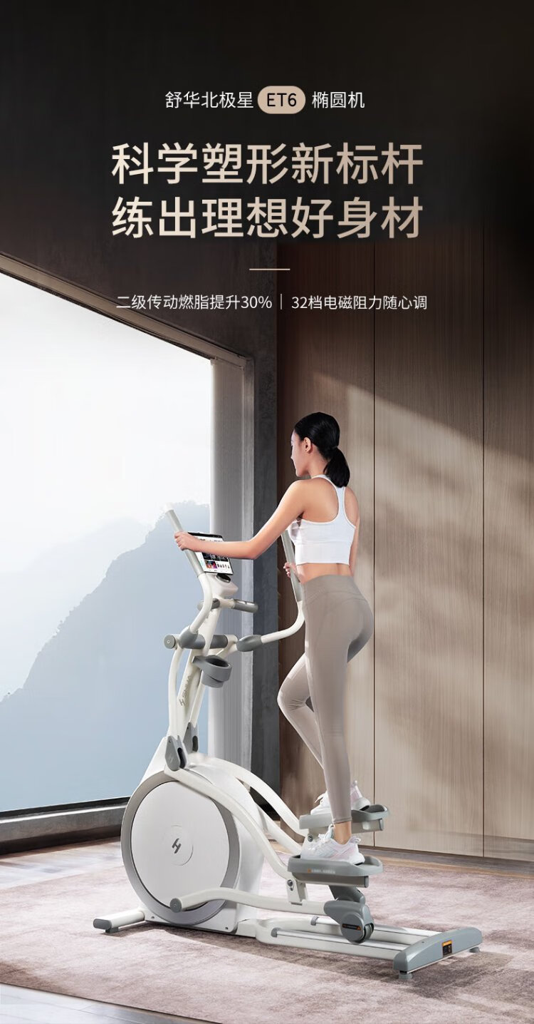 Shuhua (SHUA) elliptical machine household high-end silent elliptical machine space walker mountaineering machine gym fitness equipment ET6 toffee white self-generated flagship model intelligent resistance adjustment | innovative two-stage transmission