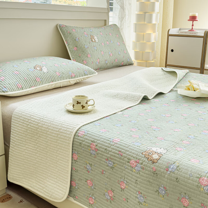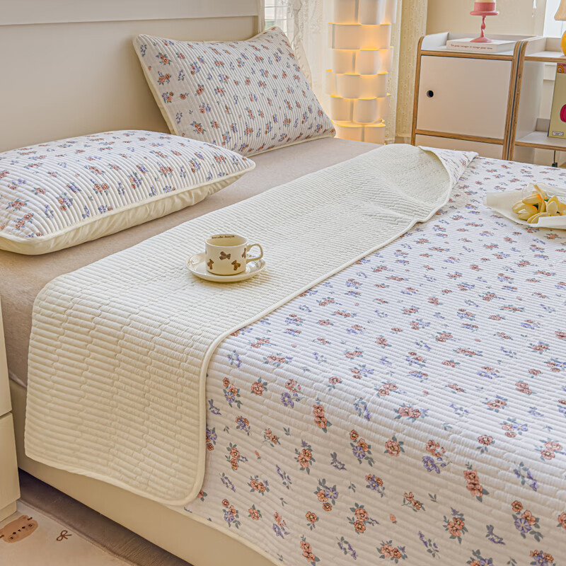 RSRDDY Cotton Customized Category A Mother and Baby Summer Four Seasons Small Floral Cotton Sheet Twill Tatami Kang Cover Three-piece Set 3 Xing Yu Wish Pure Cotton Two-piece Bed Cover Set 90*200 + One Pillowcase