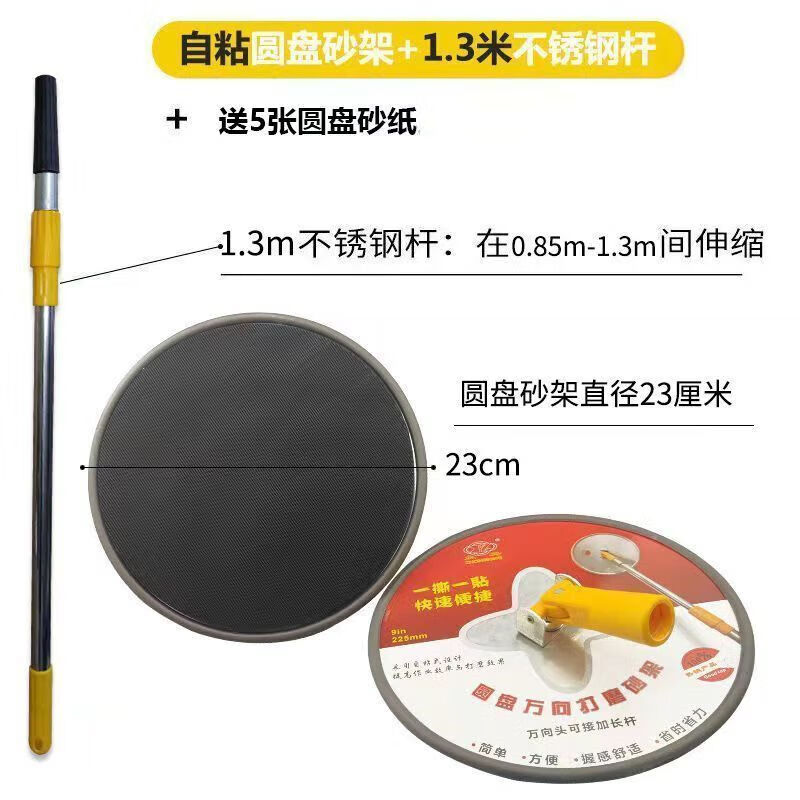 An Junsheng 9-inch disc universal sanding rack wall wall top polishing sanding rack self-adhesive sand rack wall grinder disc sanding rack + 1.3 meter telescopic rod + 5 pieces of sandpaper