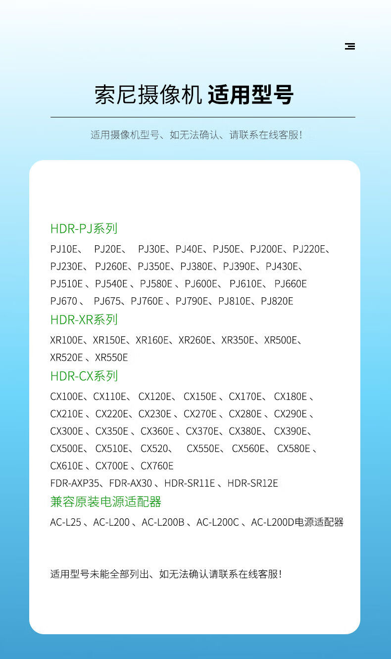 Suitable for Sony camera HDR-XR500E XR520E XR550E power cord SR11E SR12E charger S Sony camera AC-L25 direct charging/power adapter 1.5 meters