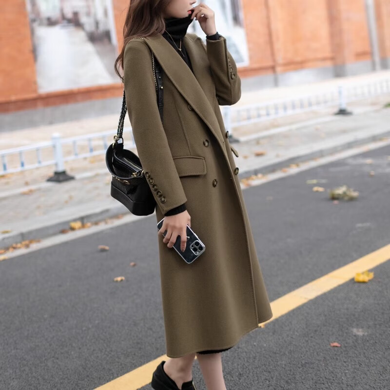 Playboy (PLAYBOY) brand high-end single-sided cashmere coat long knee-length 2025 autumn and winter new slim-fitting temperament wool woolen coat Autumn moon color (thickened with velvet) S S (85-100 pounds)
