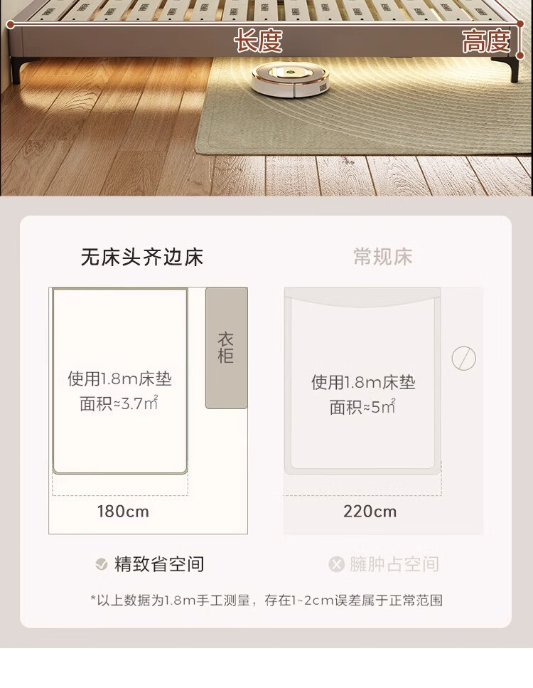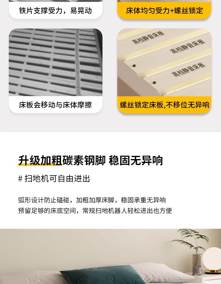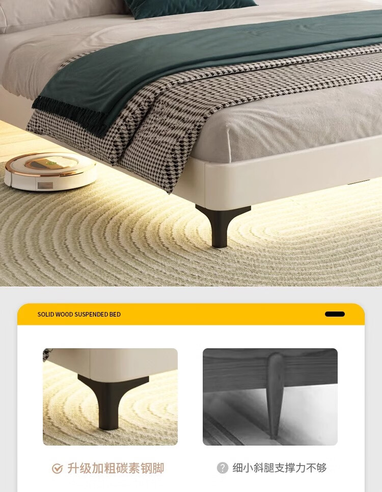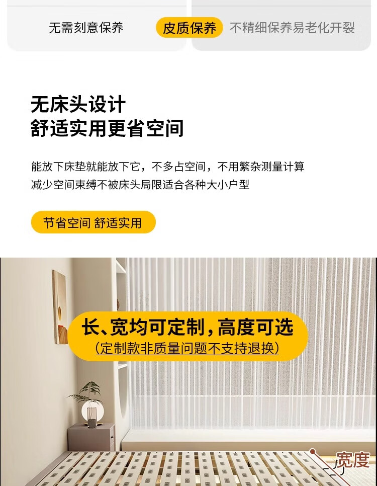Xinquanyou cream style tatami bed ribbed frame bed modern and simple no bedside master bed small apartment double bed can be customized standard version tatami single bed frame structure solid wood silent bed board x 1000mm*190