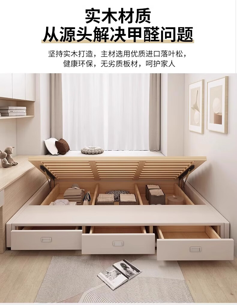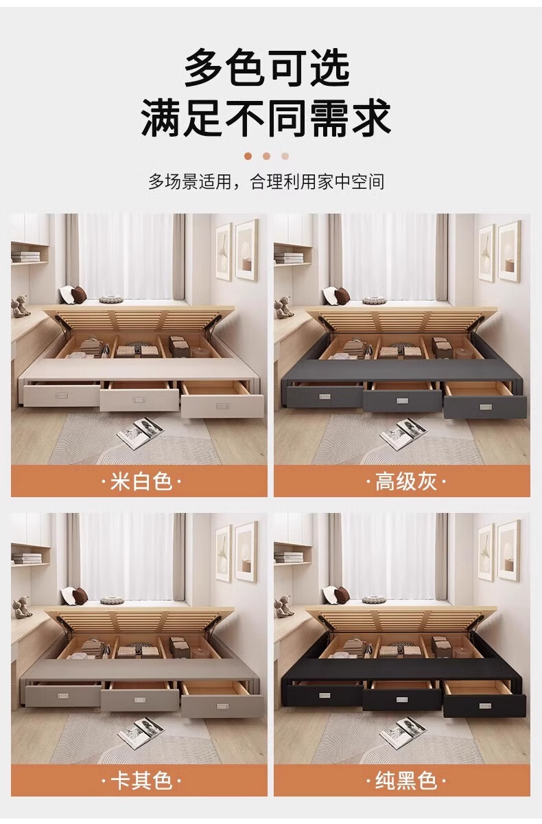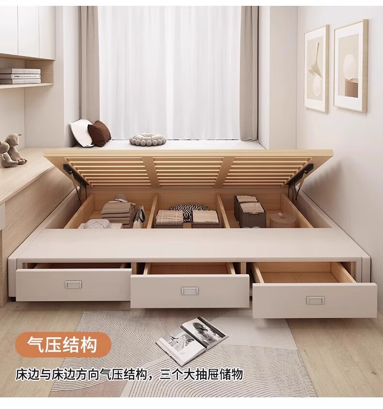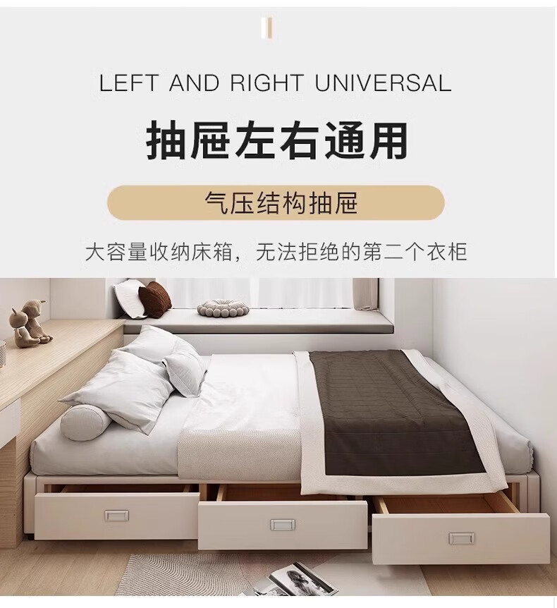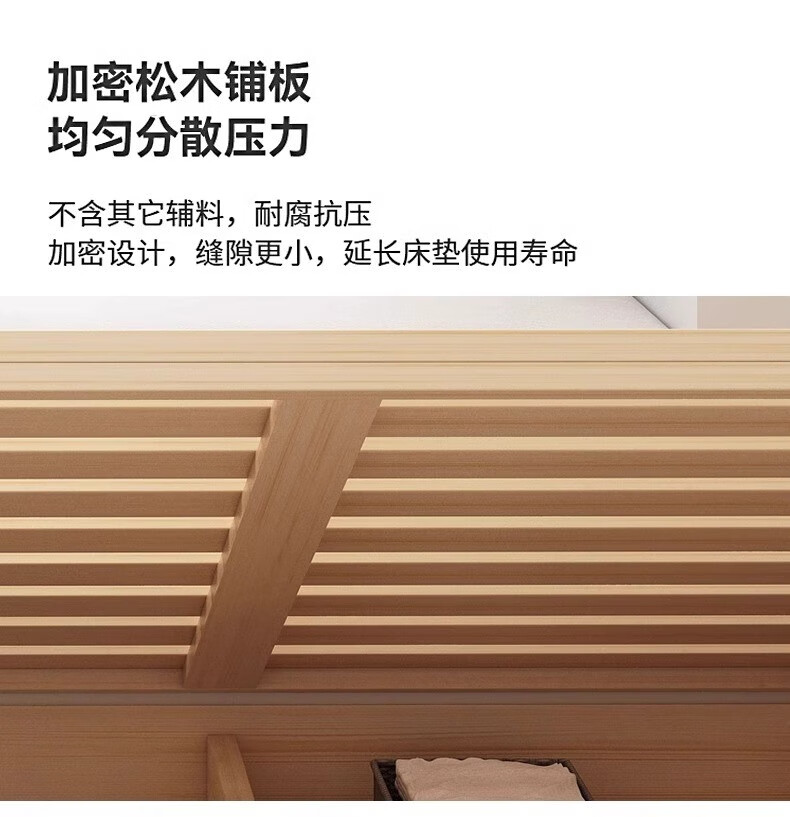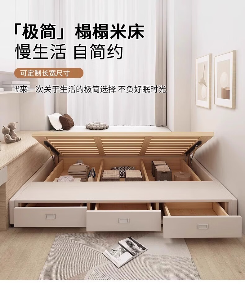 Xin Quanyou tatami bed small apartment without bedside master bedroom double storage bed modern simple solid wood three drawer side opening high box bed encrypted version tatami single bed 1000mm*1900mm x side opening three drawer structure
