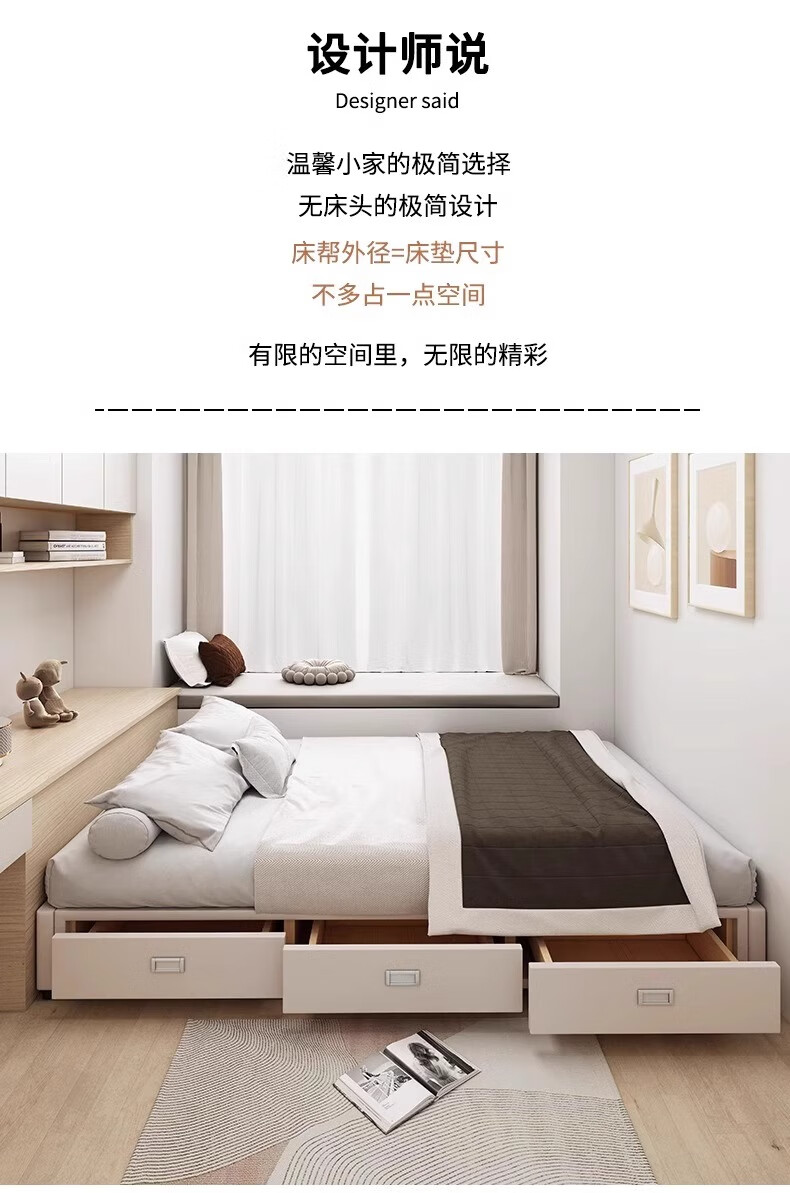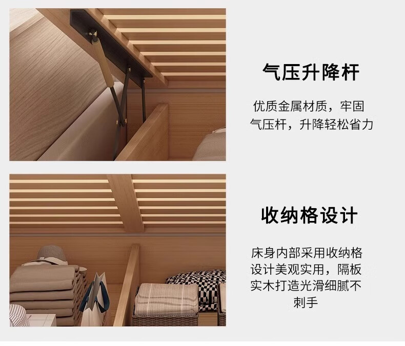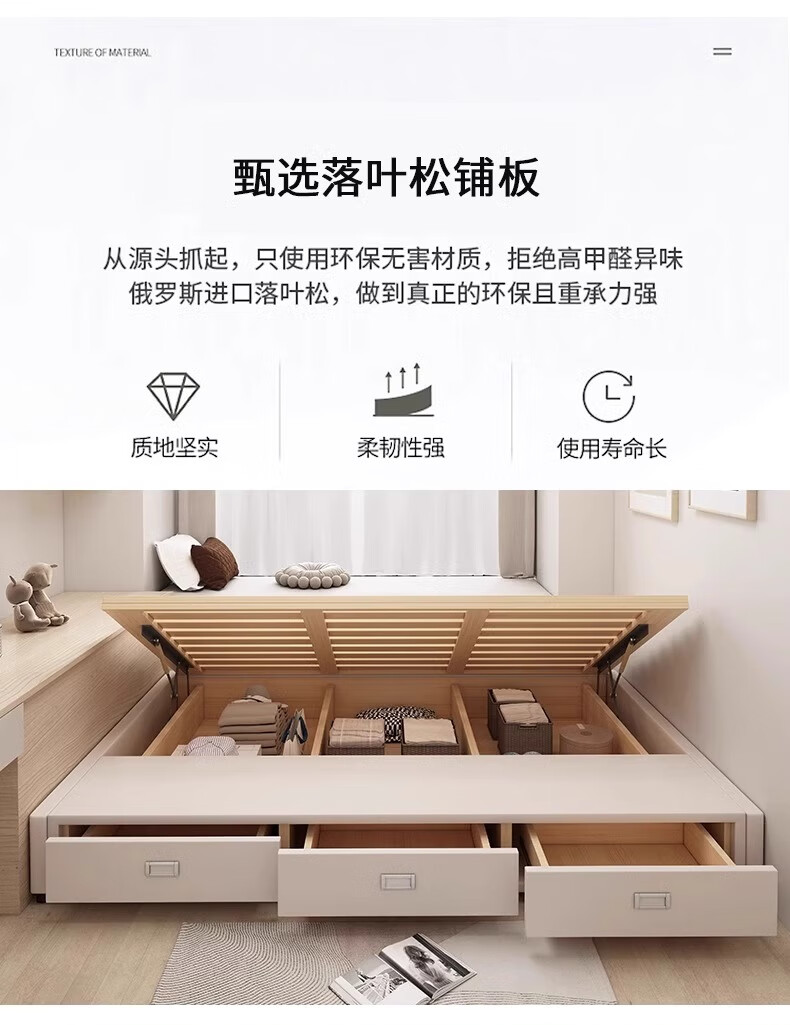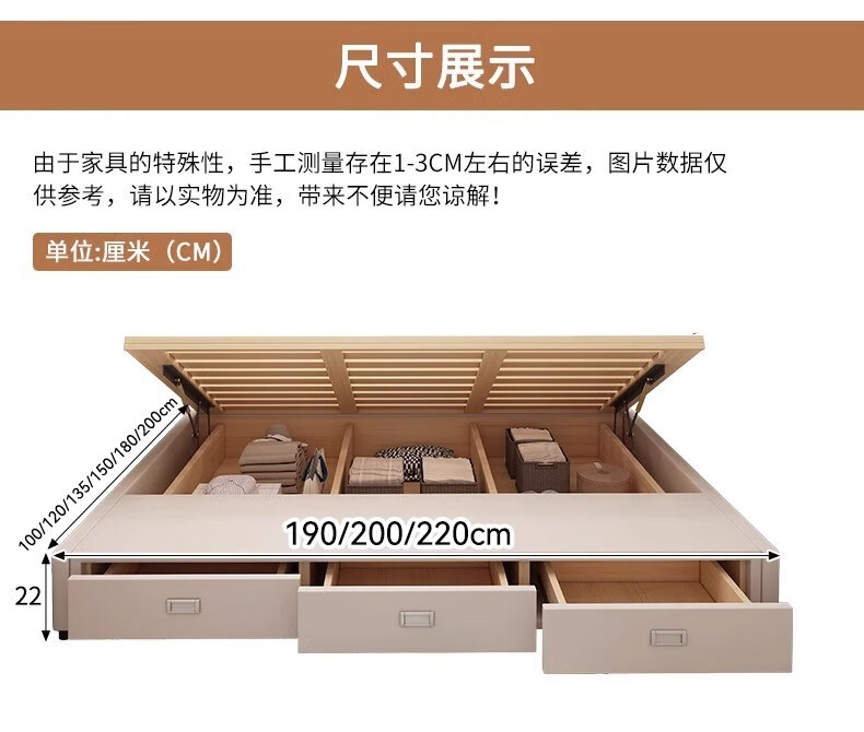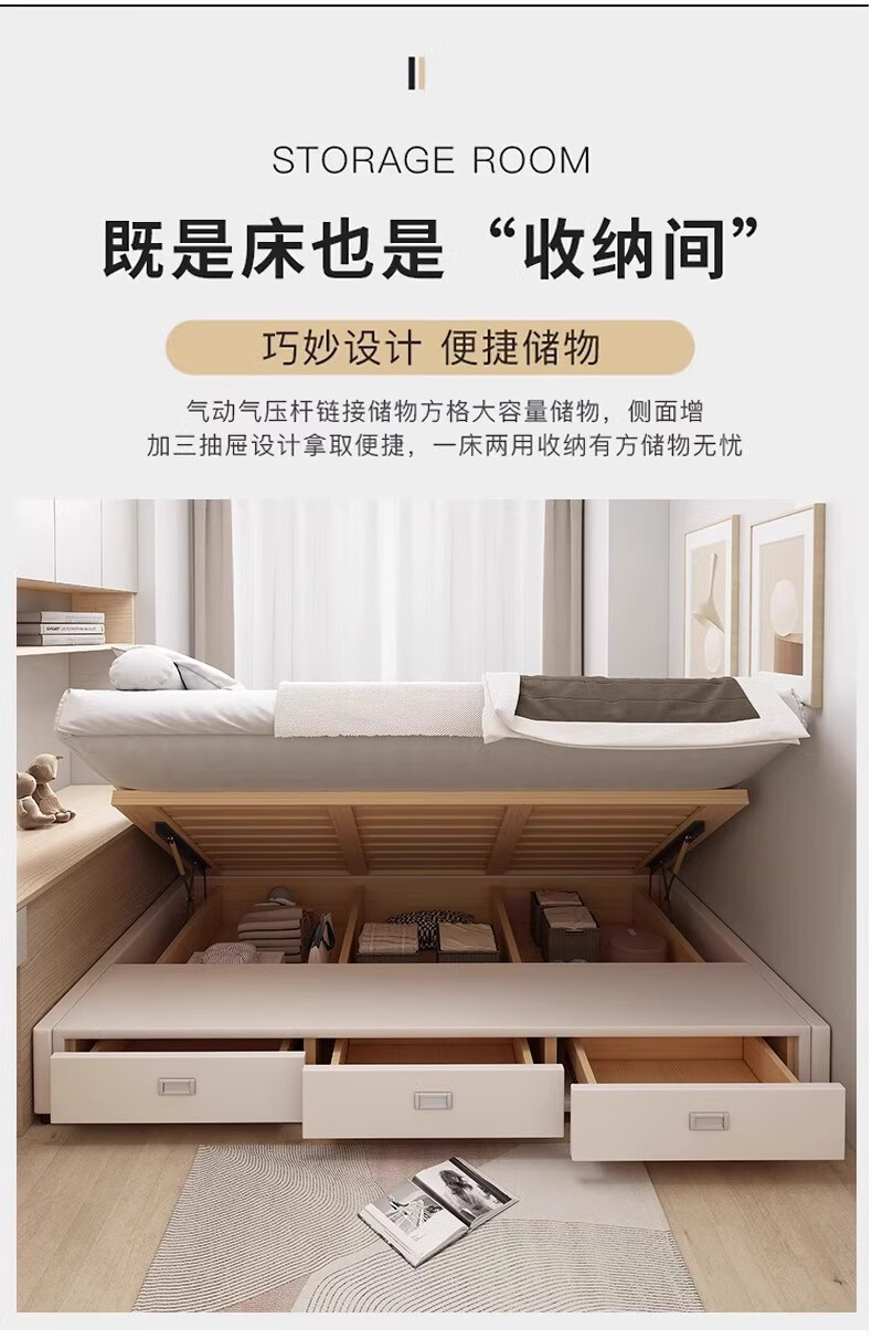 Xin Quanyou tatami bed small apartment without bedside master bedroom double storage bed modern simple solid wood three drawer side opening high box bed encrypted version tatami single bed 1000mm*1900mm x side opening three drawer structure