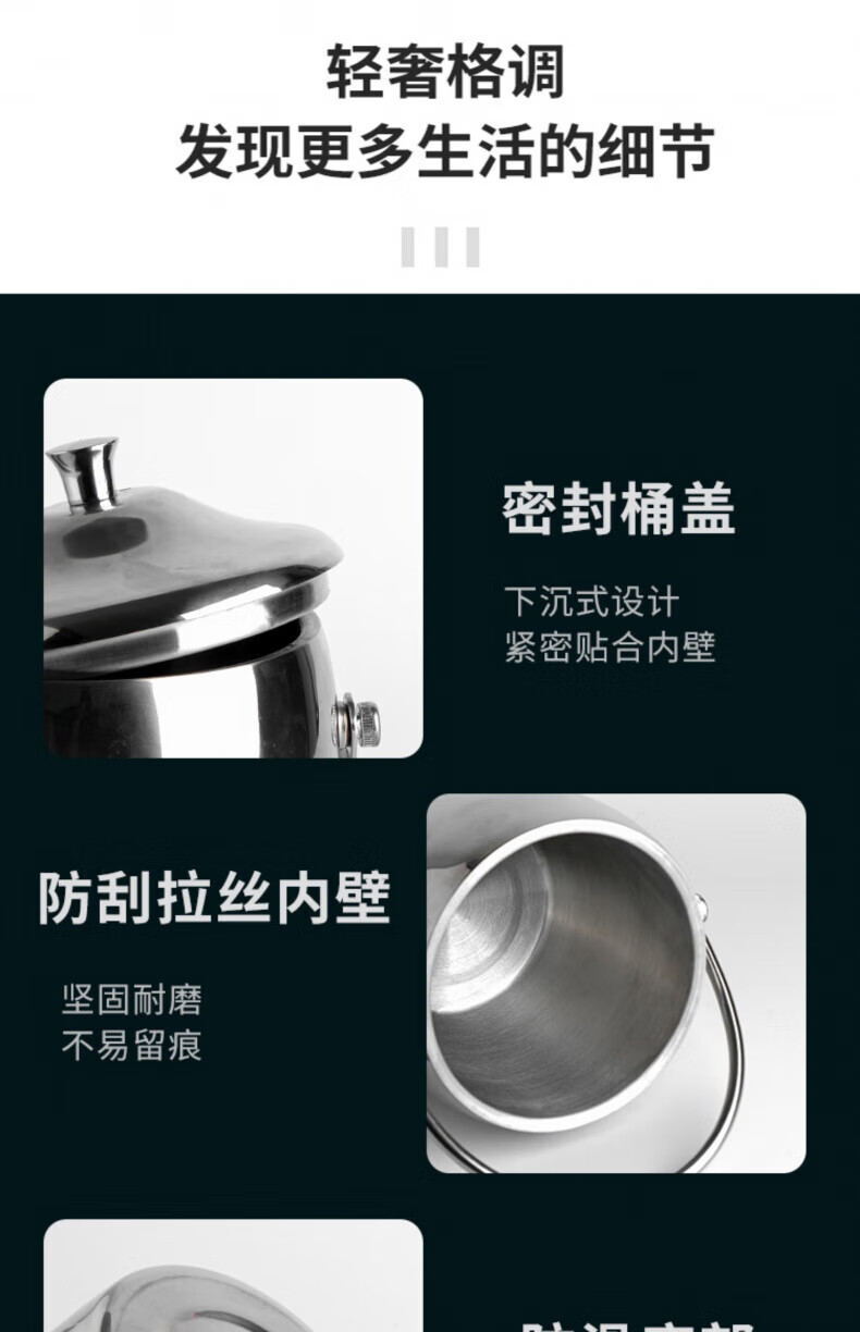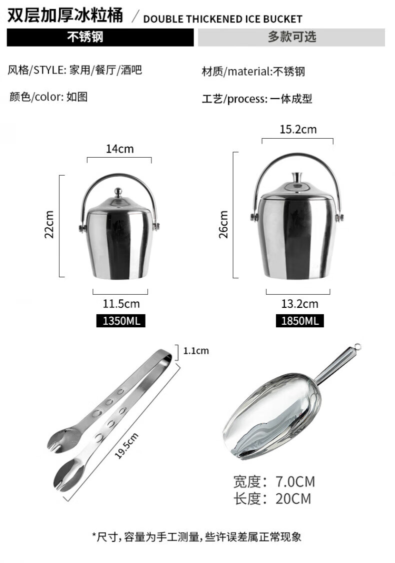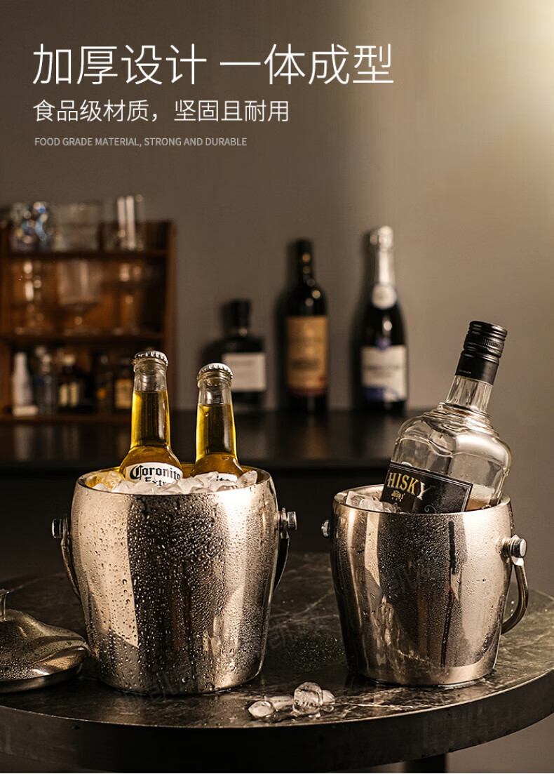 Shijin quality ice bucket filled with ice cubes double-layer stainless steel ice bucket style ice storage bucket with lid storage bucket large ice storage bucket + ice clip silver