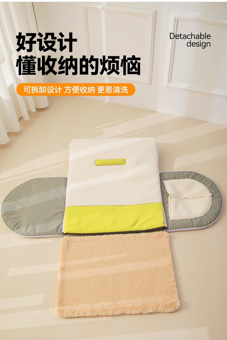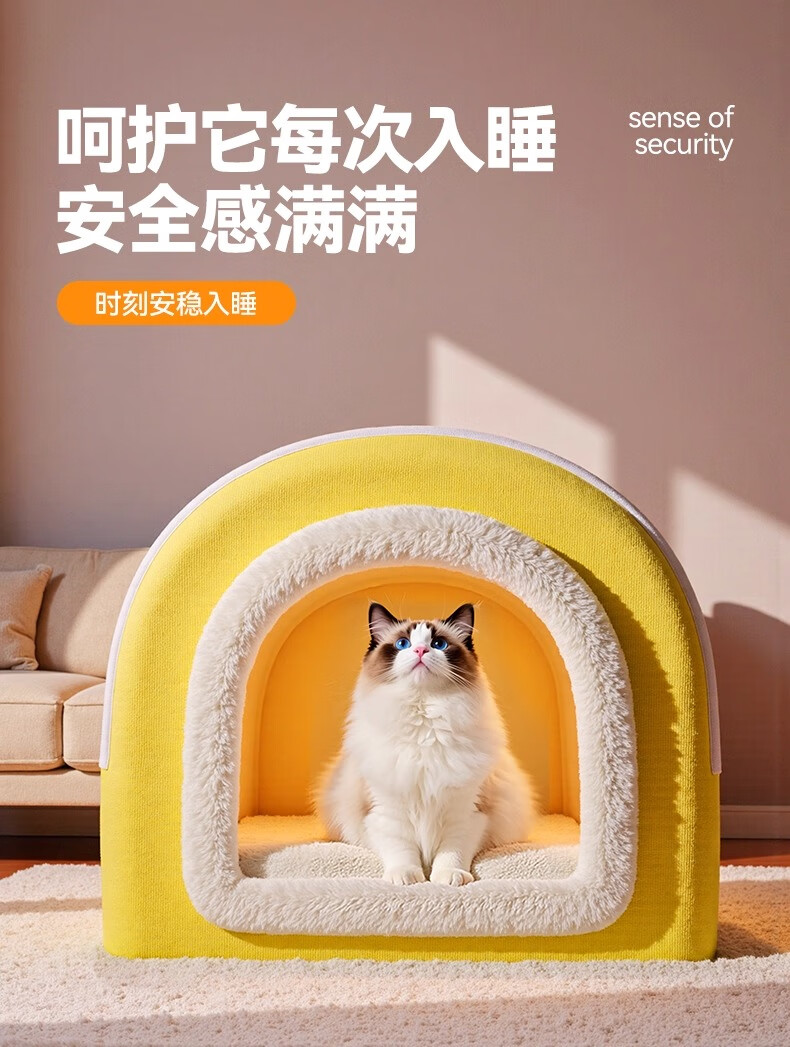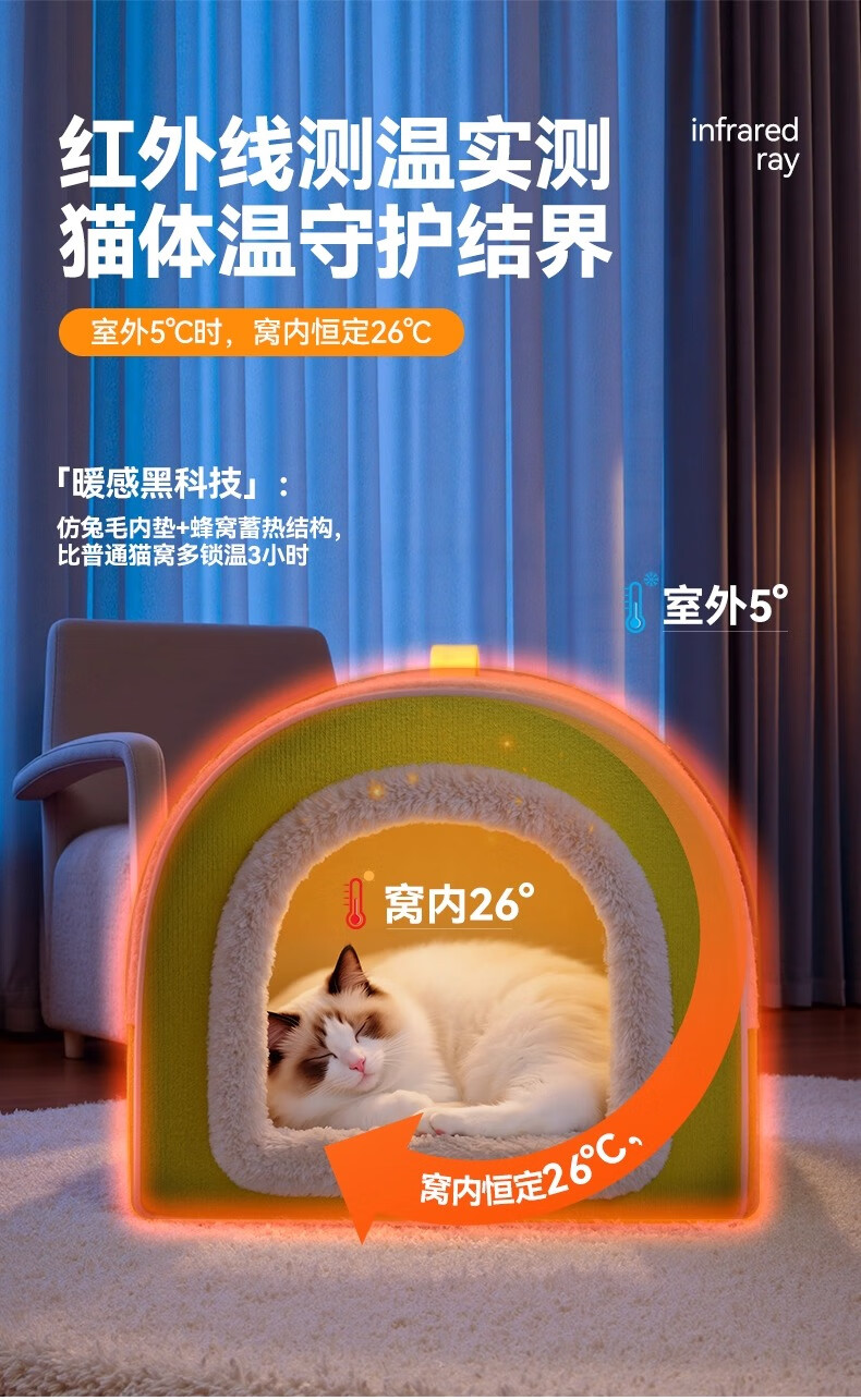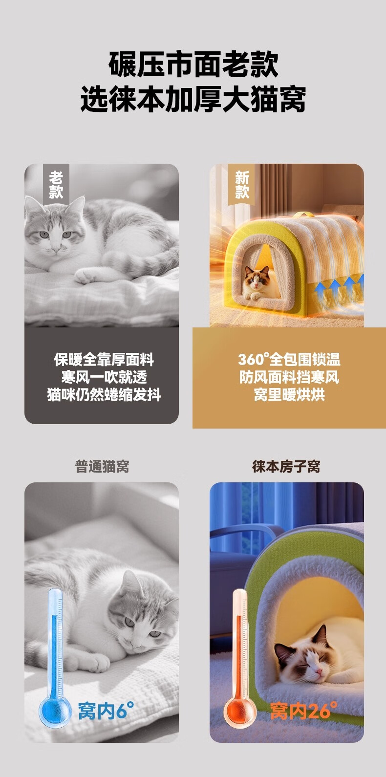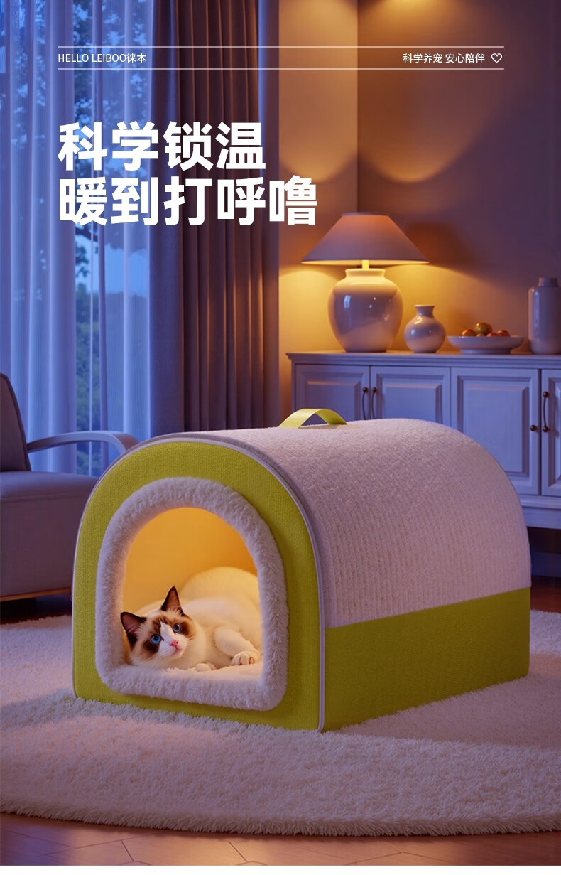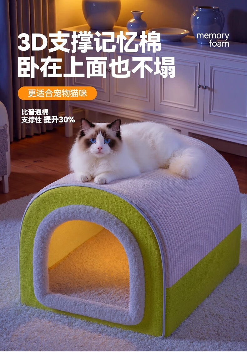 HELLOLEIBOO Laiben cat nest, universal for all seasons, closed security nest for cats, thickened cat house, cat sleeping nest for winter, Morandi green belt door curtain, thickened upgraded model, large space, no odor L-50*40*35cm (applicable within 15 pounds)