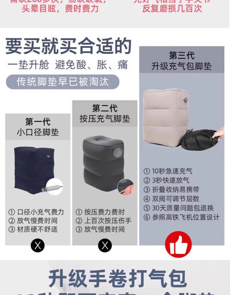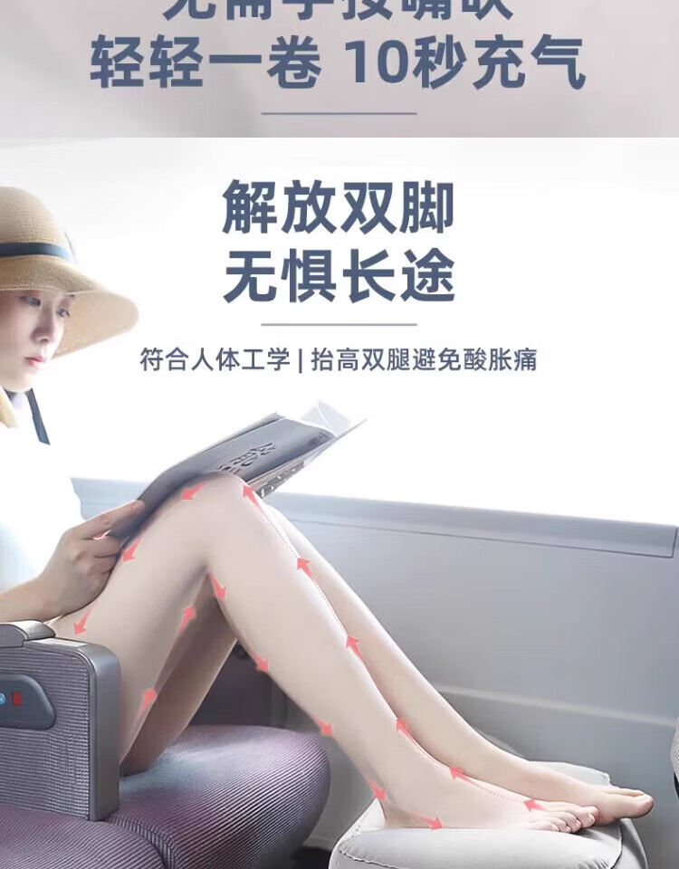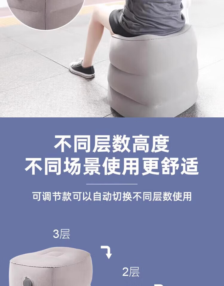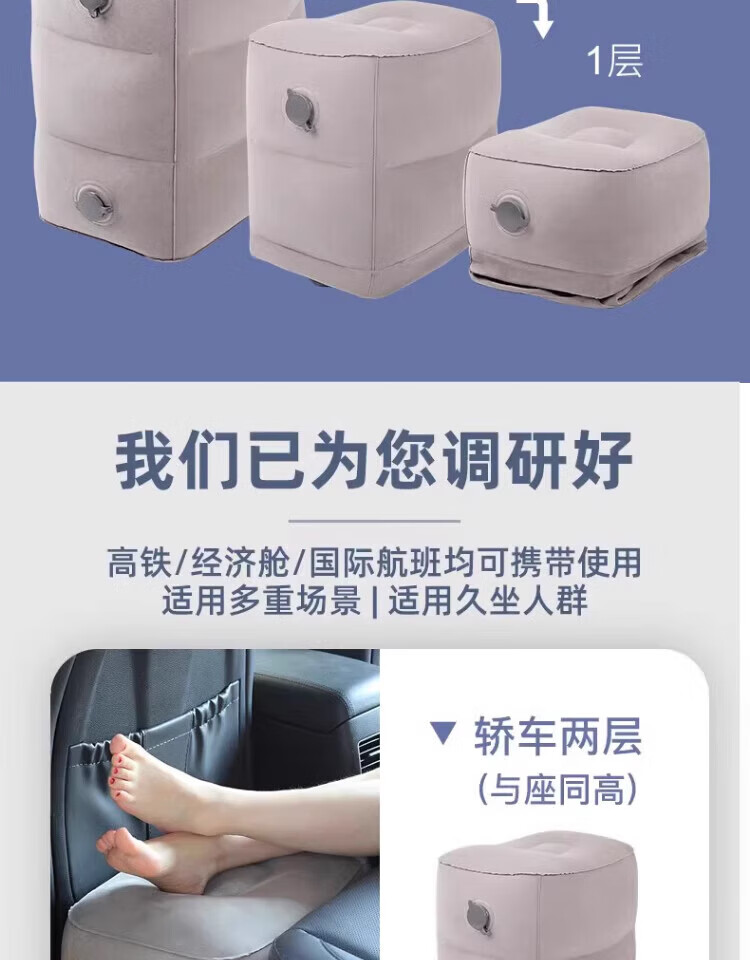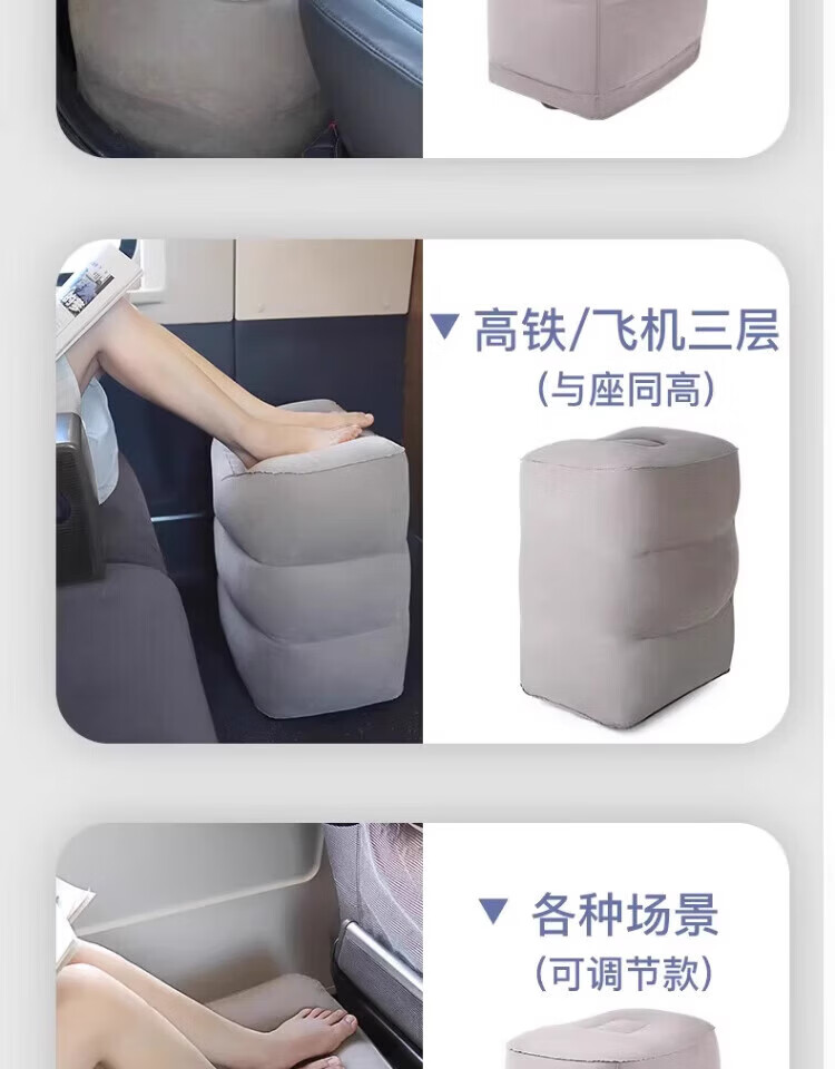 Haofanjie inflatable foot pads for aircraft economy class, car leg rests, co-pilot leg rests, car sleeping artifacts, car inflatable foot rests, three-layer gray inflatable foot pads + pump bag
