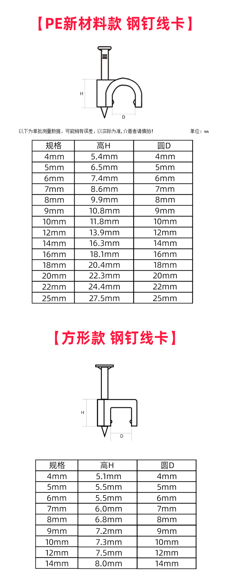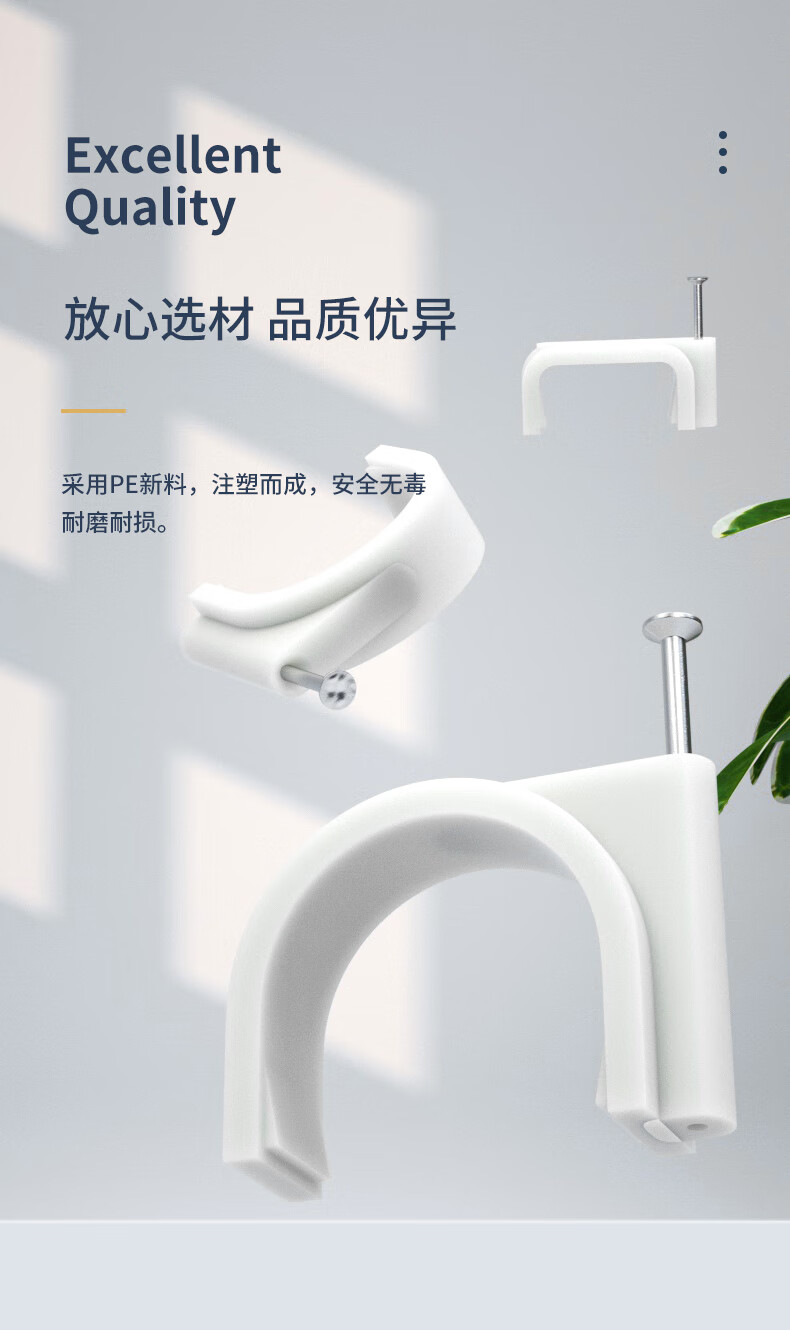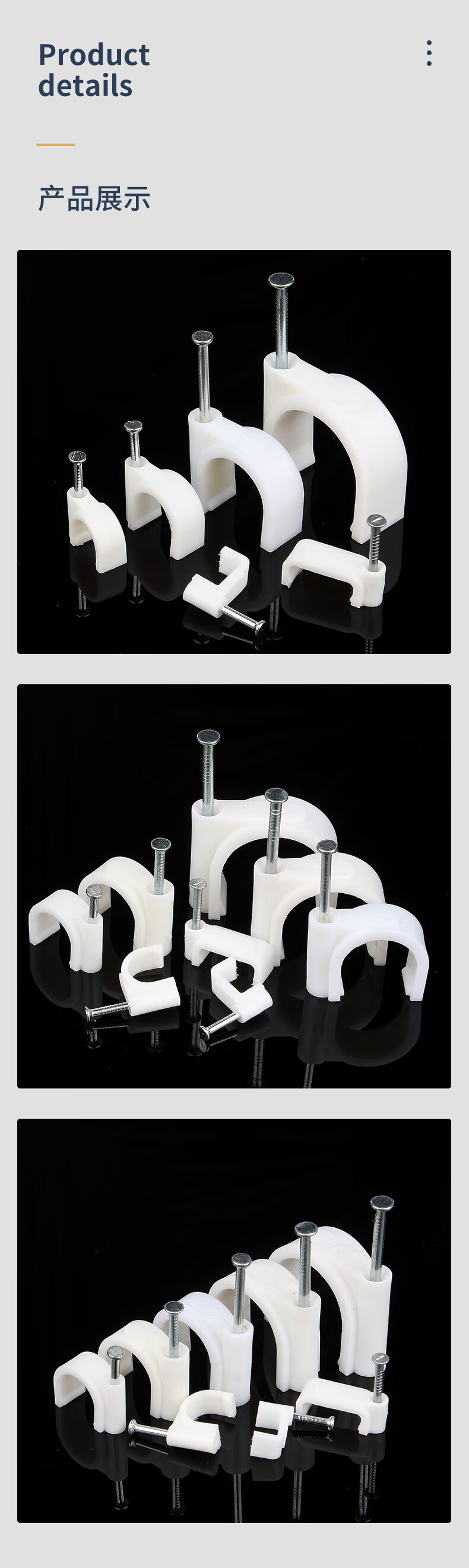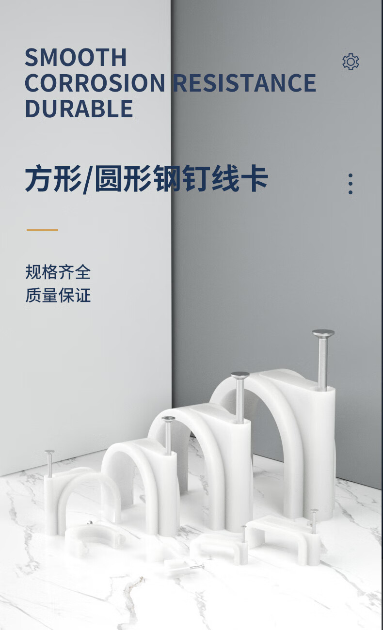 Guwan Baseline Card Steel Nail Round Wire Network Cable Fixing Nail Wall Wire Pipe Plastic Staple Nail Wire Nail Buckle Fixer Round Wire Card 16mm (100 pcs/pack)