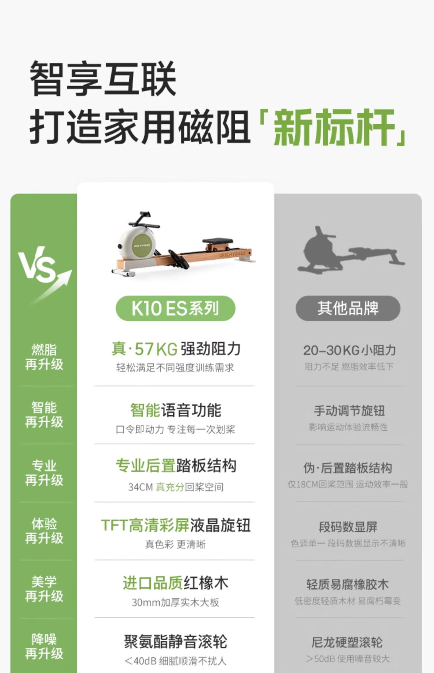 MOKFITNESSMOK (Mok)-K10 magnetic resistance silent rowing machine home smart folding rowing machine fitness equipment K10ES standard version (Lingjing black)