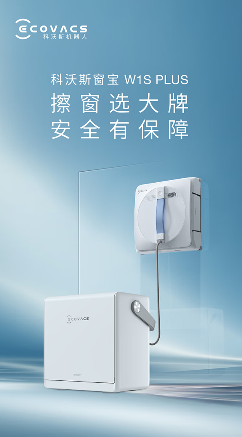 ECOVACS W1s Plus newly upgraded outdoor anti-fall high-rise artifact base station version window cleaning robot white W1S plus
