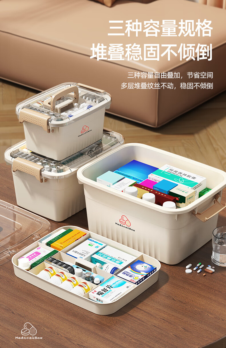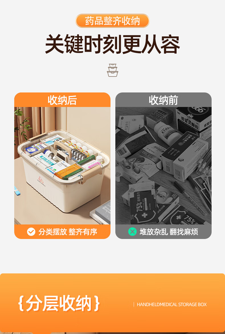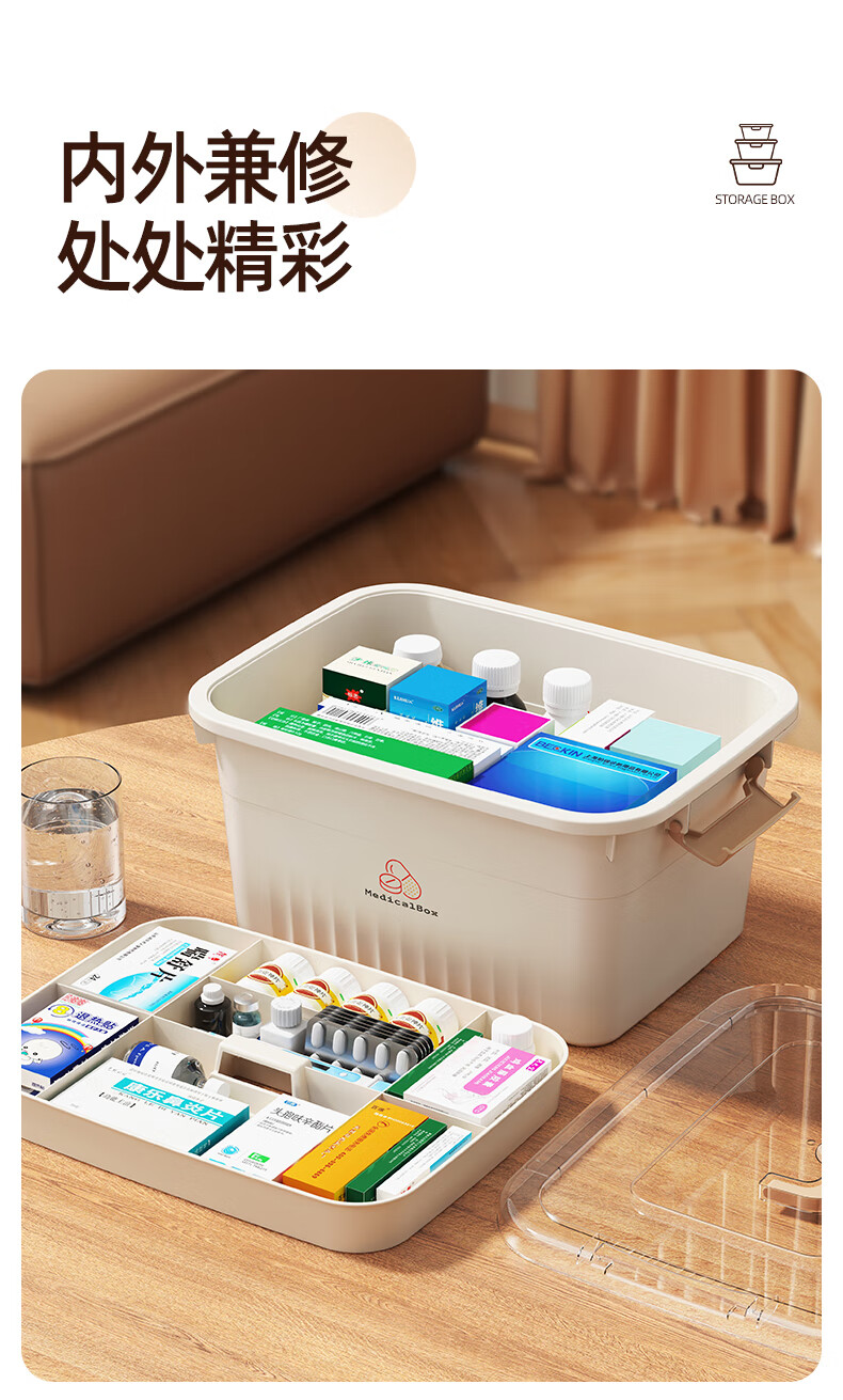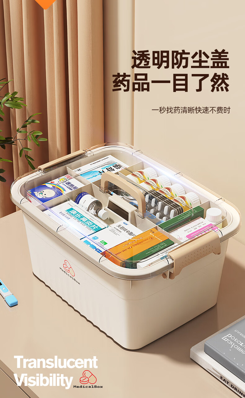 Purchased over 10,000 times, household medicine storage box, medicine box, family large size medicine first aid multi-layer classification, portable storage box - large size 30*22*16cm