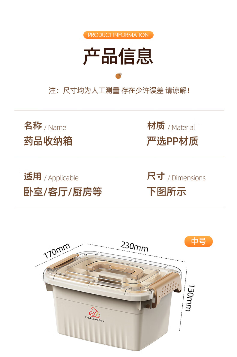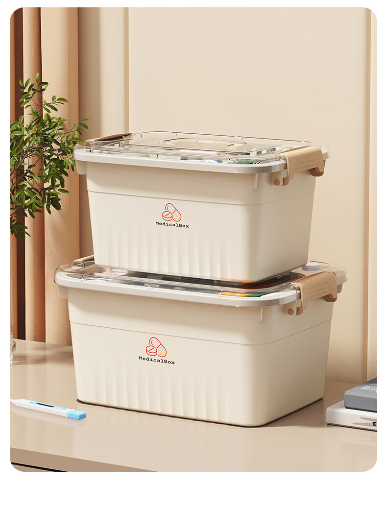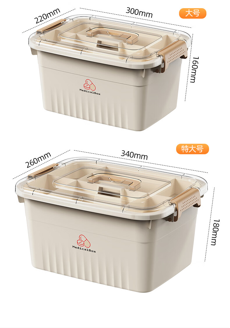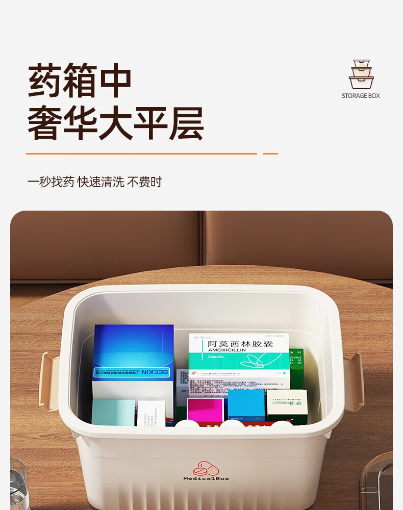 Purchased over 10,000 times, household medicine storage box, medicine box, family large size medicine first aid multi-layer classification, portable storage box - large size 30*22*16cm