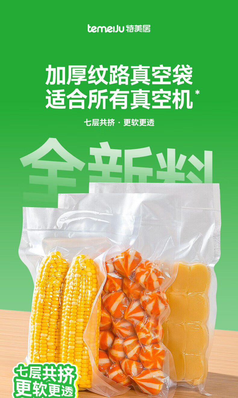 Temeiju (temeiju) vacuum food bag vacuum machine sealing bag vacuum thickened sealing bag sealing machine vacuum fresh-keeping bag thickened 25*30cm*50 pieces