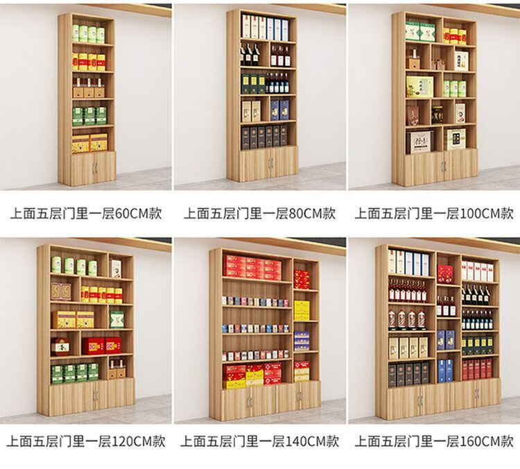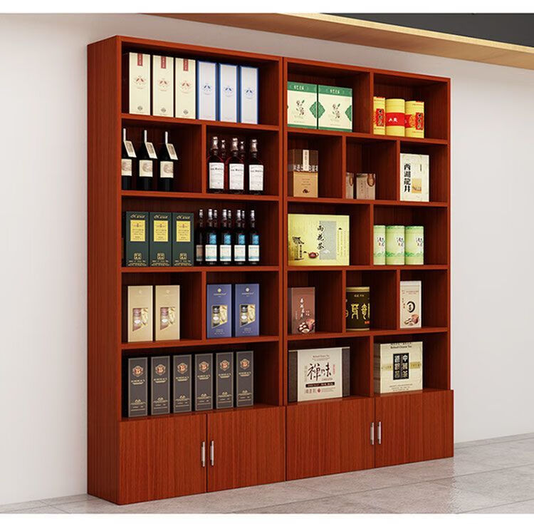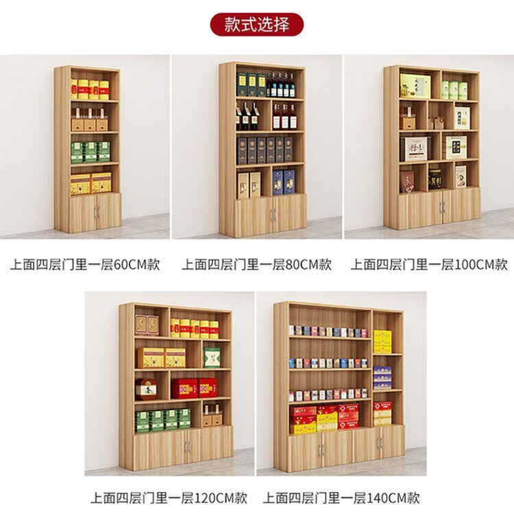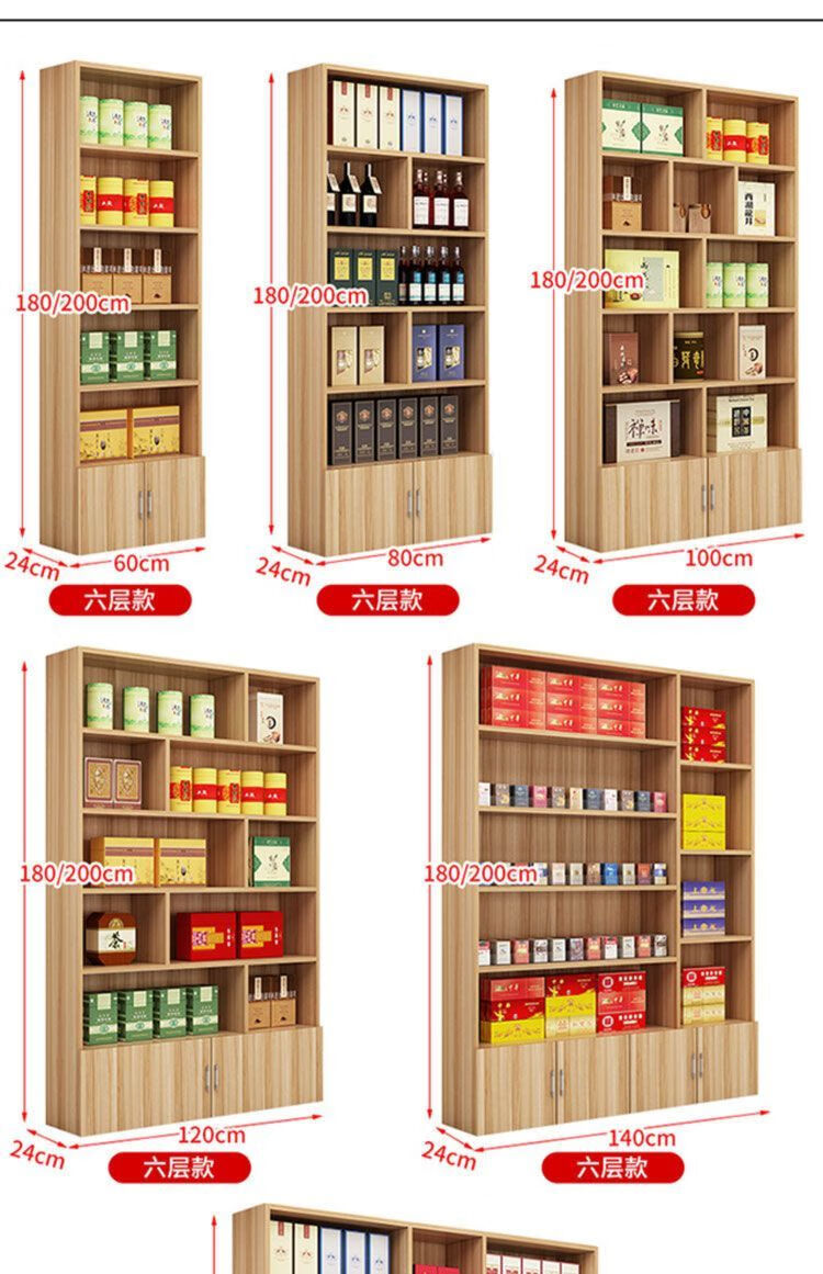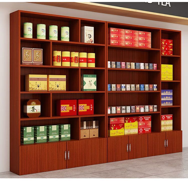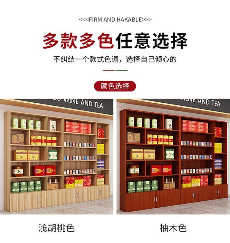Haishi Shengbao tea display cabinet multi-functional product display cabinet tobacco and wine cabinet shelf container counter display cabinet display rack wine cabinet 1.6 meters high * 60 wide light walnut