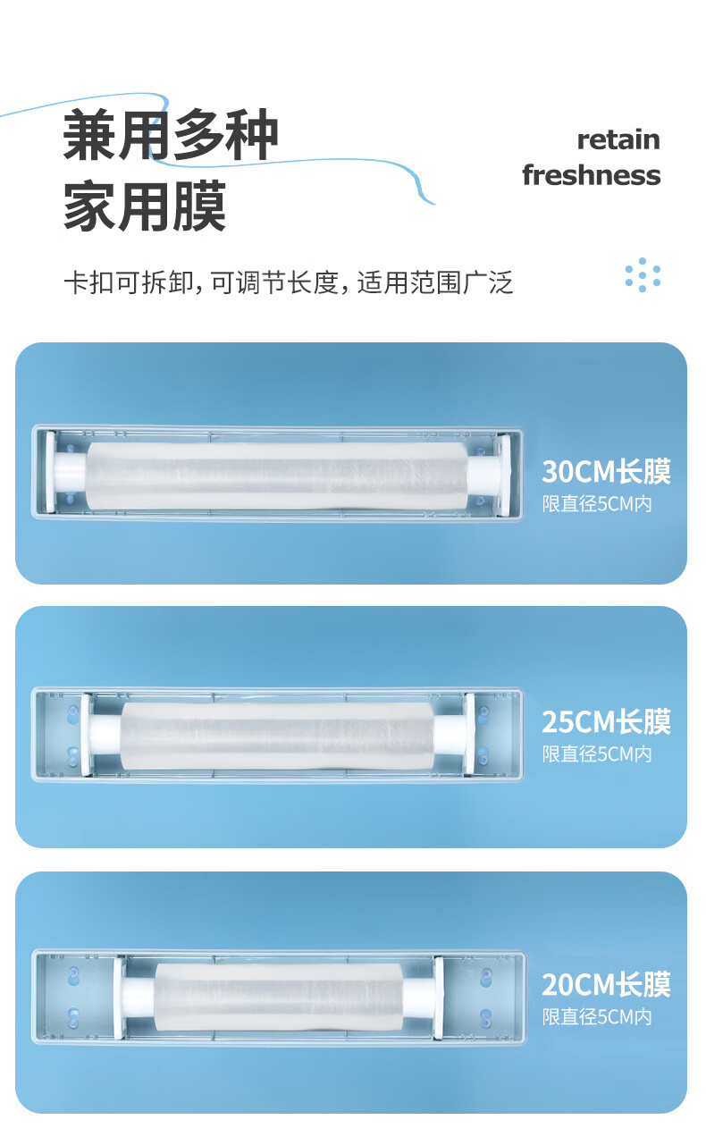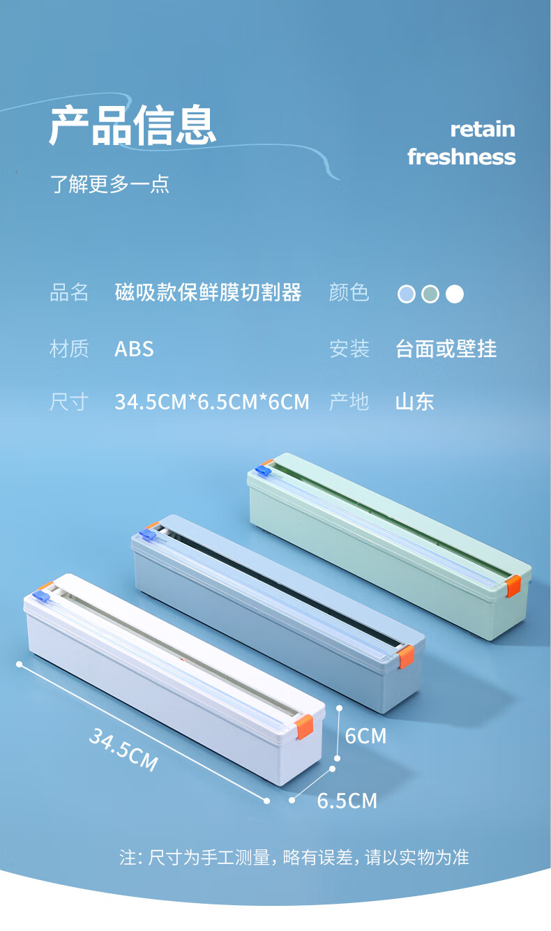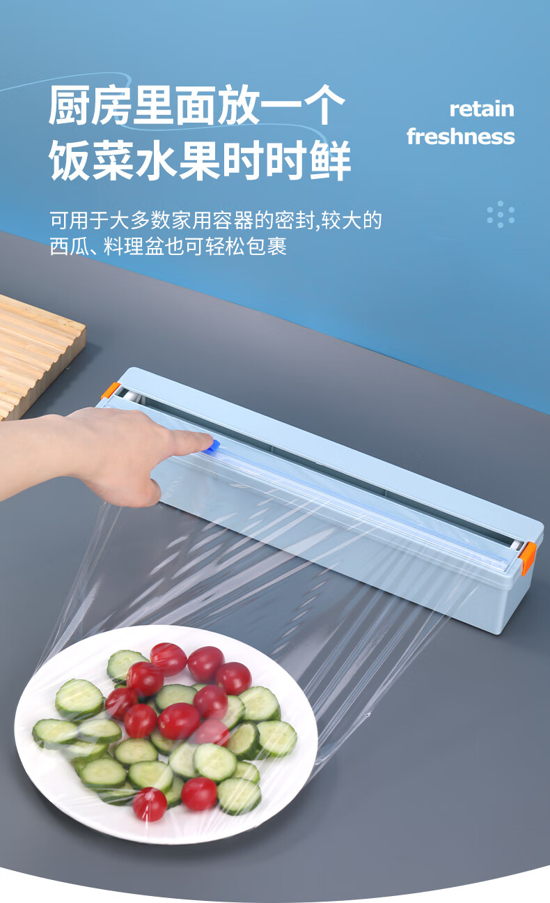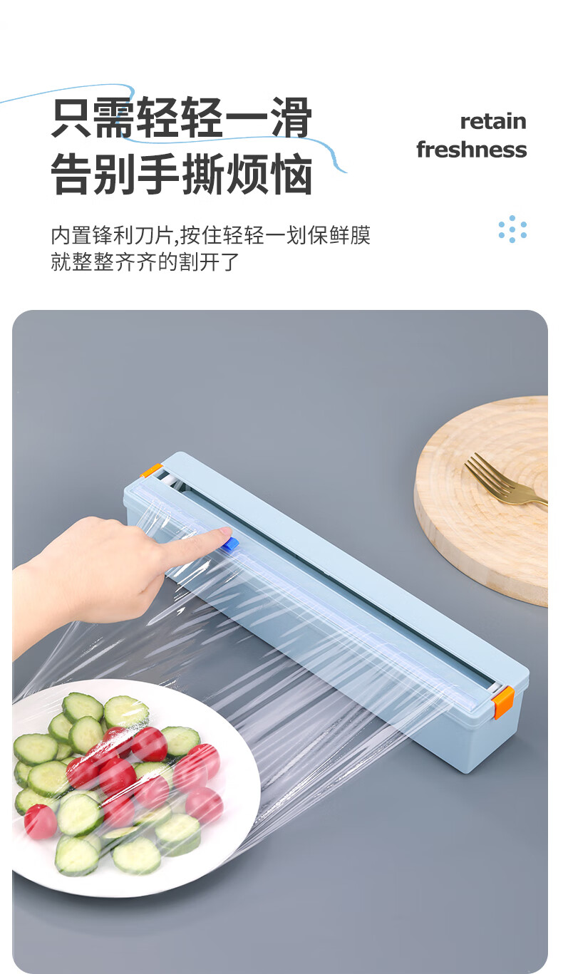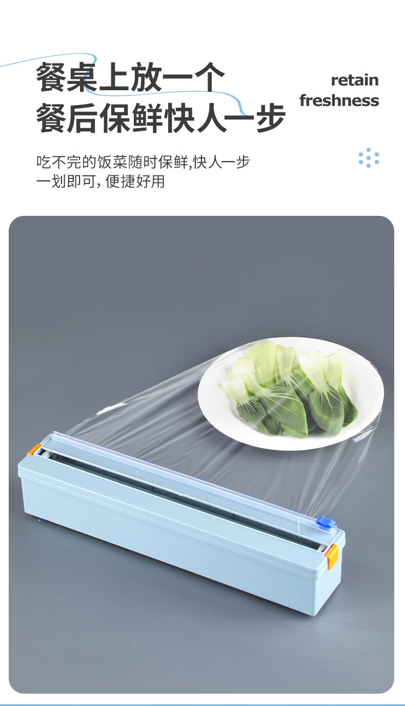 RSRDDY food-grade cling film cutter ABS drop-resistant magnetic thickening hidden sliding knife cutting box household economical installation 30cm wide X 120 meters film 3 rolls