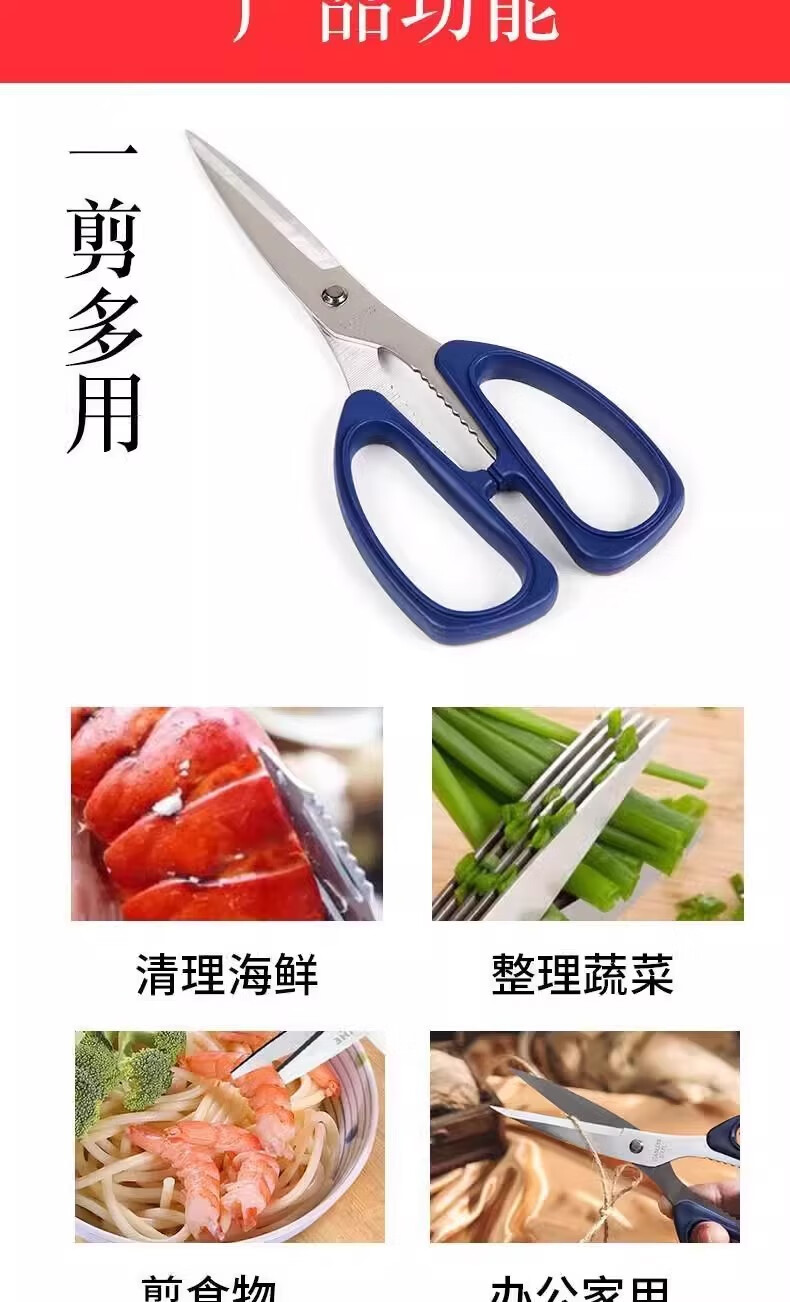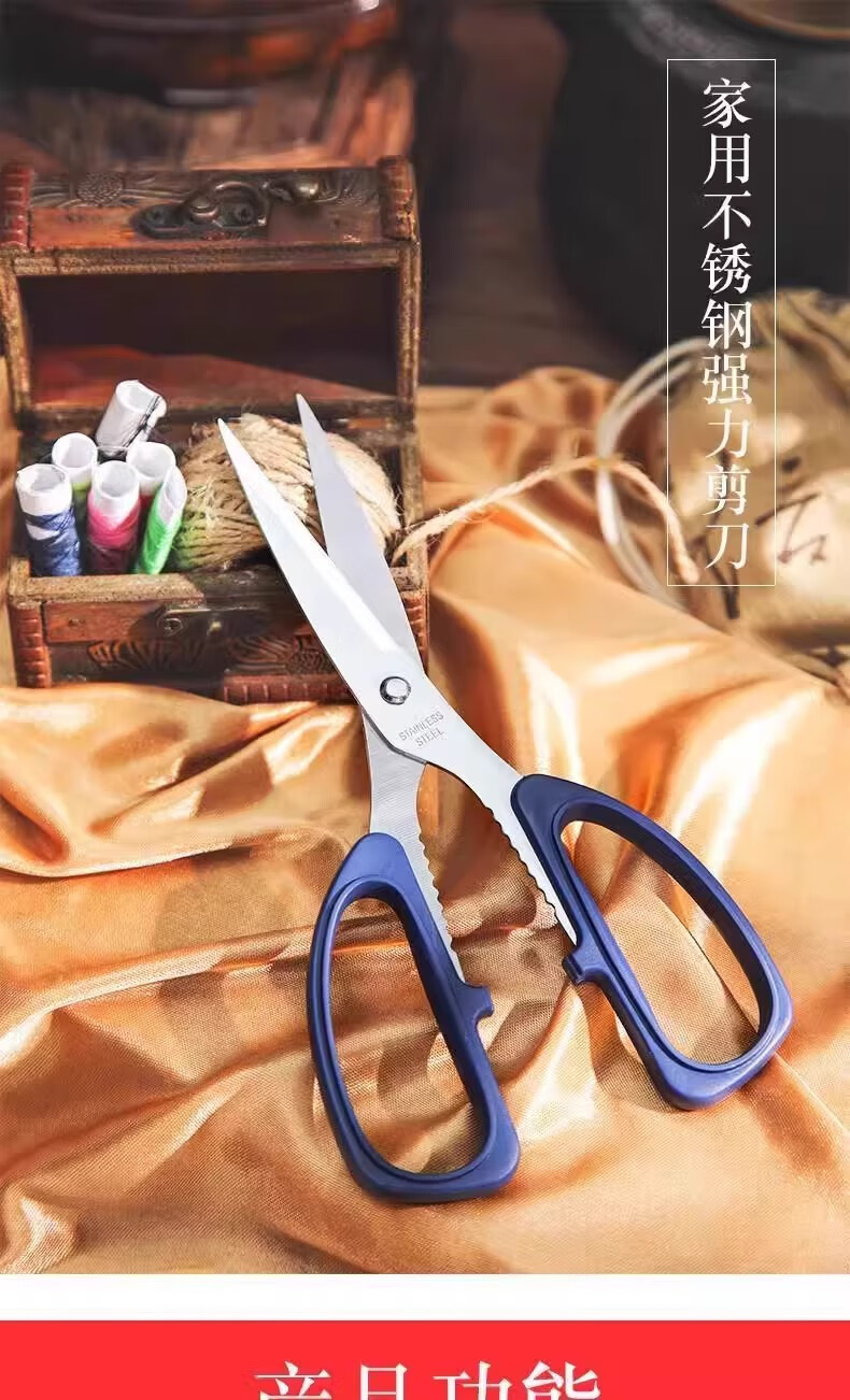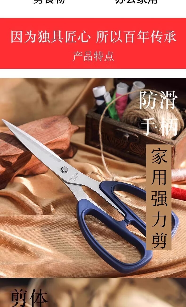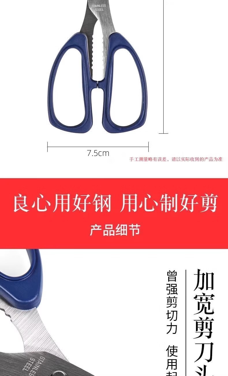 Stainless steel scissors for household powerful kitchen sewing paper-cutting scissors sharp high hardness large fish scissors Stainless steel powerful large scissors 1 pair