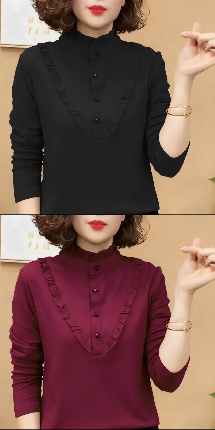 2025 German velvet fabric autumn and winter half turtleneck middle-aged mother high-end bottoming shirt women's versatile small shirt German velvet top Angora red XL recommended 115-130 pounds