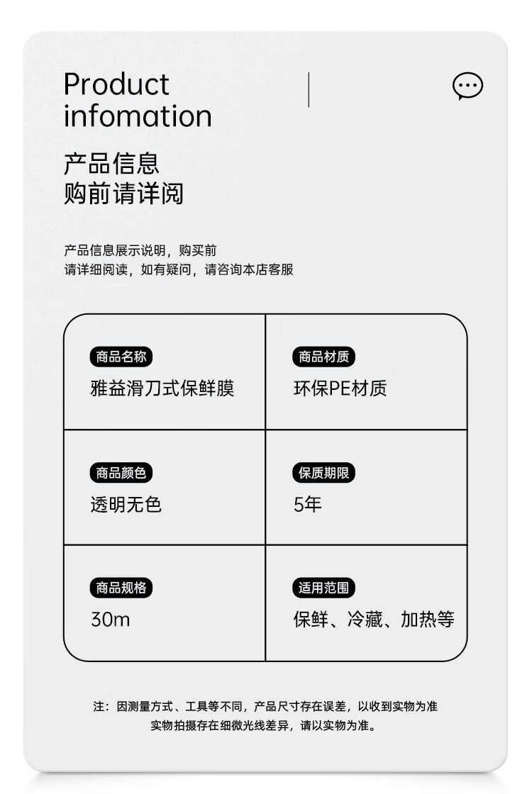 RSRDDY cling film cutter household food grade commercial large roll economical kitchen PE high temperature resistant sliding knife box cover 3 boxes of sliding knife cling film available for 3 years 30-3000cm