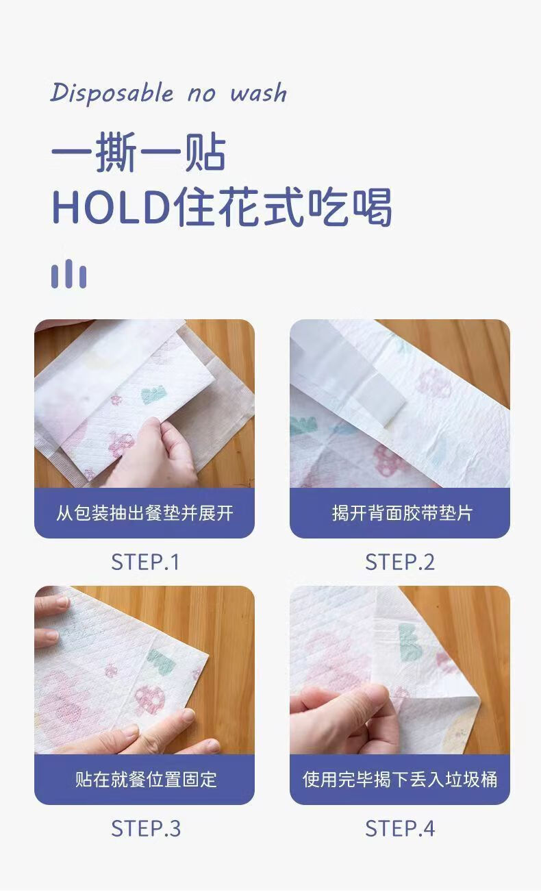 RSRDDY disposable placemats, baby table mats, waterproof, children, students, toddlers table mats, tablecloths, water-absorbent eating rectangular, independent small packaging, Rabbit placemats, 20 pieces