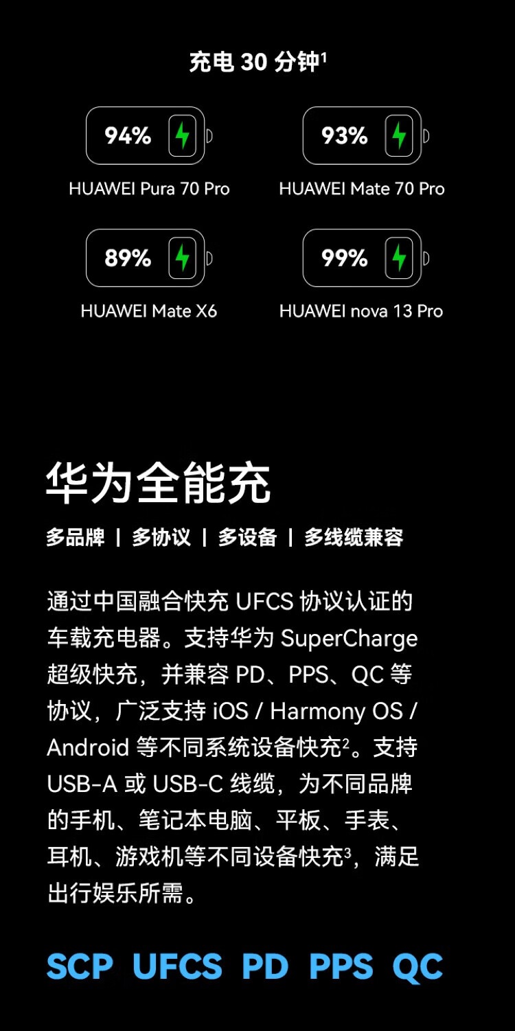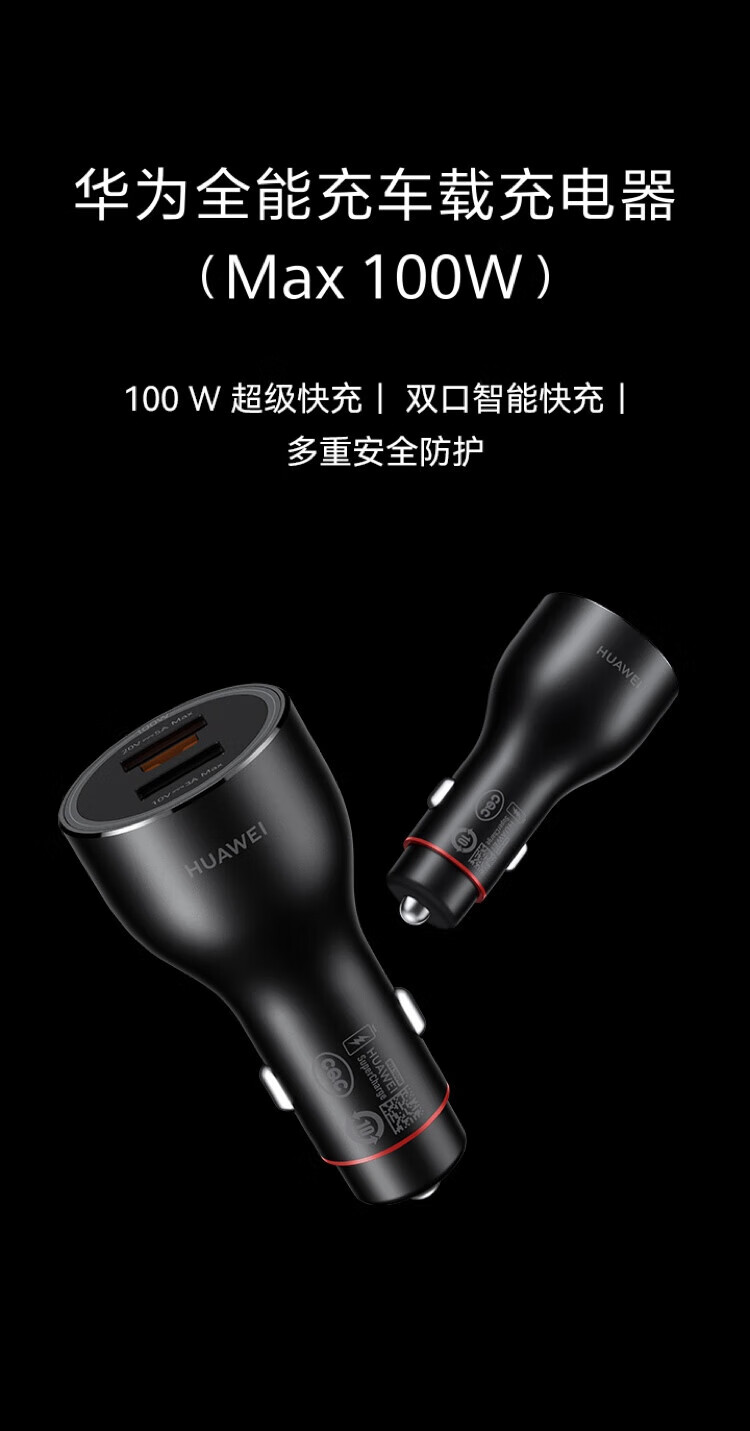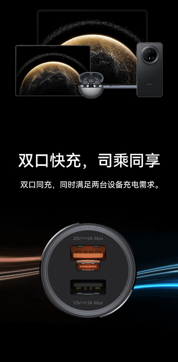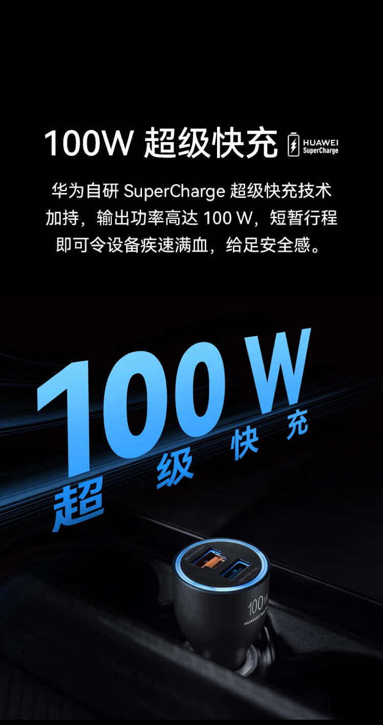 Huawei (HUAWEI) original 100W car charger super fast charging mate70 Pura80 pro mobile phone tablet universal car charger Huawei 100W fast charging built-in Type-C 6A cable