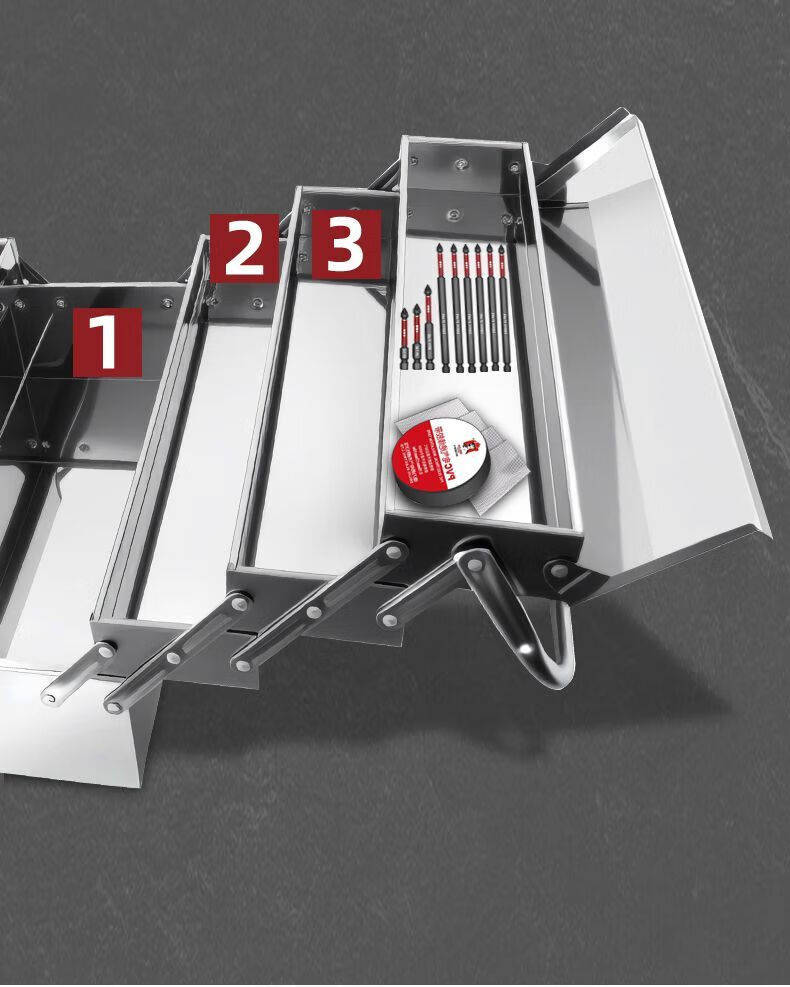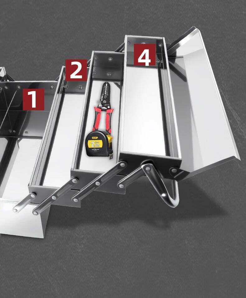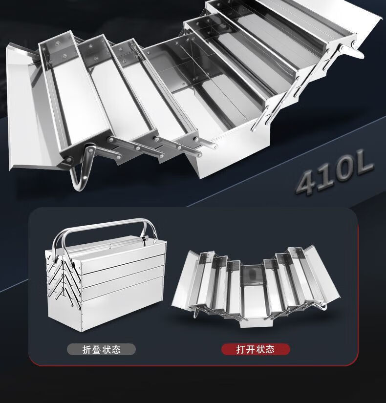 NAOISKEY Naoski stainless steel tool box three-layer folding home car portable iron industrial hardware storage box multi-functional rusty double-layer stainless steel丨(medium size 420)