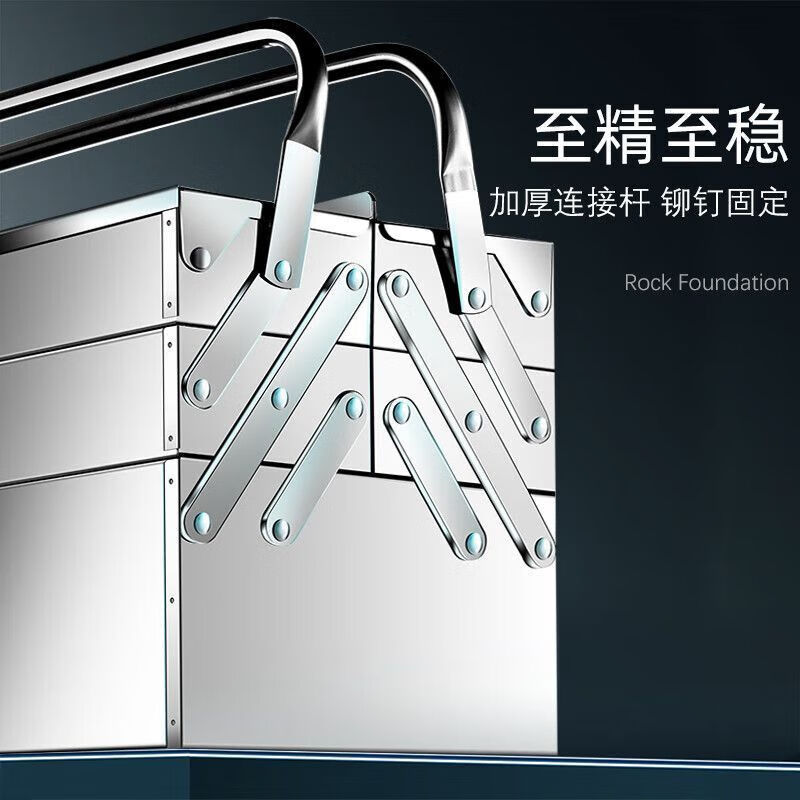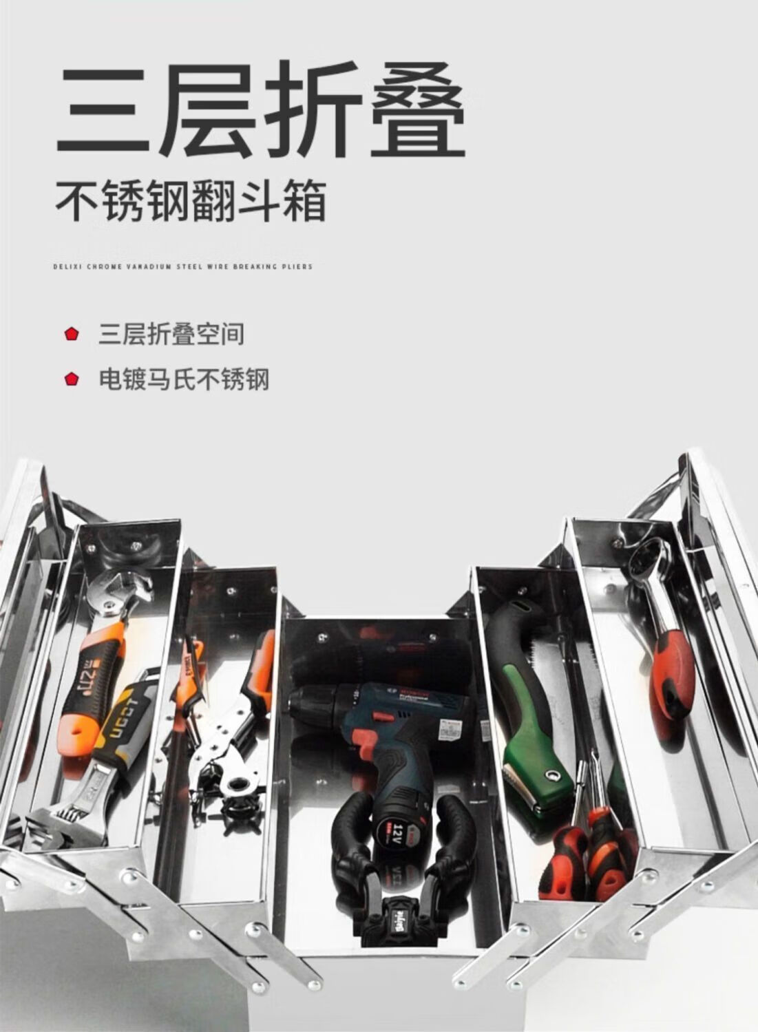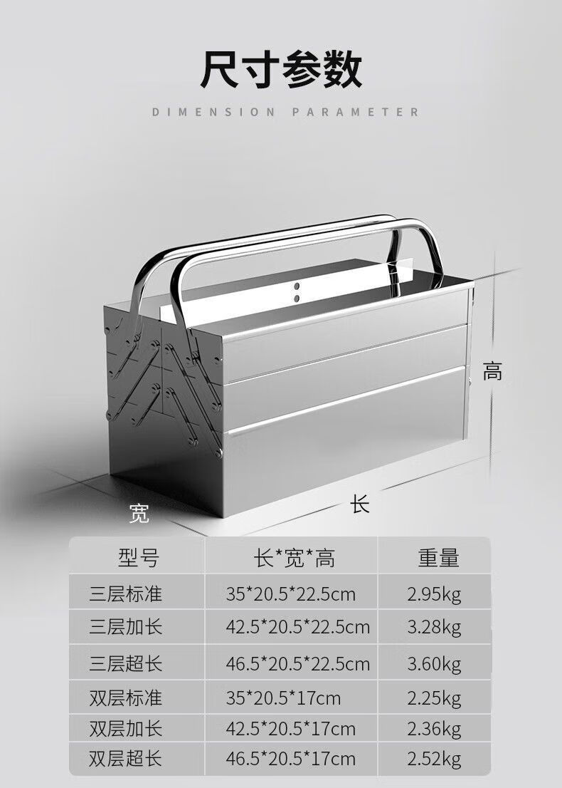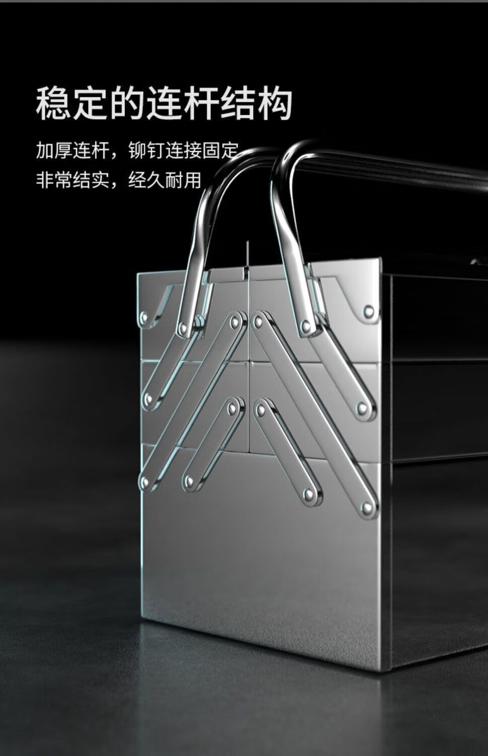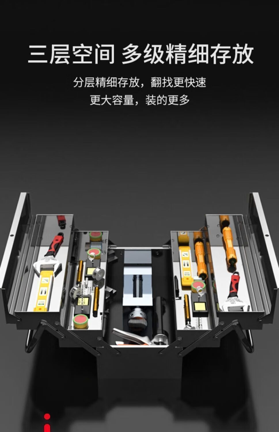 NAOISKEY Super-thick stainless steel tool box three-layer folding household car-mounted portable iron industrial storage box multi-functional RUIYONG German craftsmanship single-layer iron box small size