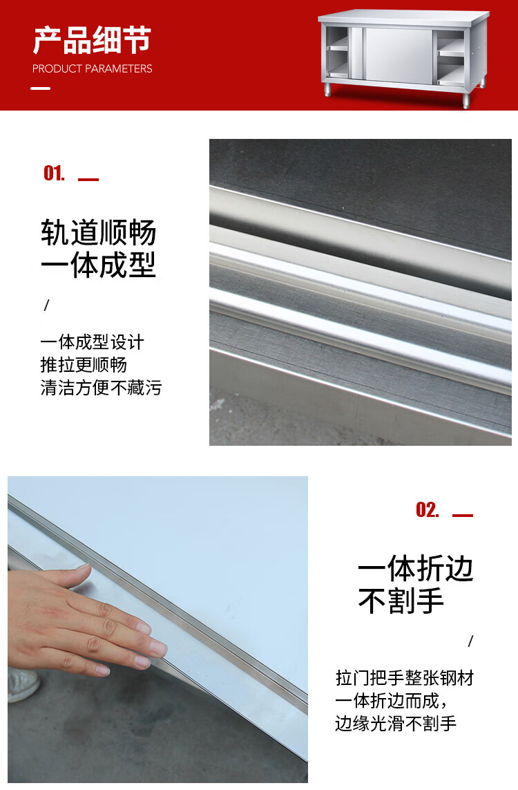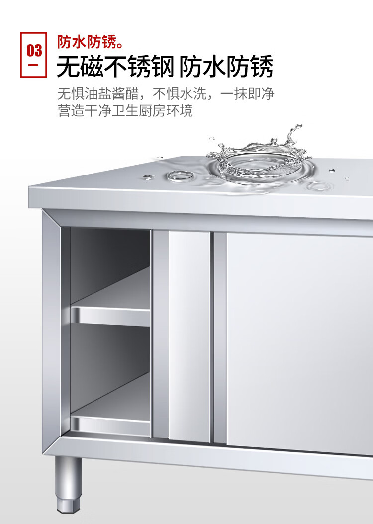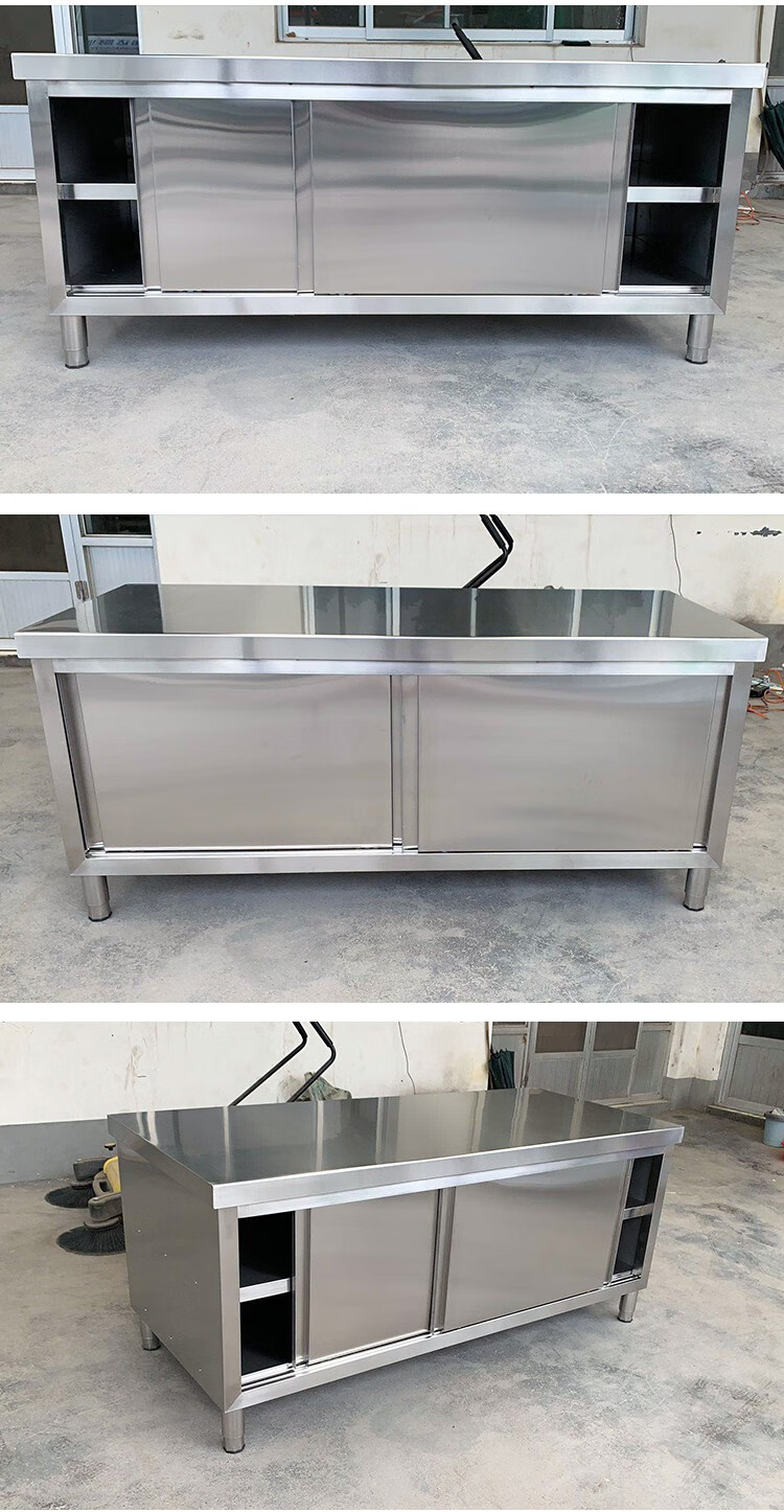 Huilv Extra Thick 1.4 Thick 304 Stainless Steel Workbench Kitchen Workbench Storage Cabinet Commercial Baking and Cutting Table with Sliding Door Length 150* Width 70* Height 80 (Single Pass 1.4 Thick)