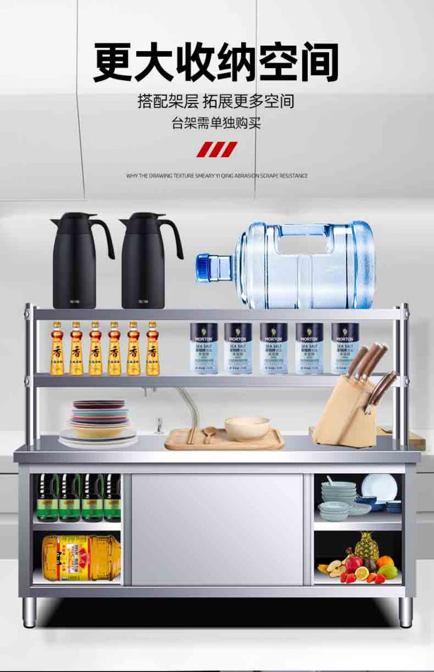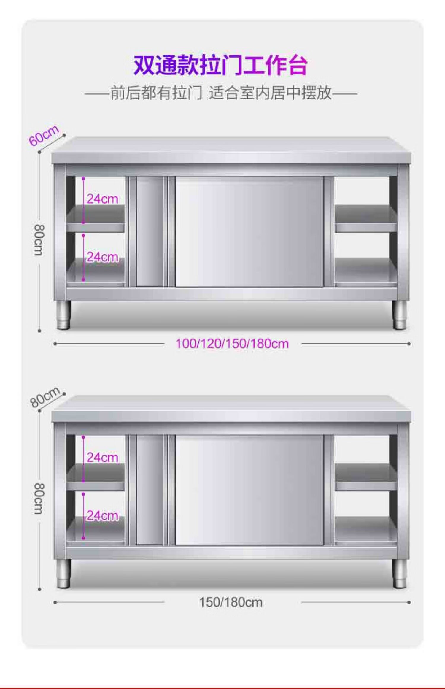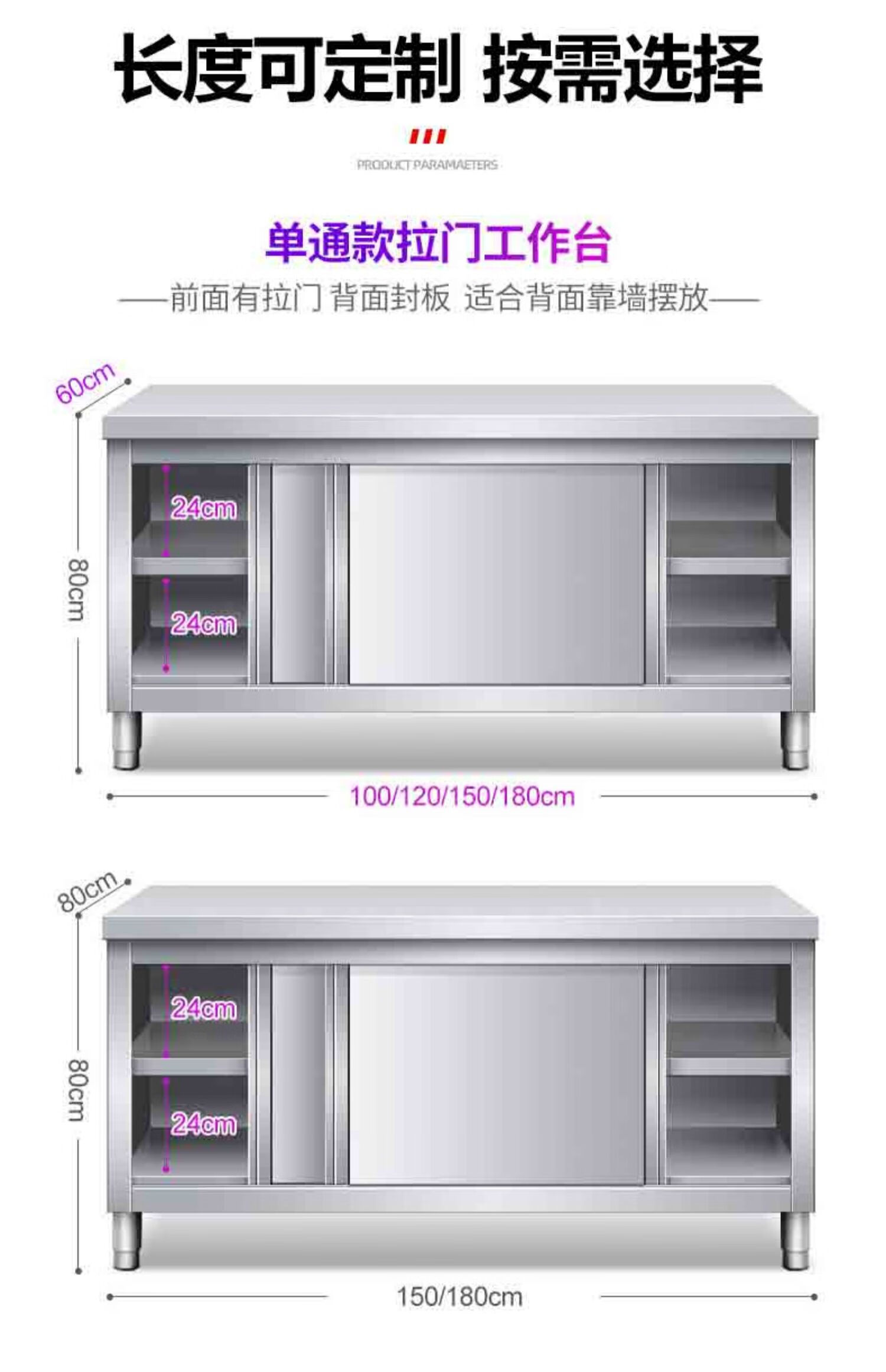 Huilv Extra Thick 1.4 Thick 304 Stainless Steel Workbench Kitchen Workbench Storage Cabinet Commercial Baking and Cutting Table with Sliding Door Length 150* Width 70* Height 80 (Single Pass 1.4 Thick)