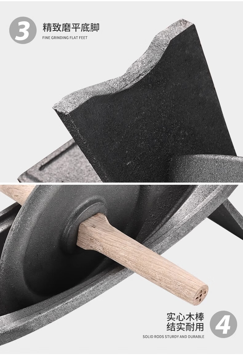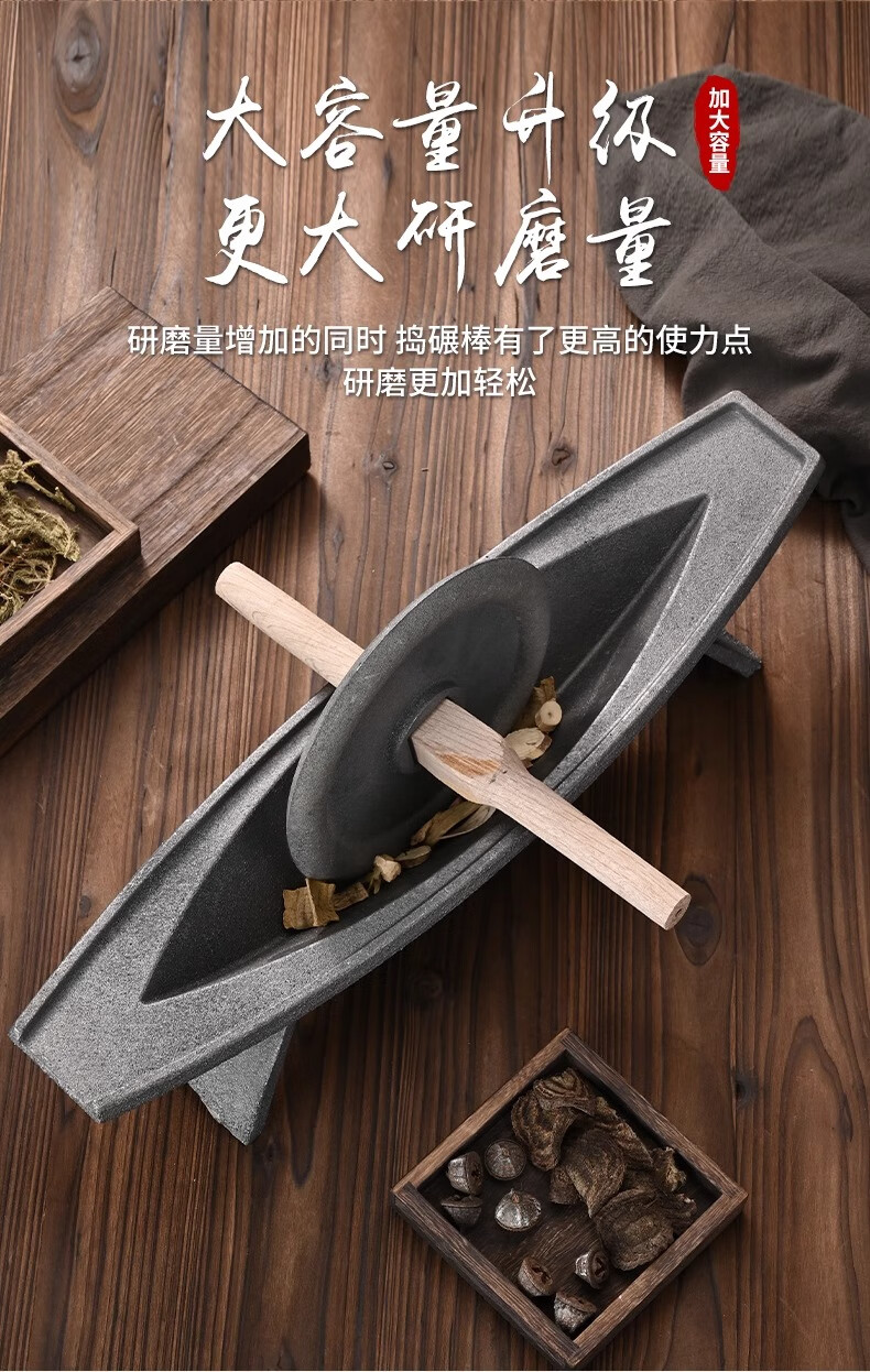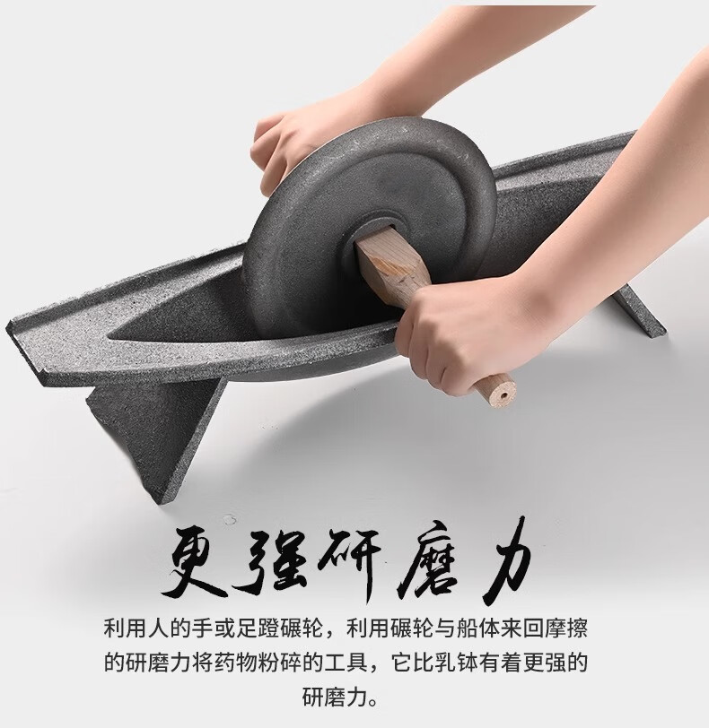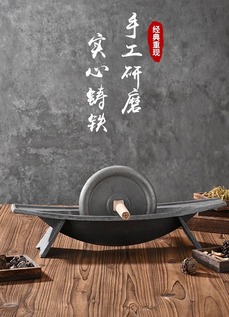 Traditional Chinese medicine grinder, medicine grinder, household medicine ship, old cast iron medicine twister crusher, pig iron hand grinder, old-fashioned 35cm economical mini wooden stick