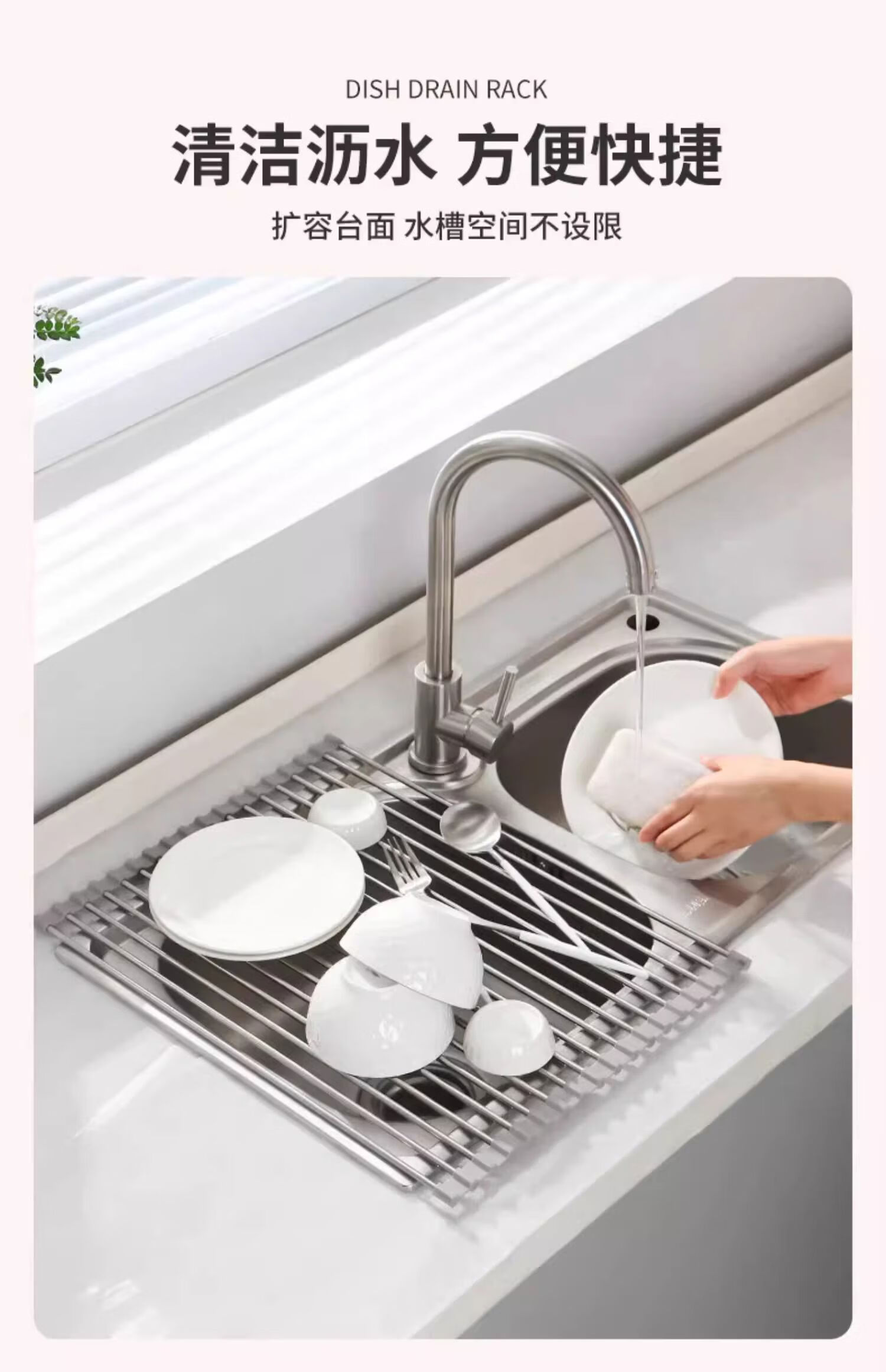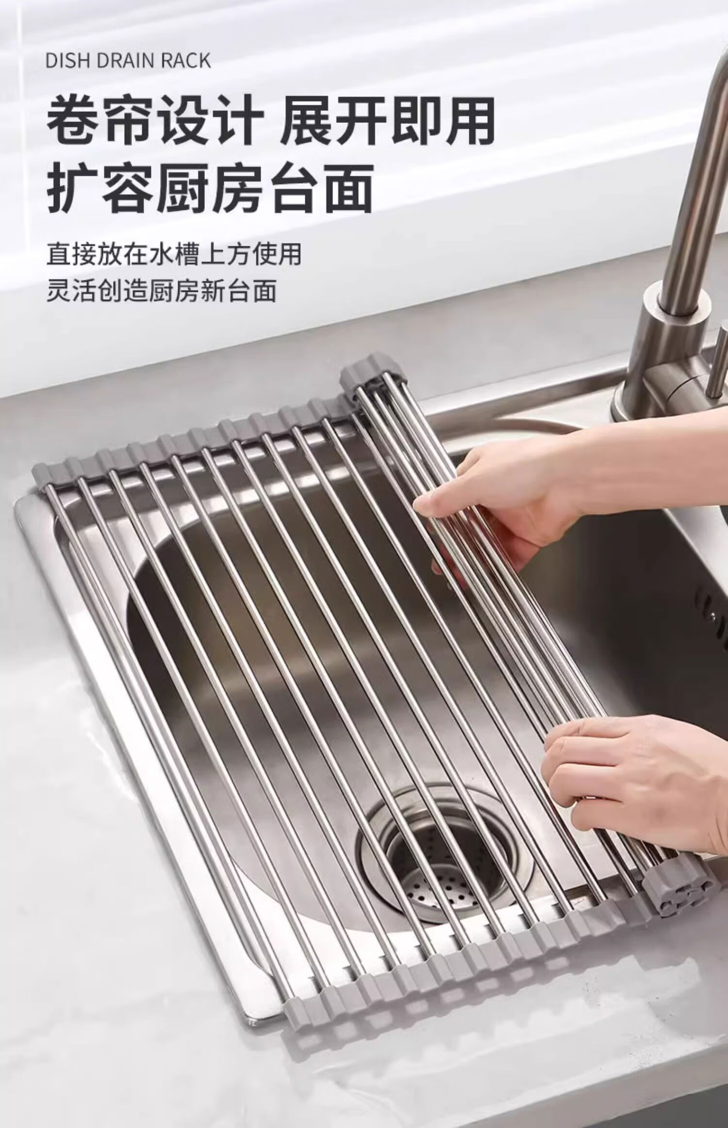 Cat kitchen sink drain rack pool dish rack foldable dish rack drain basket kitchen storage folding drain rack small gray 12 tubes