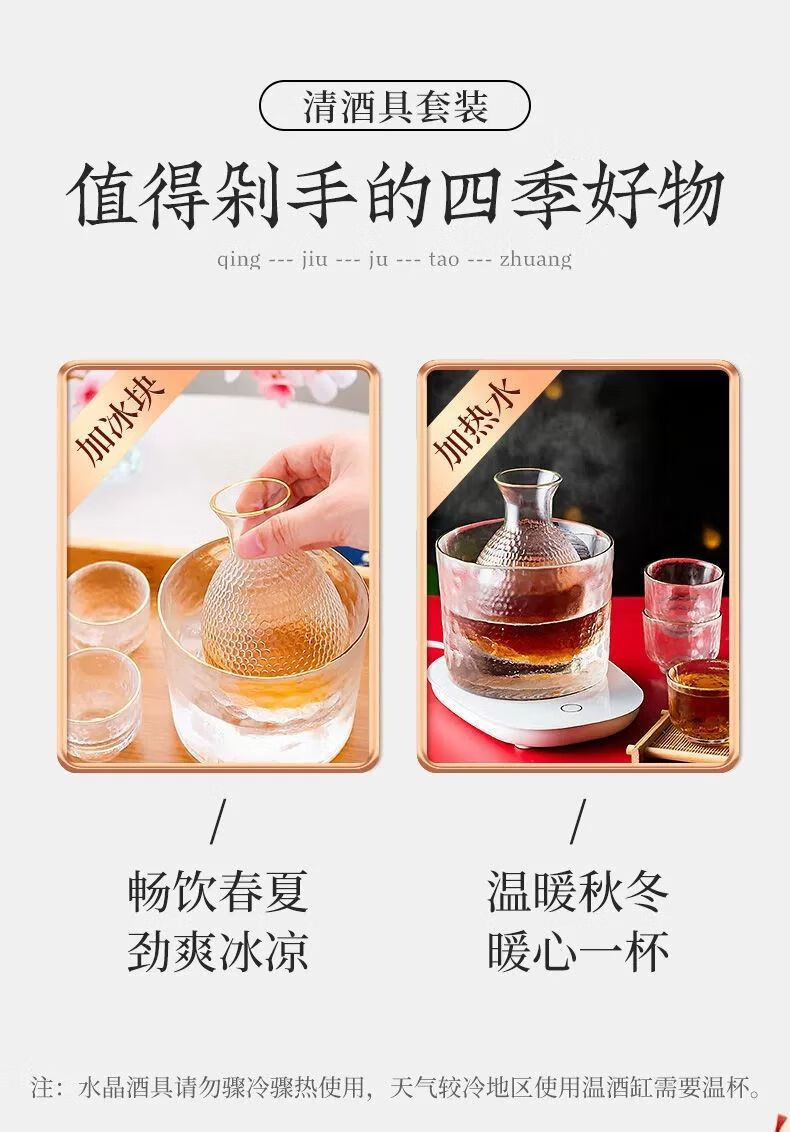 FX Sake Set Sake Glass Shot Glass Wine Pot Rice Wine Umemi Green Plum Wine Special Creative Wine Set Main Image Sake Pot + Four Cups + Wine Warmer with Cork